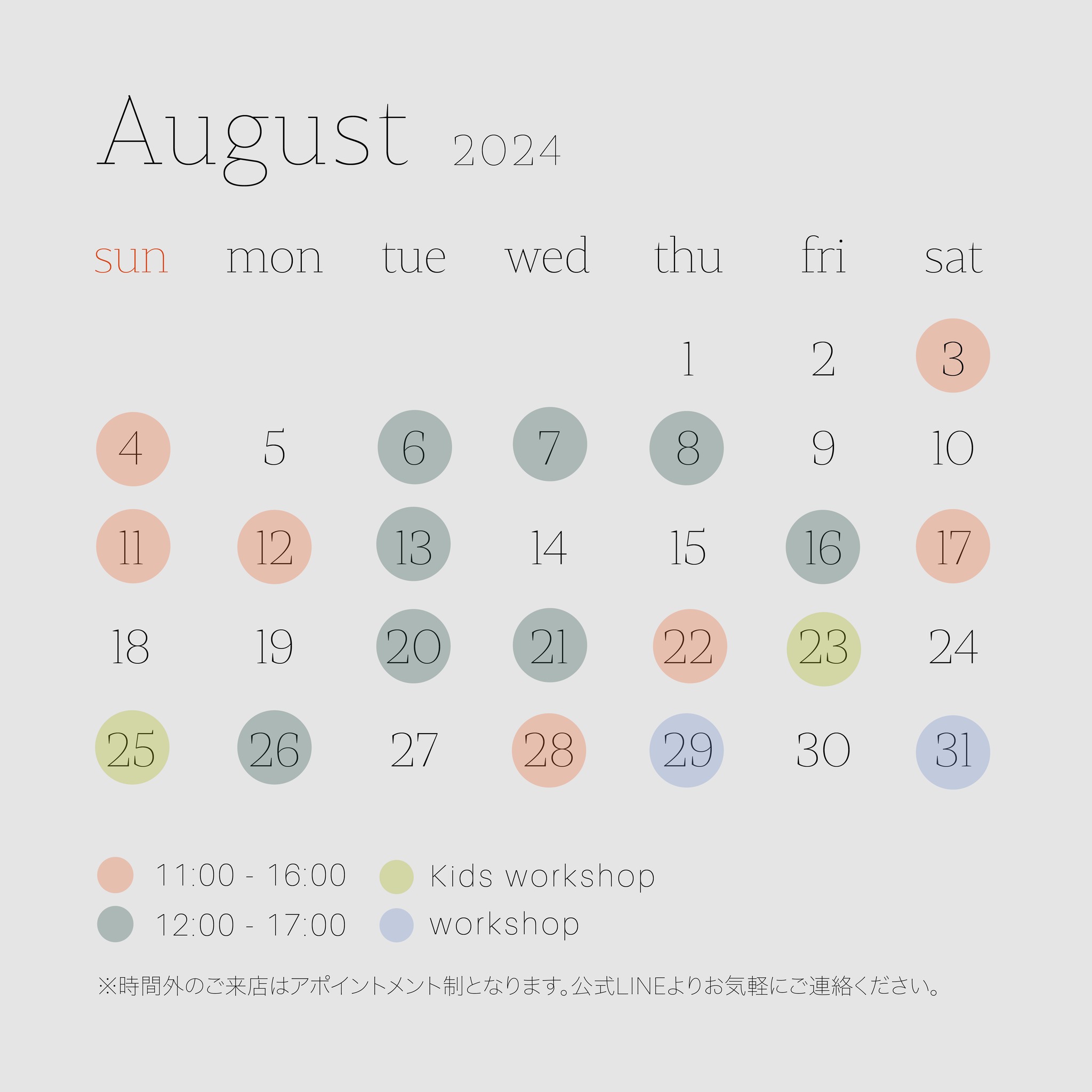 ワークショップや、時間外のご来店予約などお気軽にご連絡いただければとおもいます💬