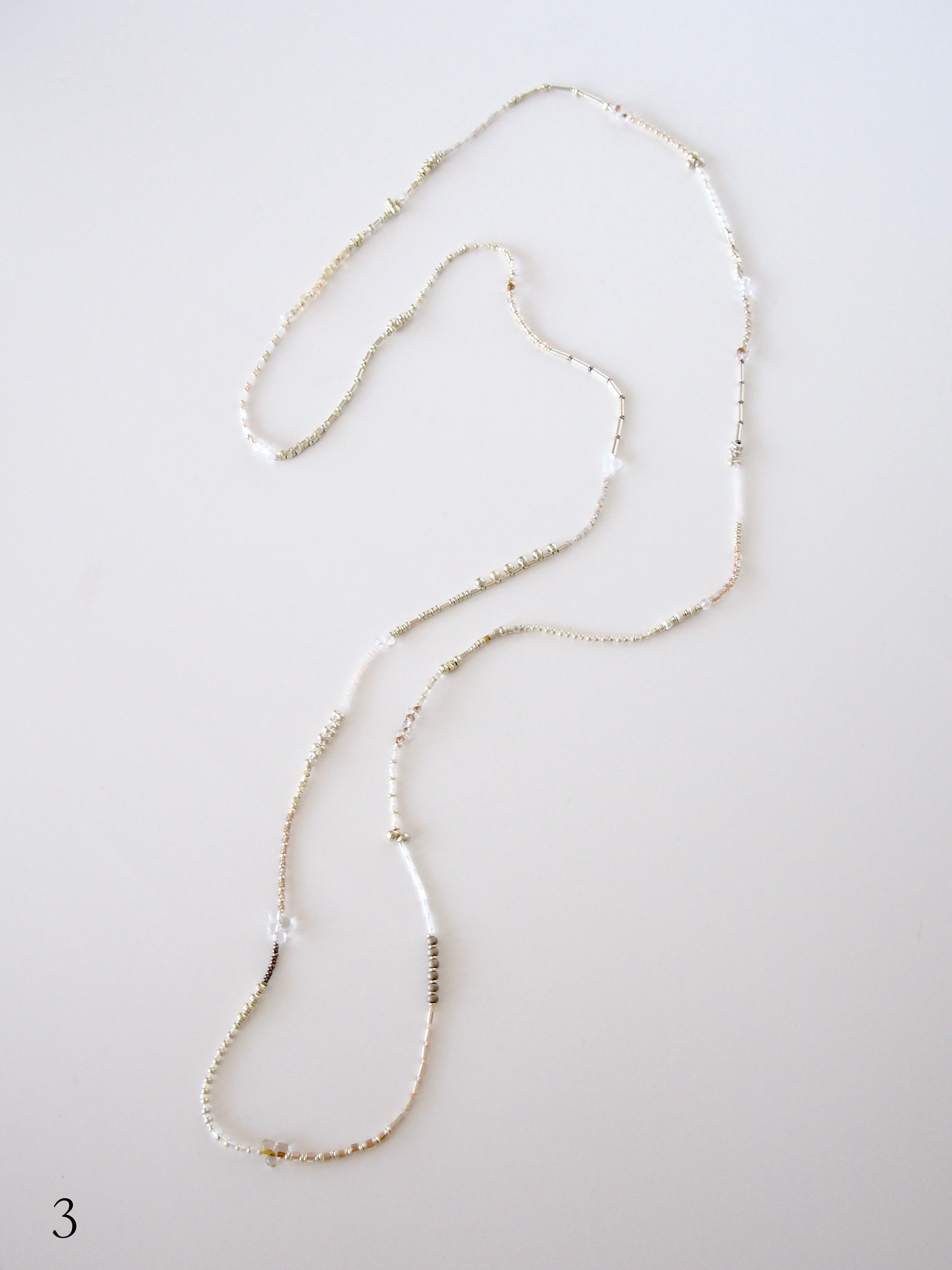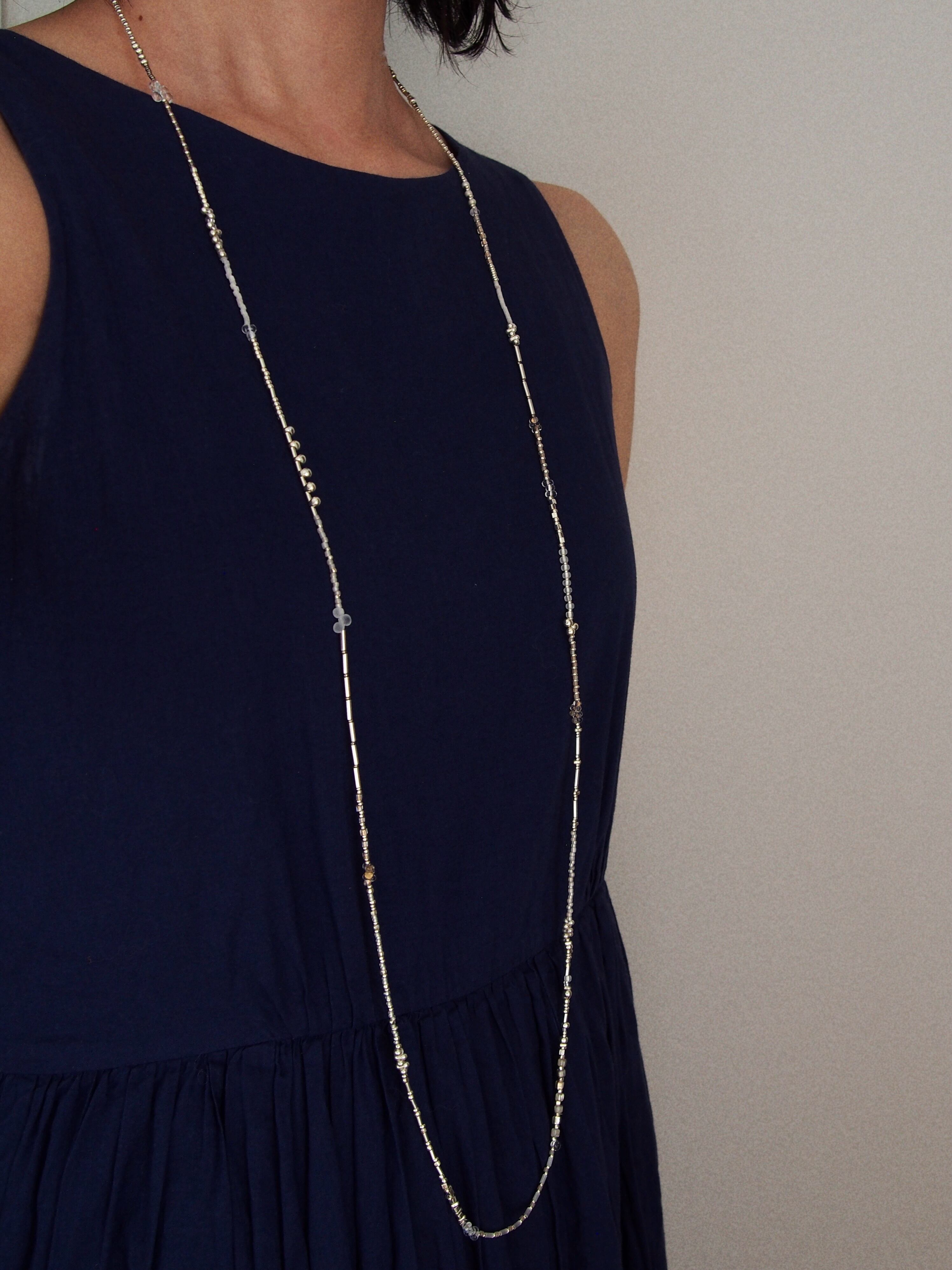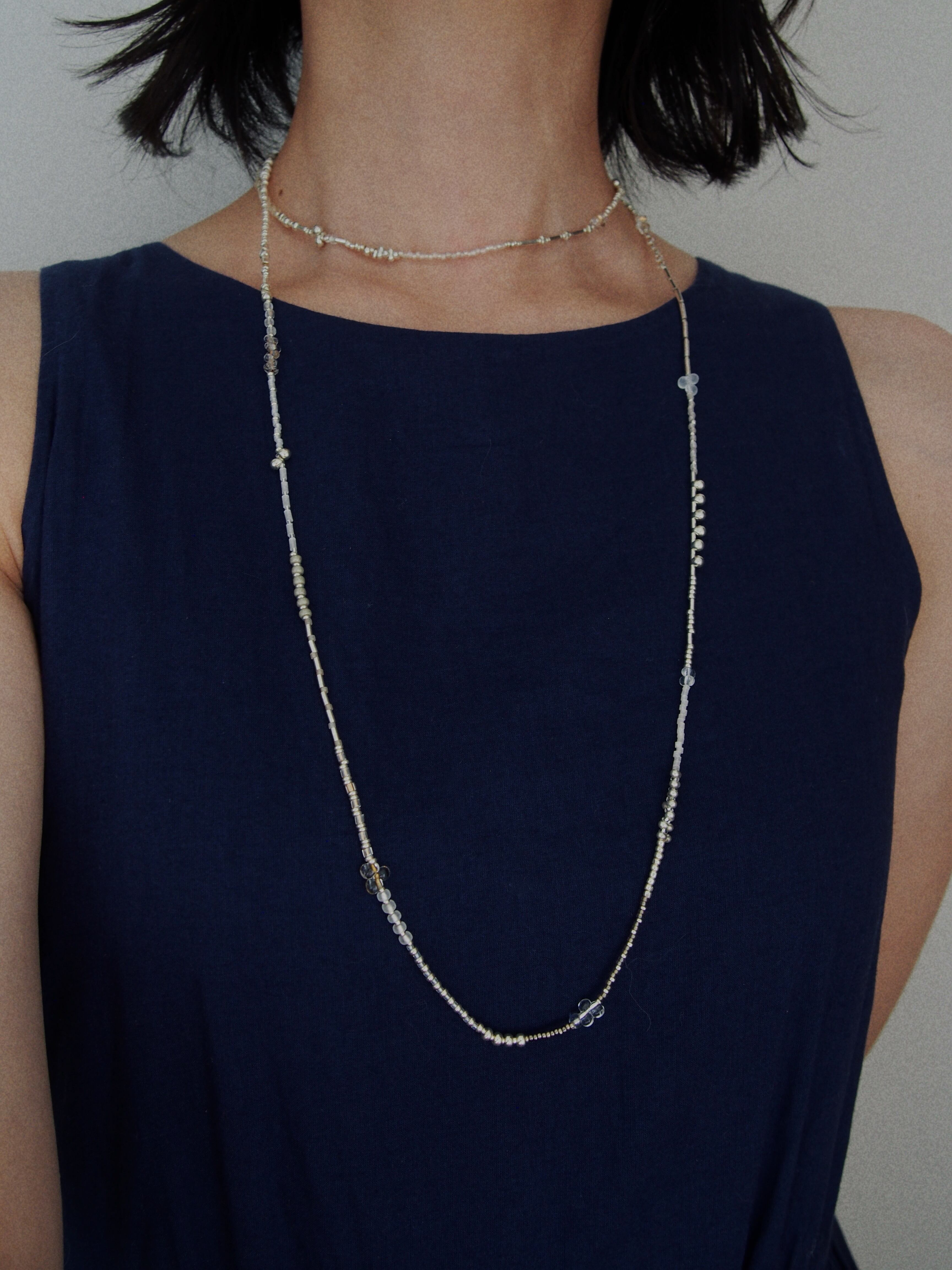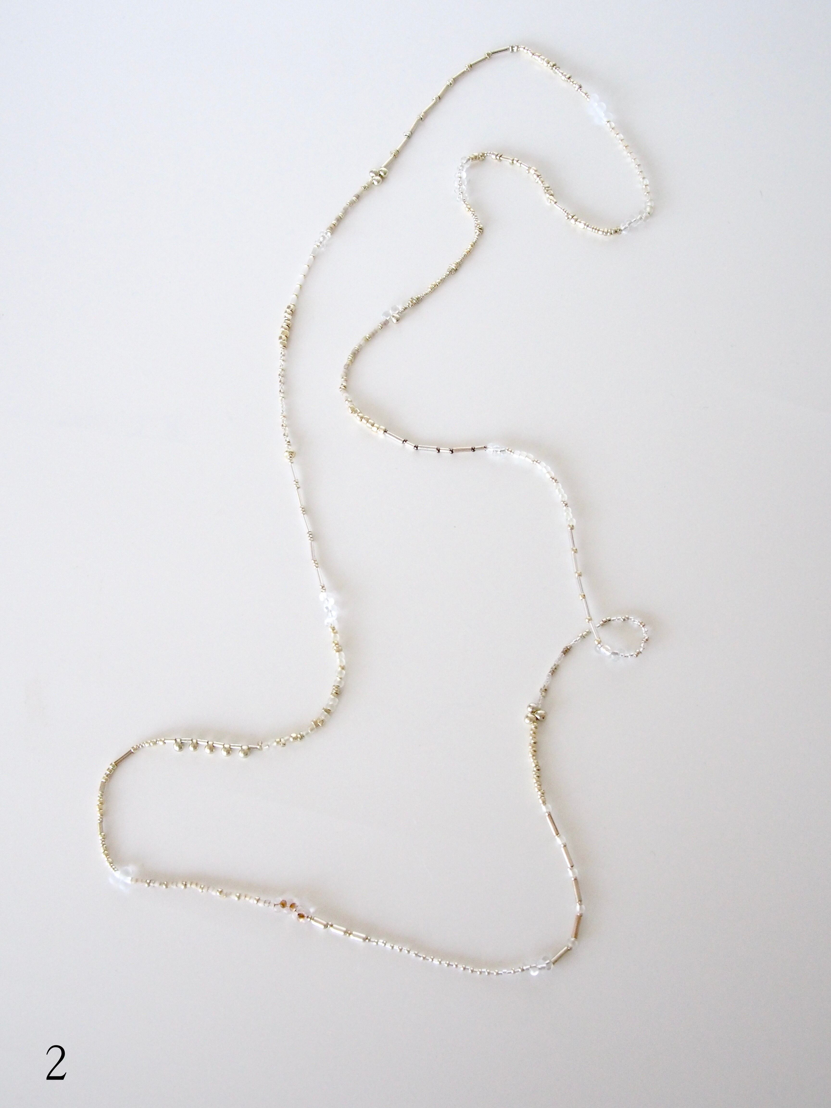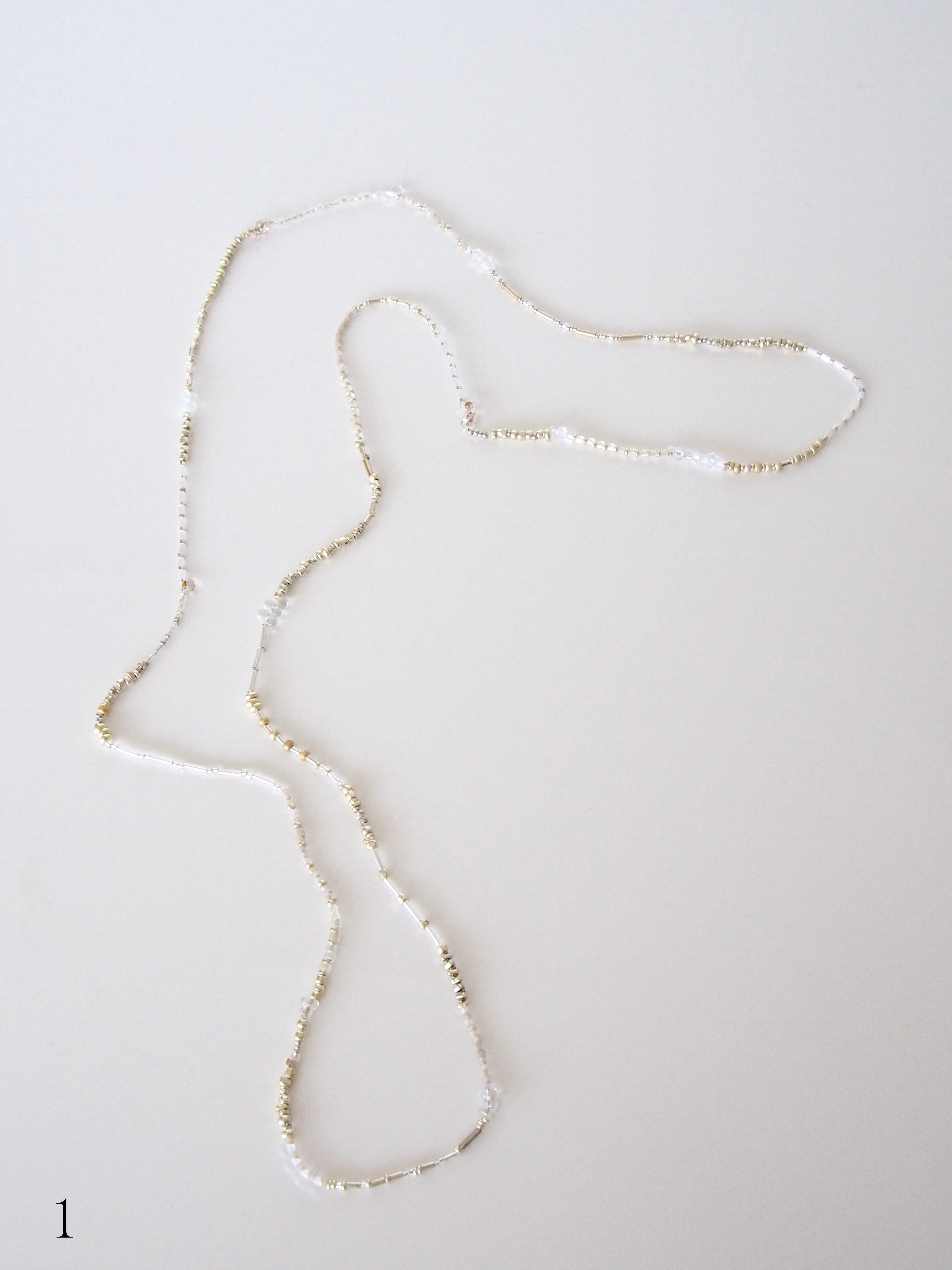 様々な表情の繊細なガラスビーズの暖かさを纏うシンプルな被るタイプのネックレス。