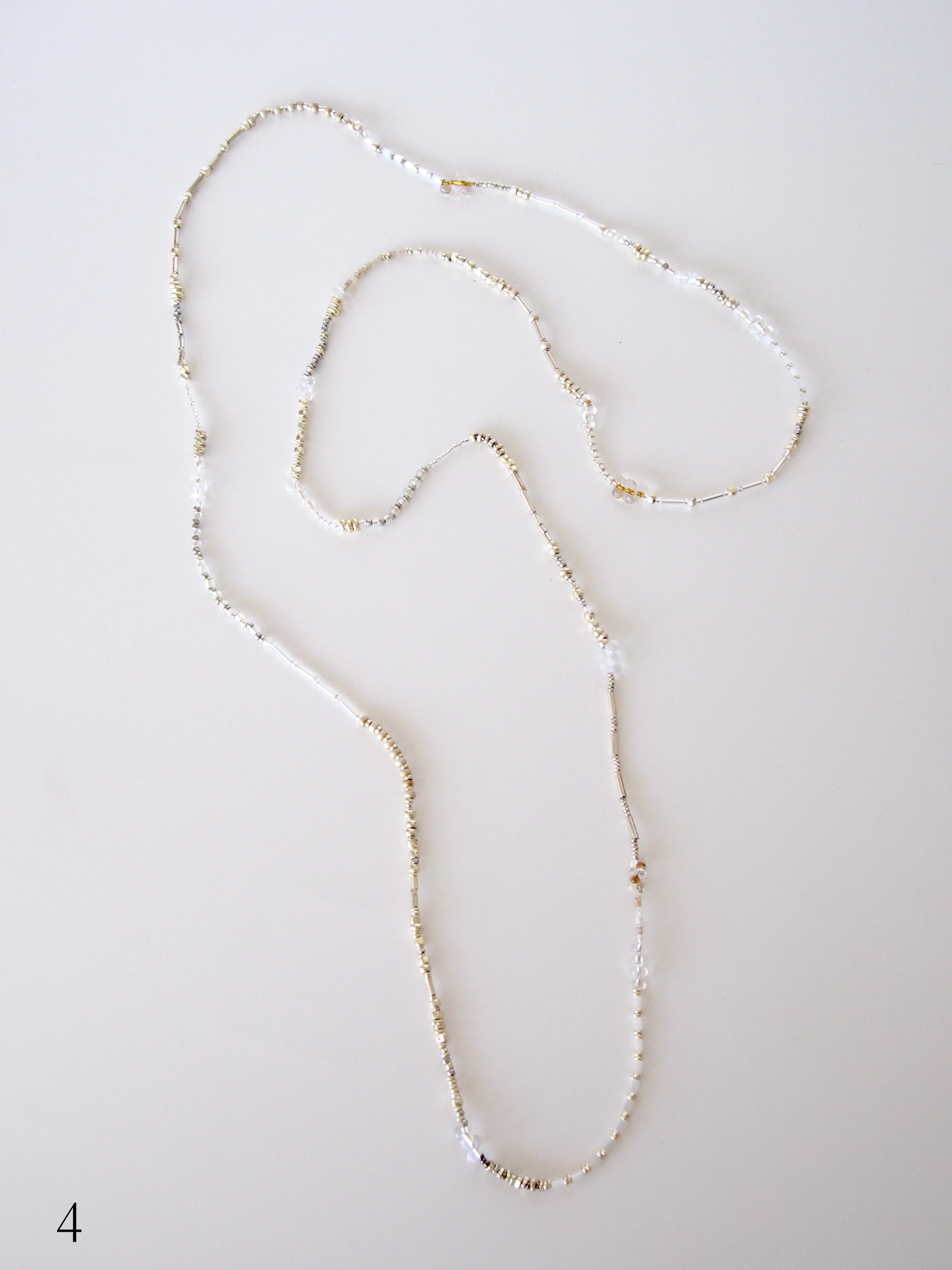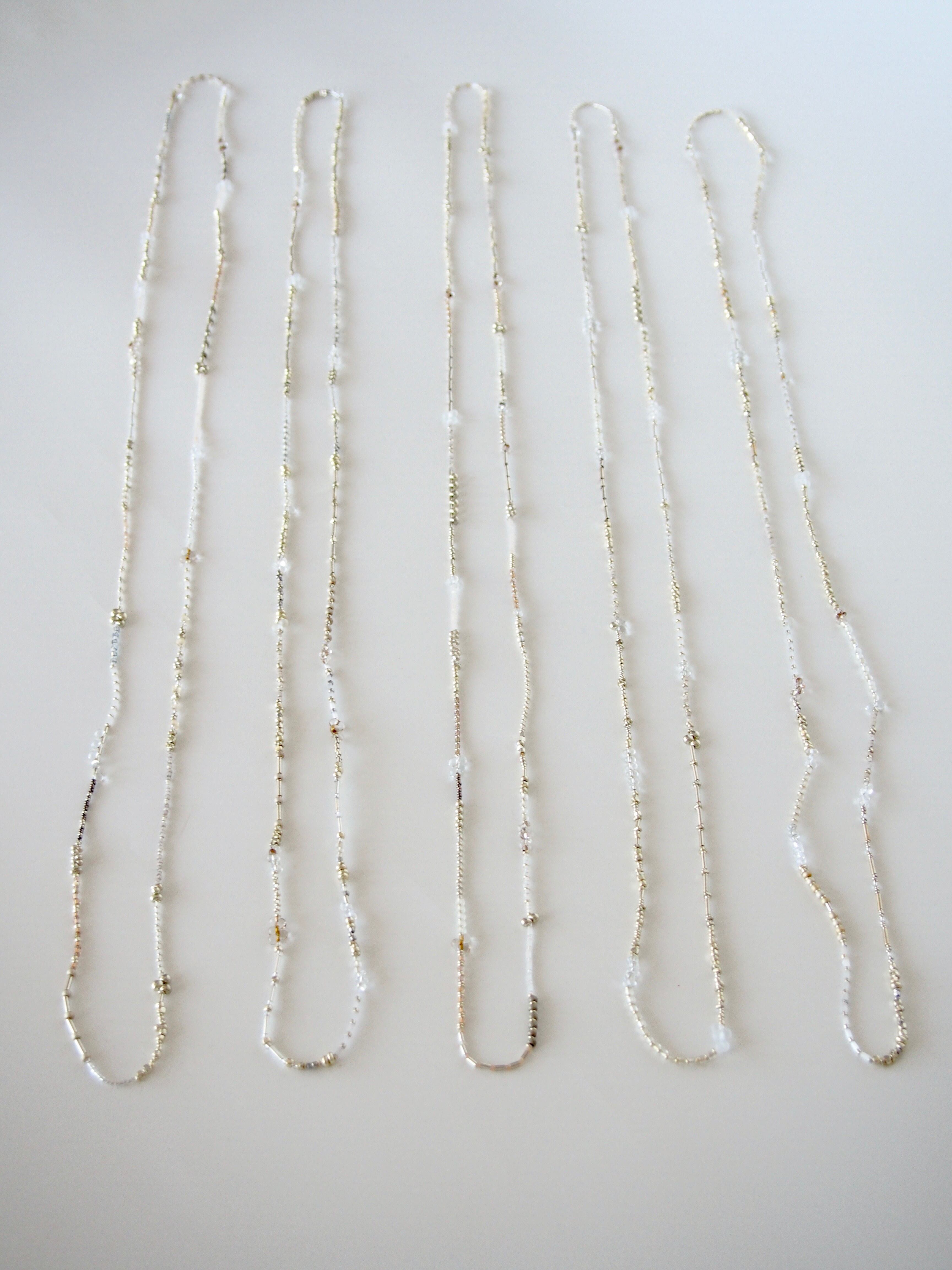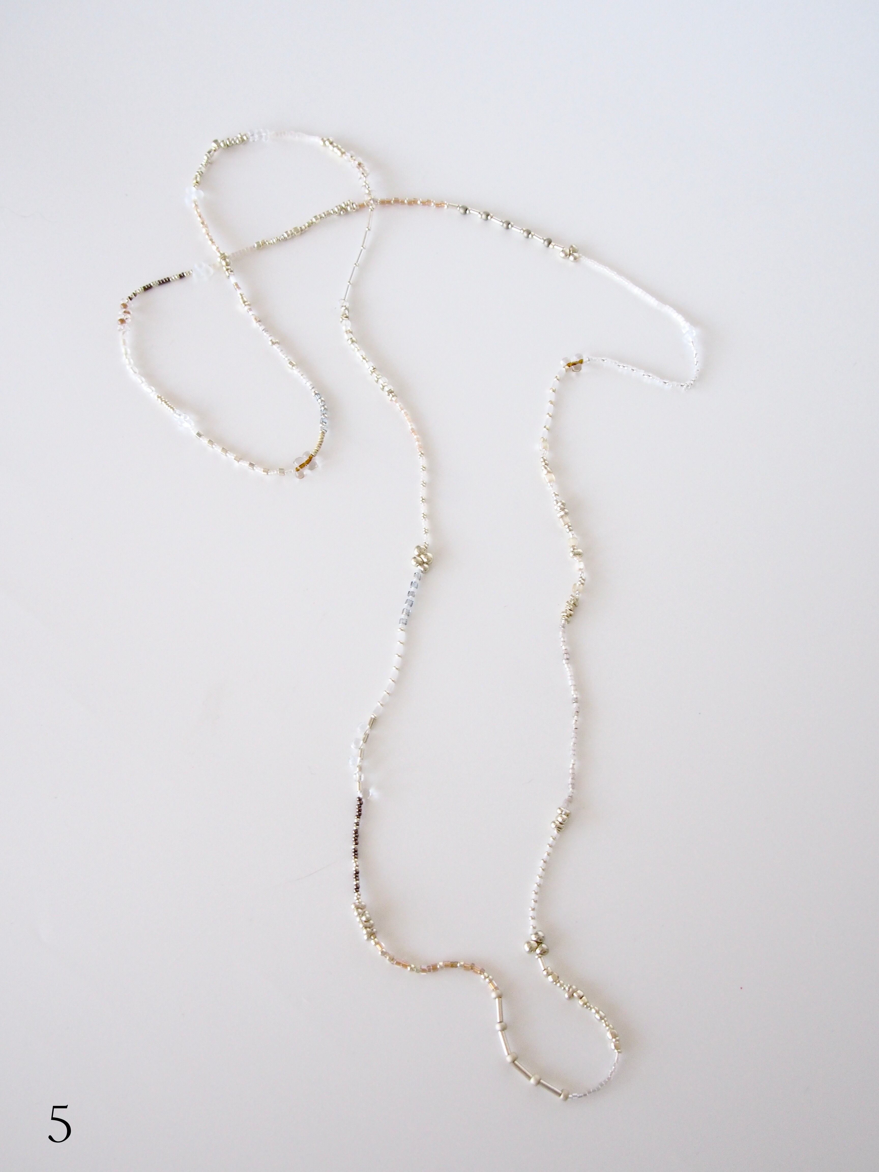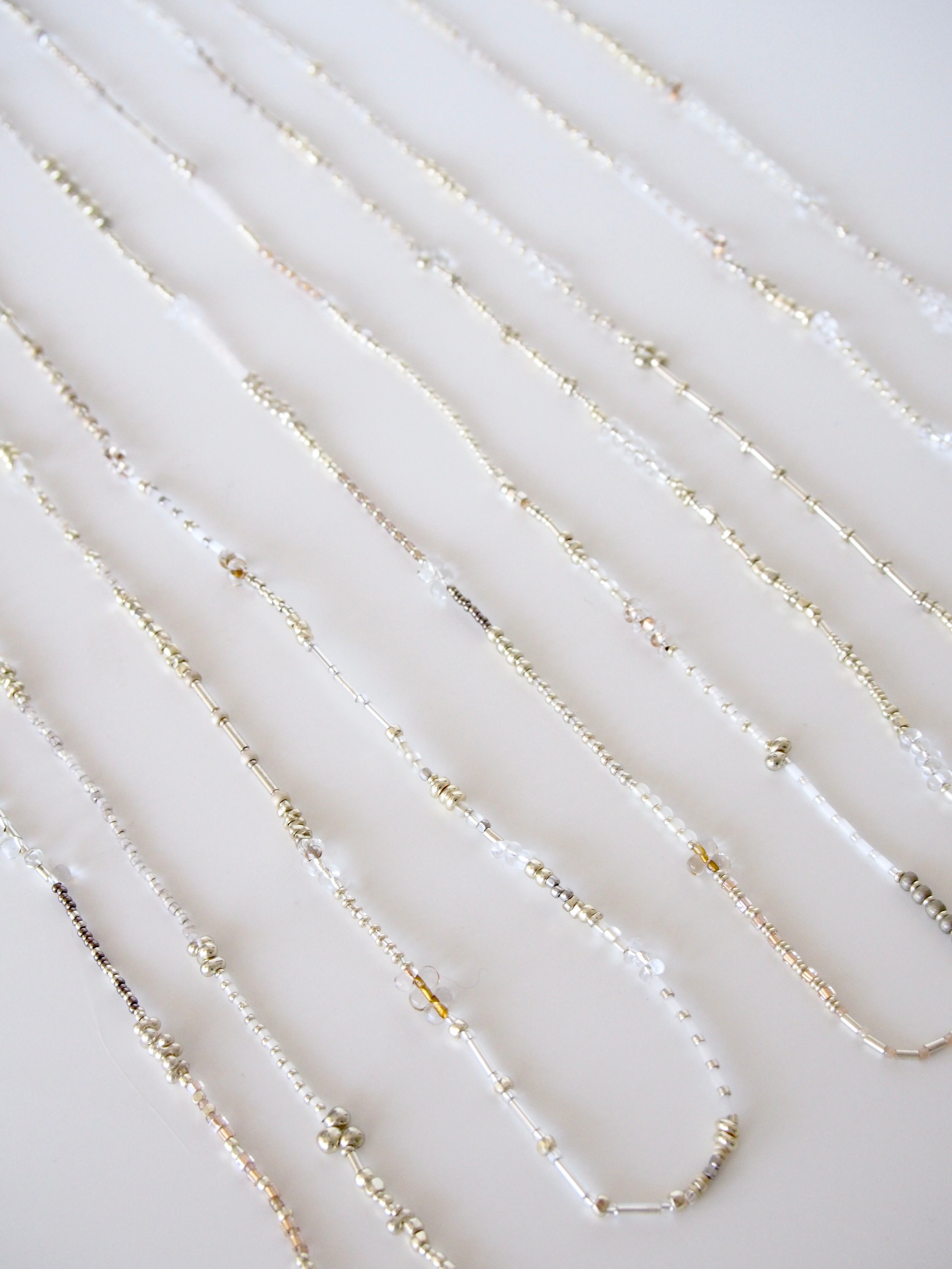 様々な表情の繊細なガラスビーズの暖かさを纏うシンプルな被るタイプのネックレス。
