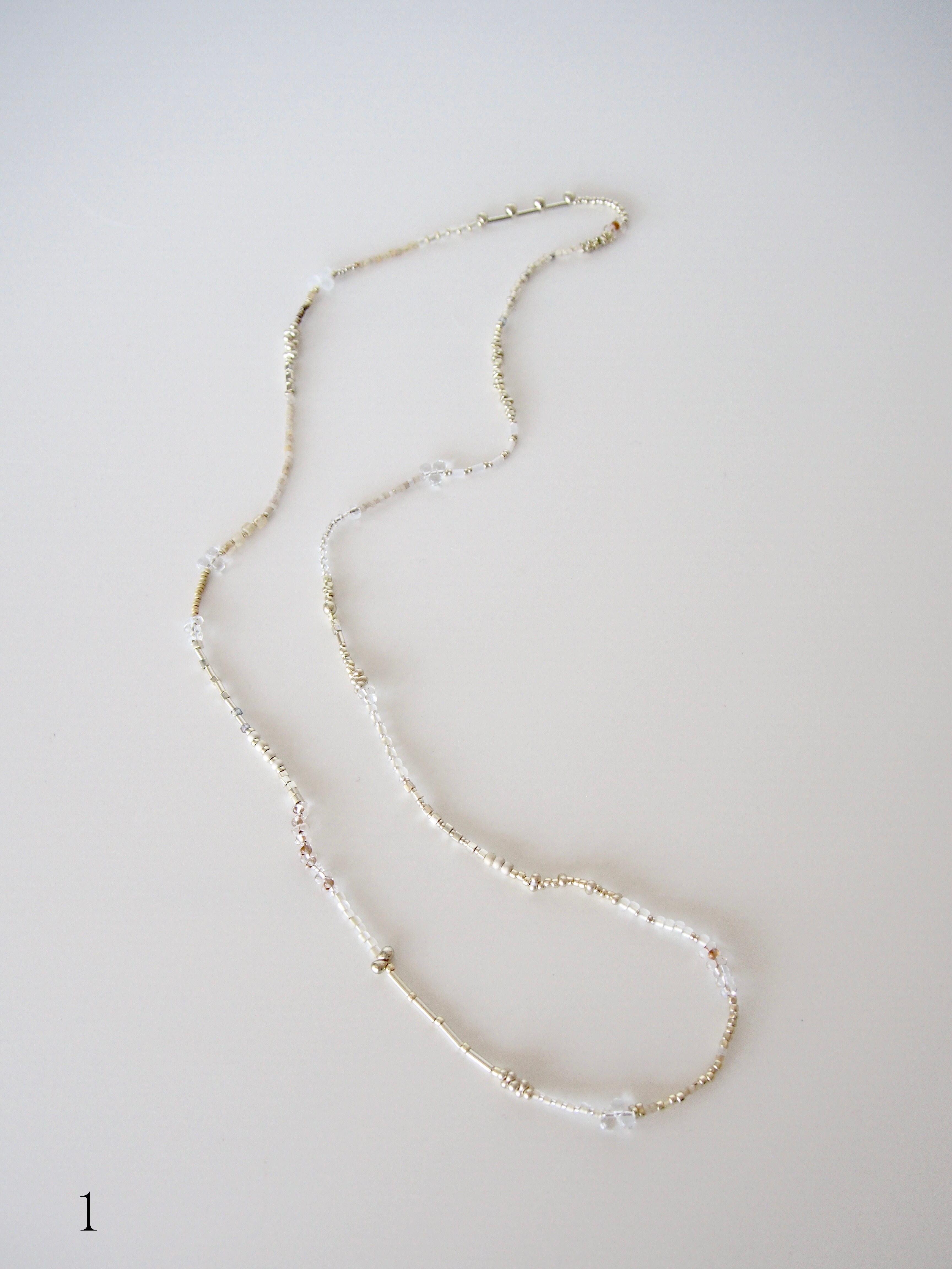 様々な表情の繊細なガラスビーズの暖かさを纏うシンプルな被るタイプのネックレス。