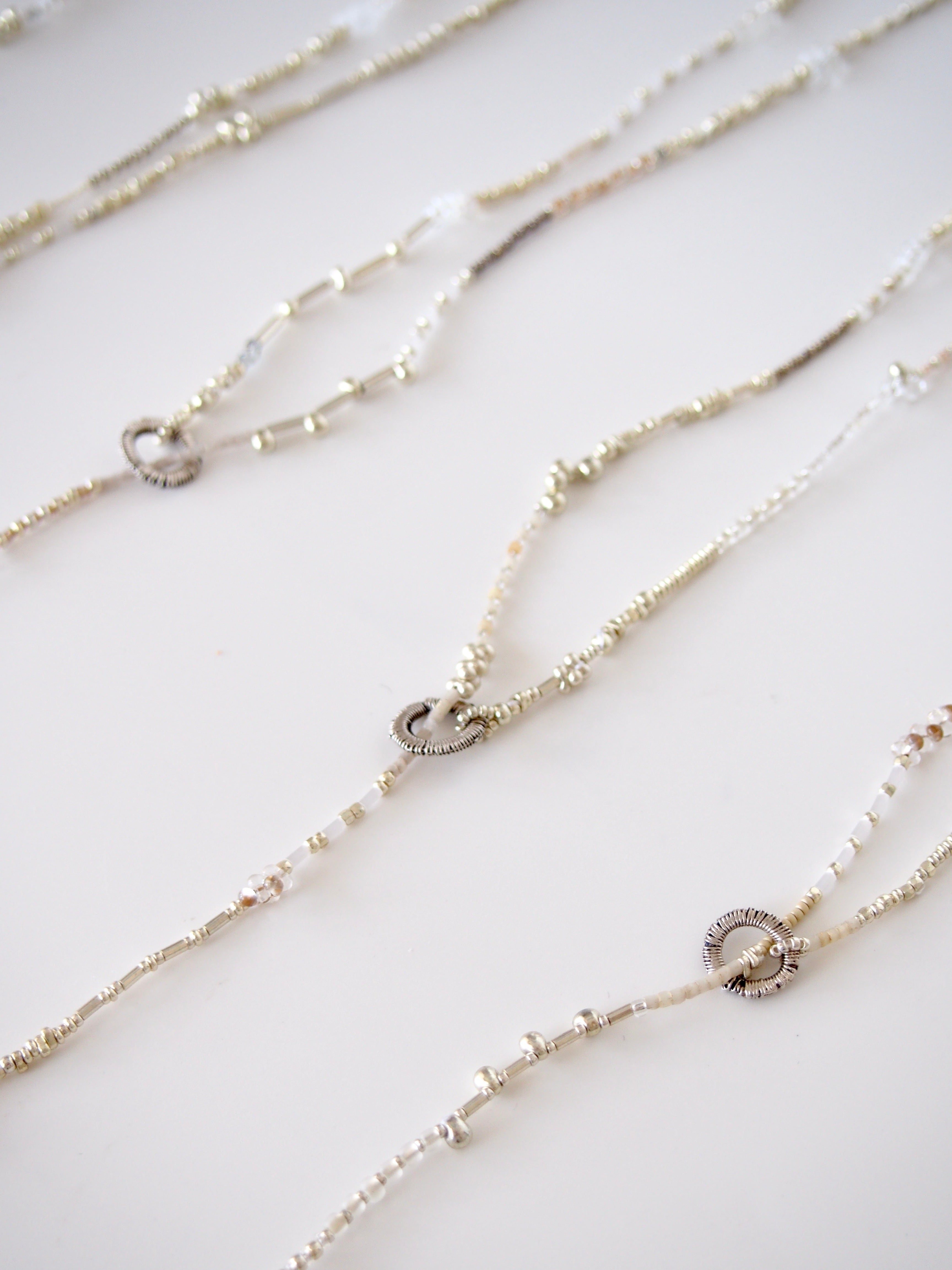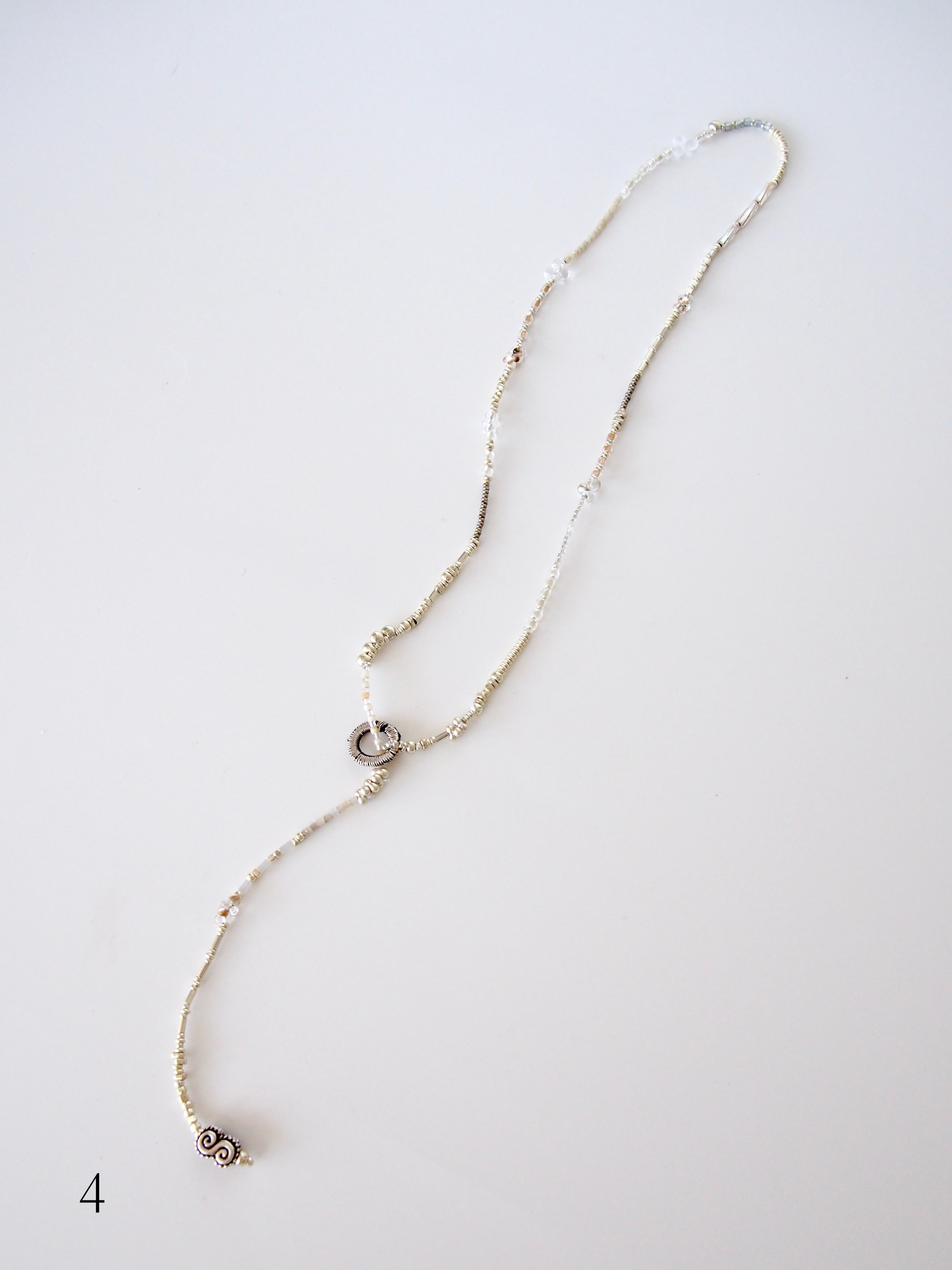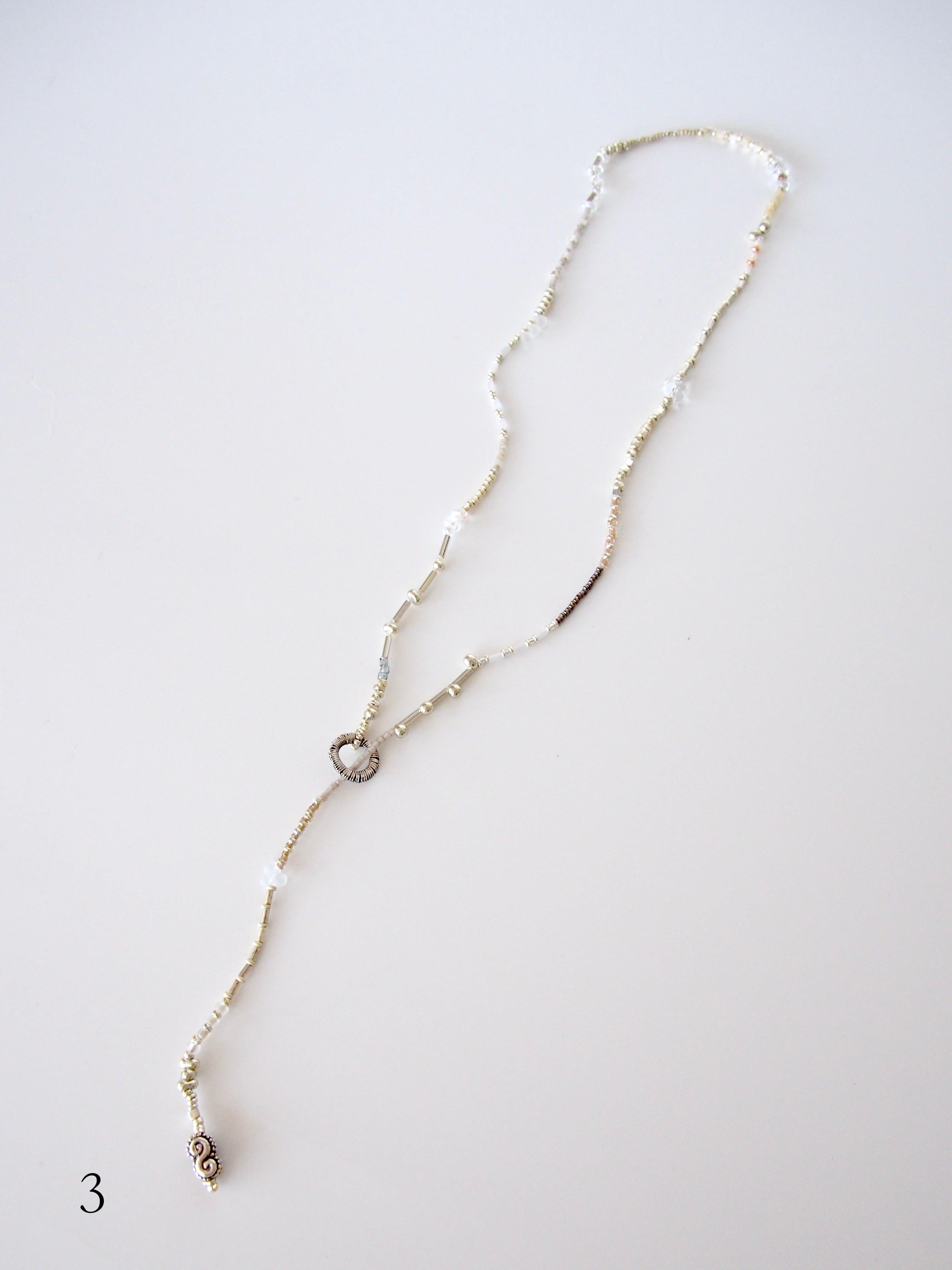 ビーズの立体感がうまく引っかかりになり、ランダムに長さを調整できます。