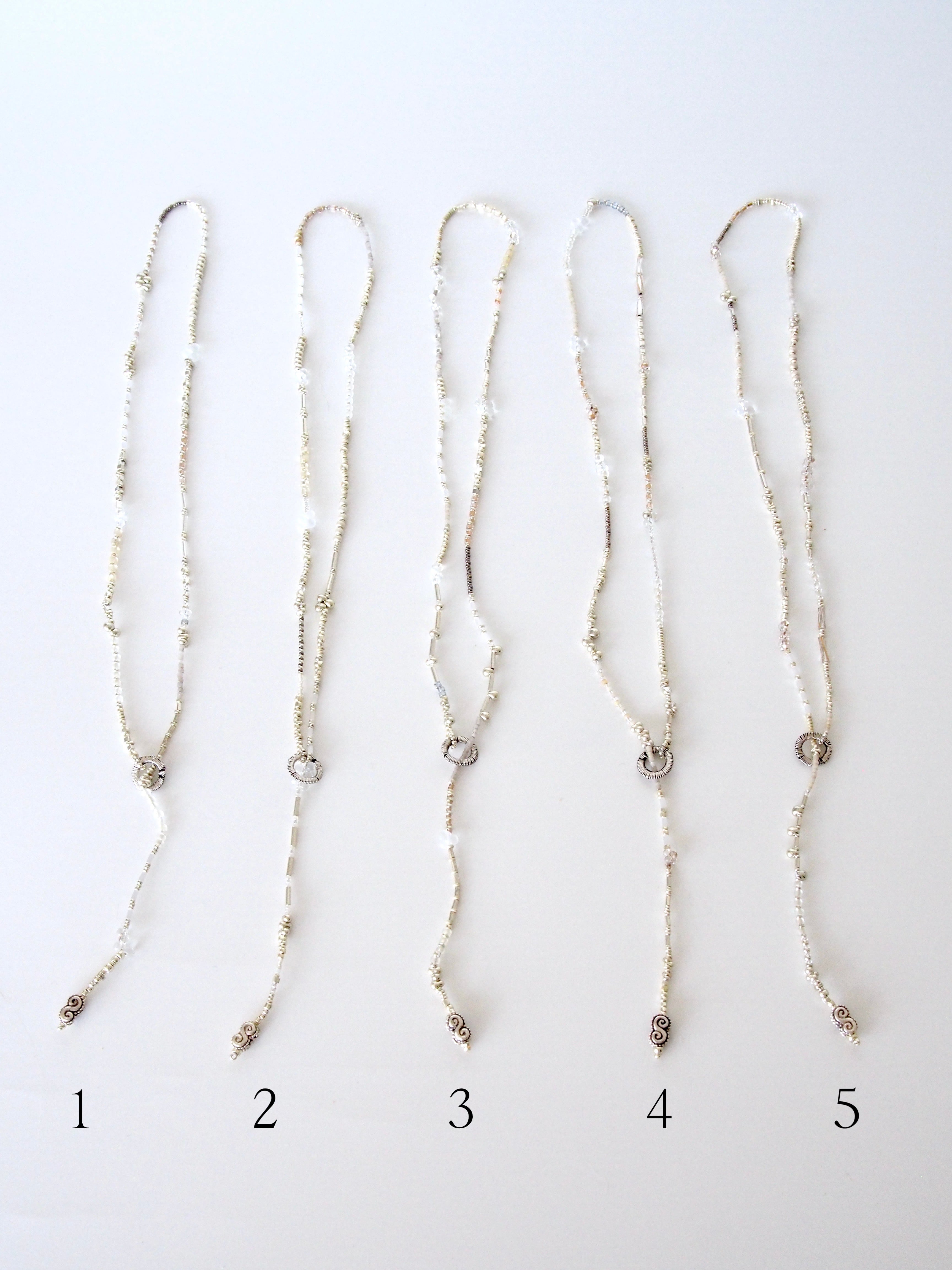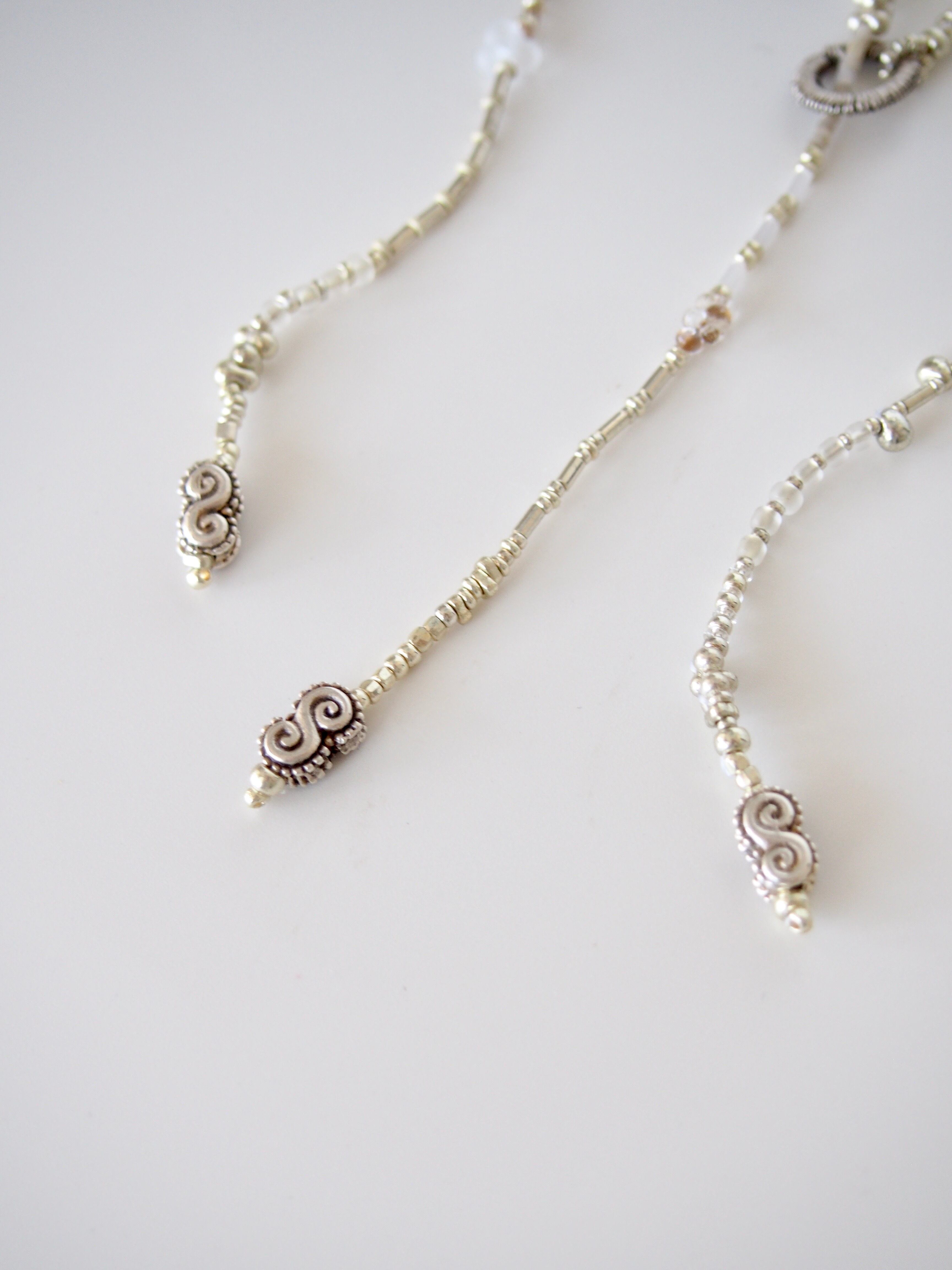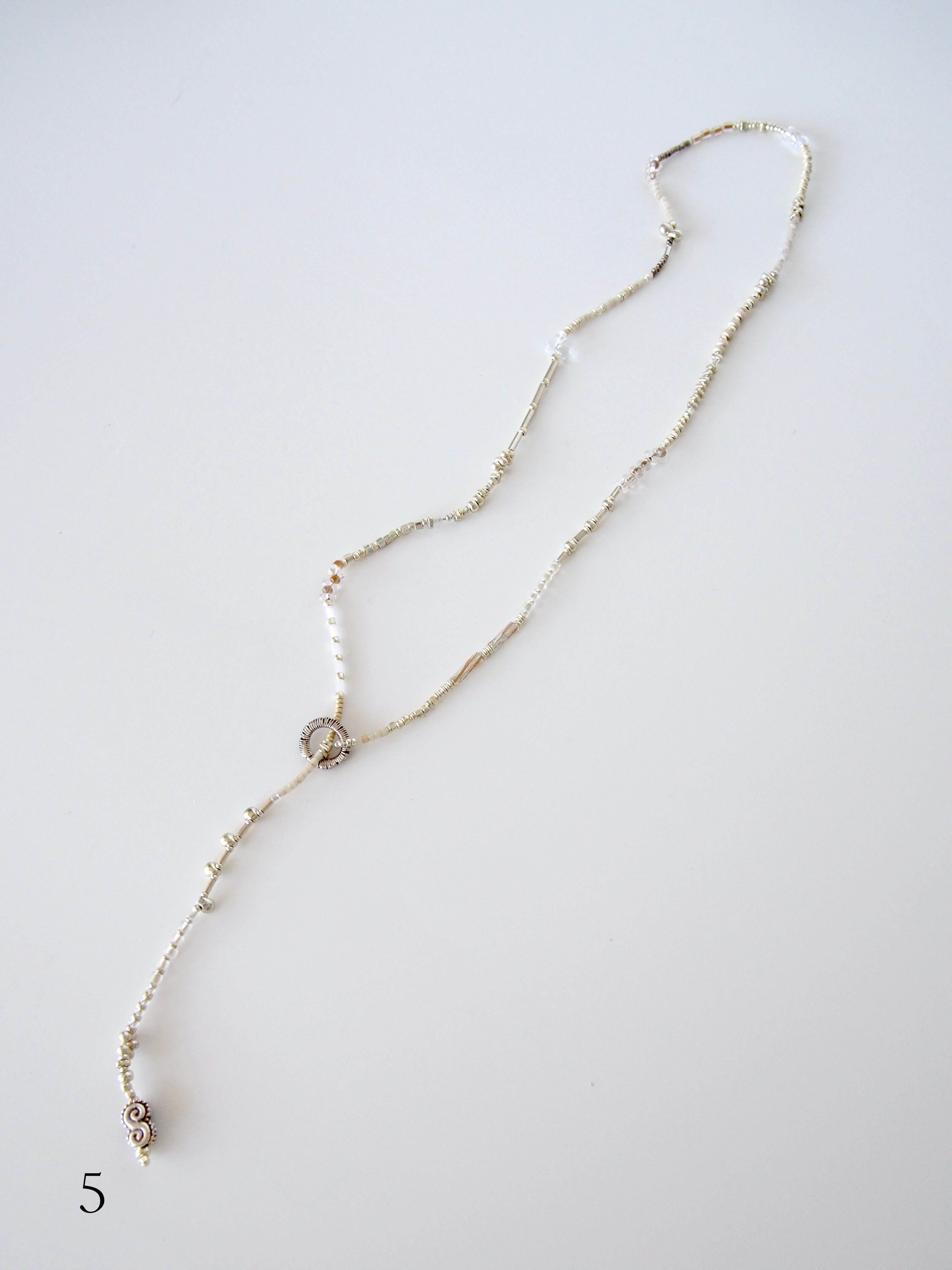 ビーズの立体感がうまく引っかかりになり、ランダムに長さを調整できます。