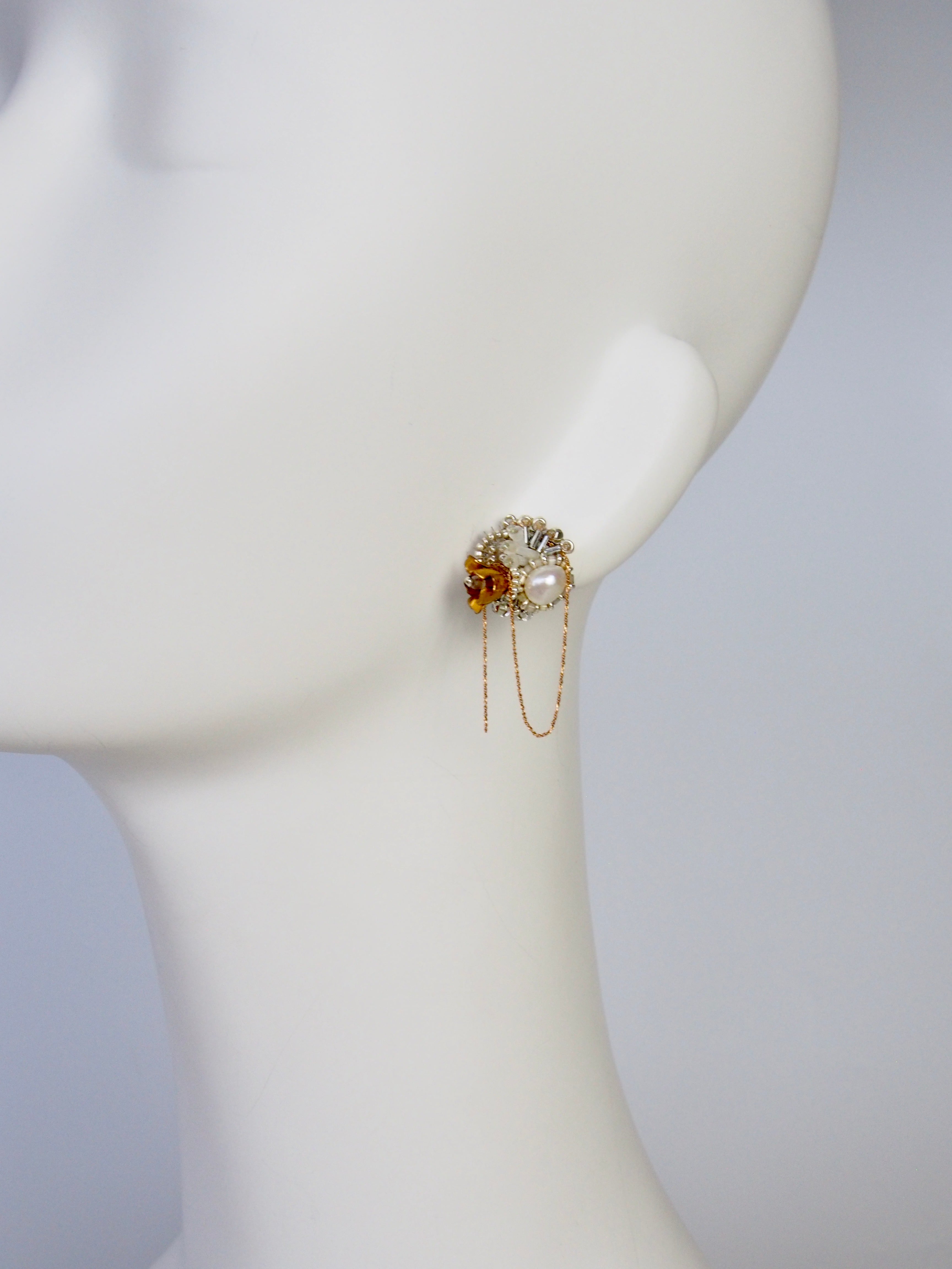 ギュッと素材をコラージュした宝箱の様なピアス。
