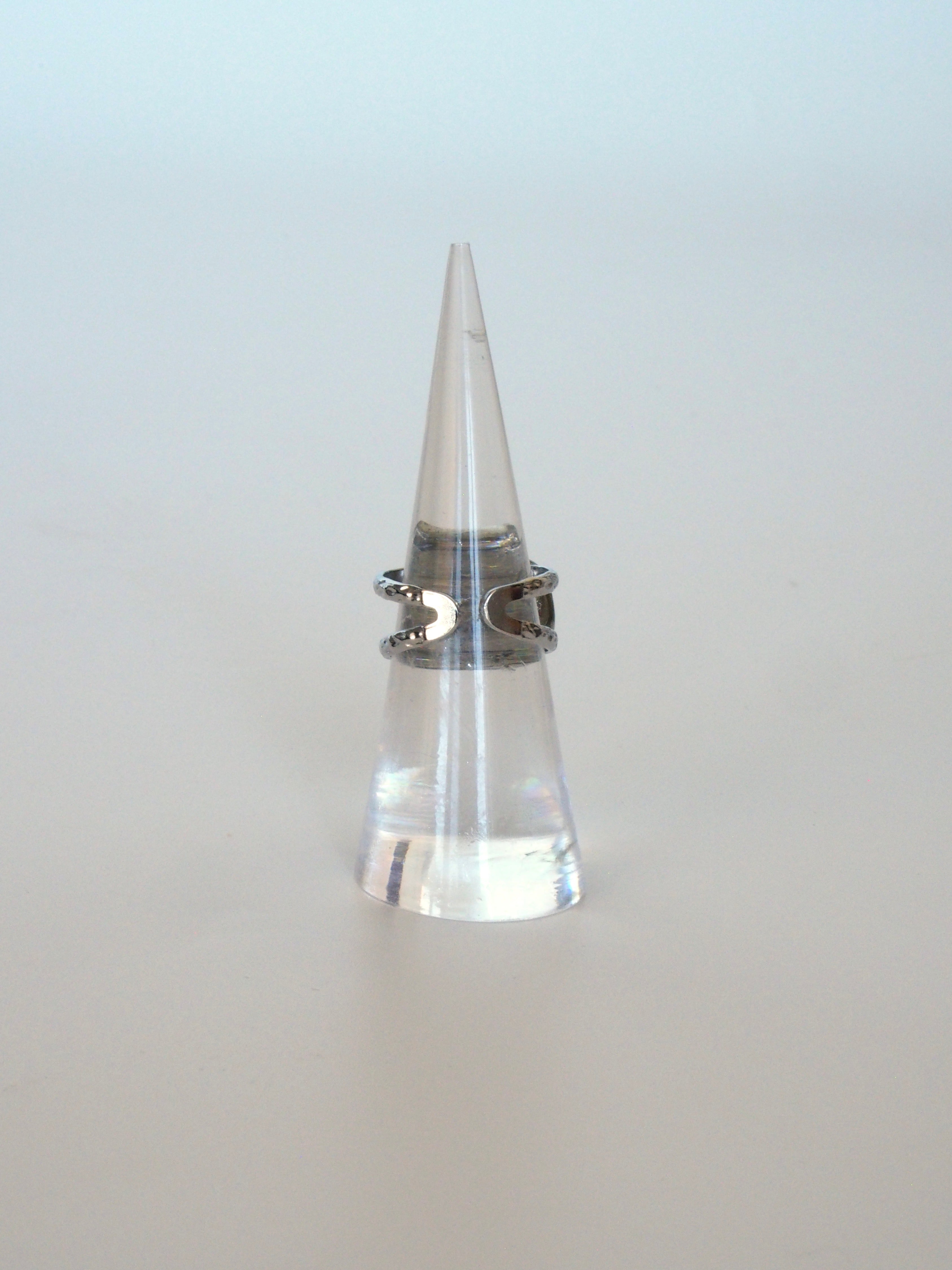 太めのデザインリングにダイナミックなモチーフが目を引く
