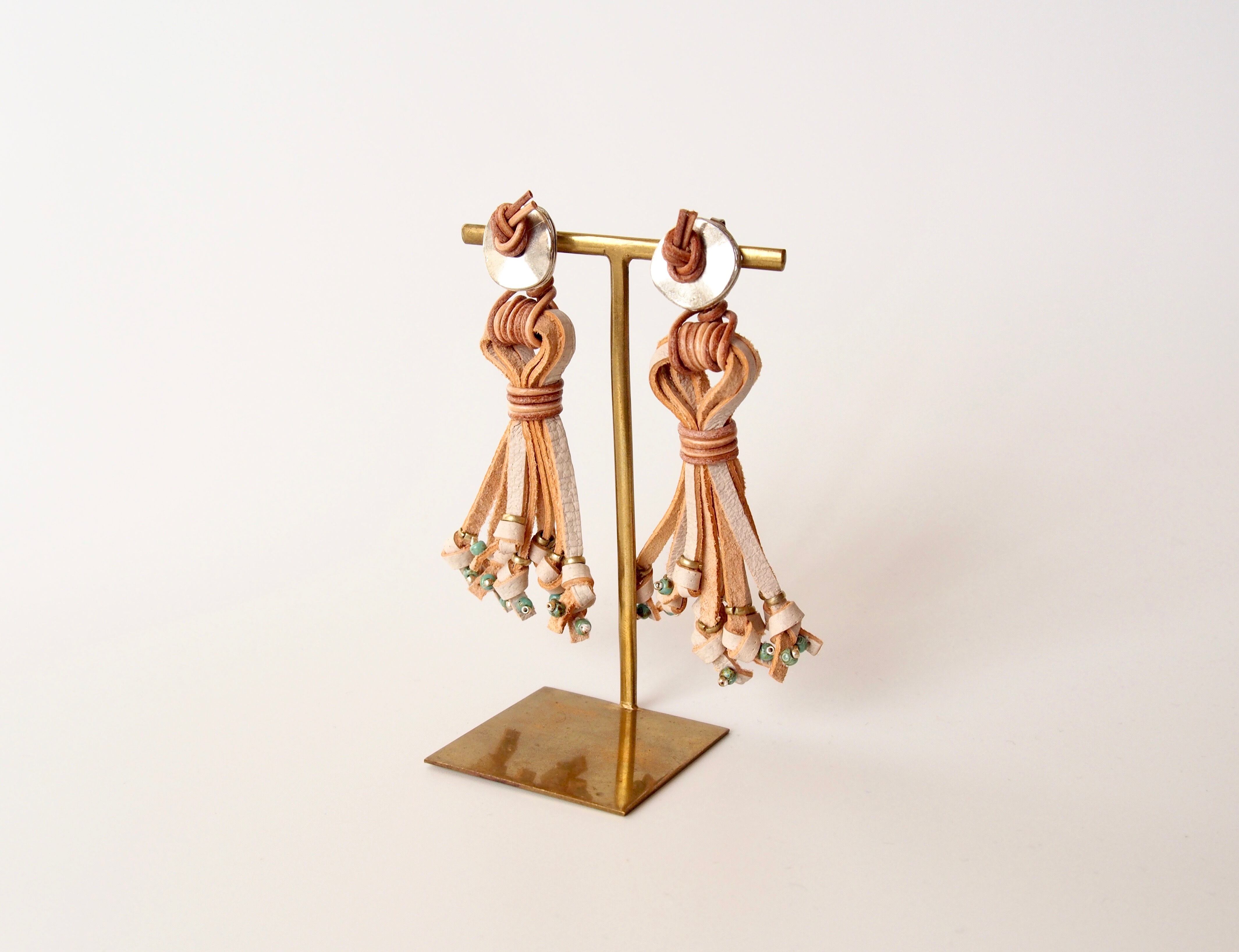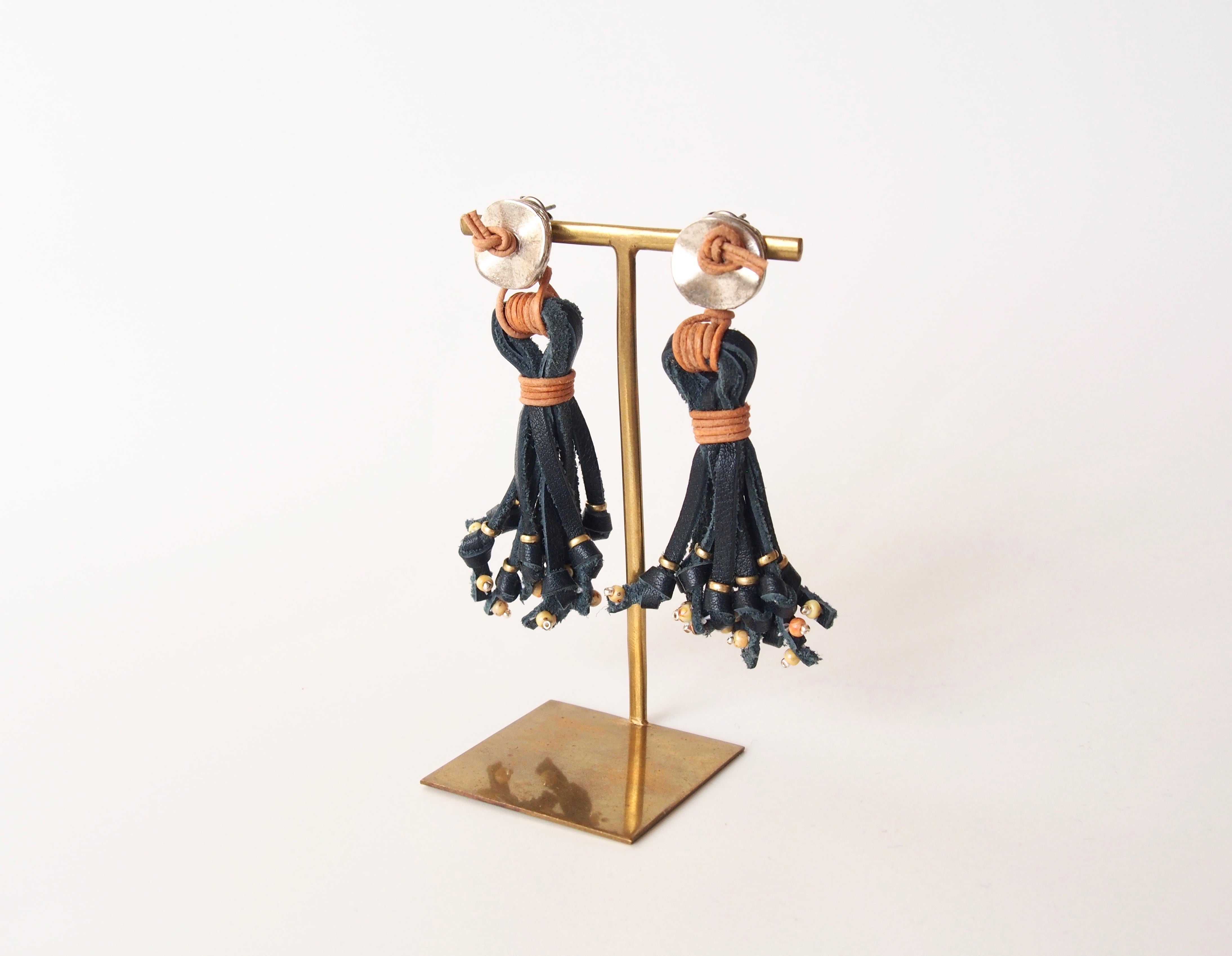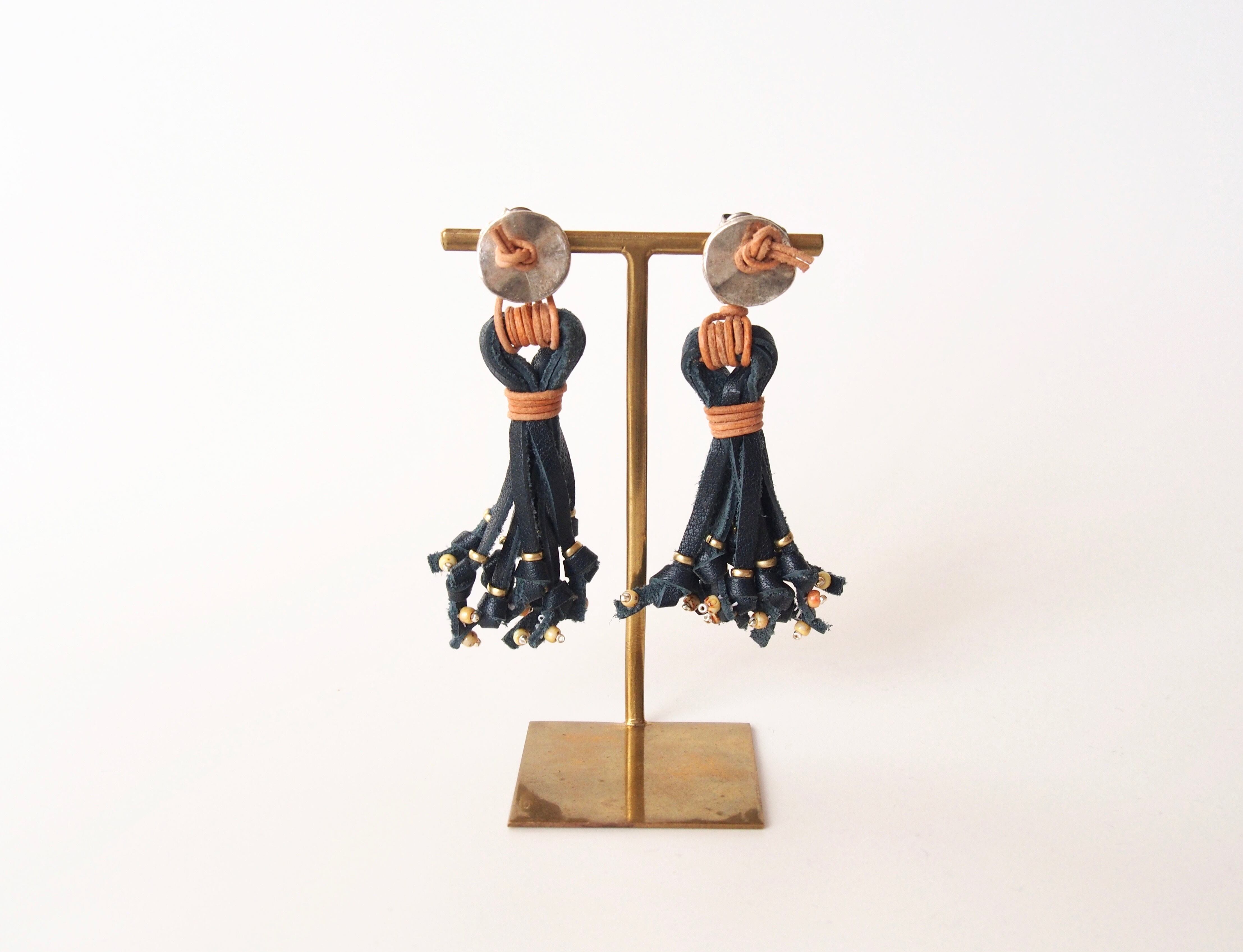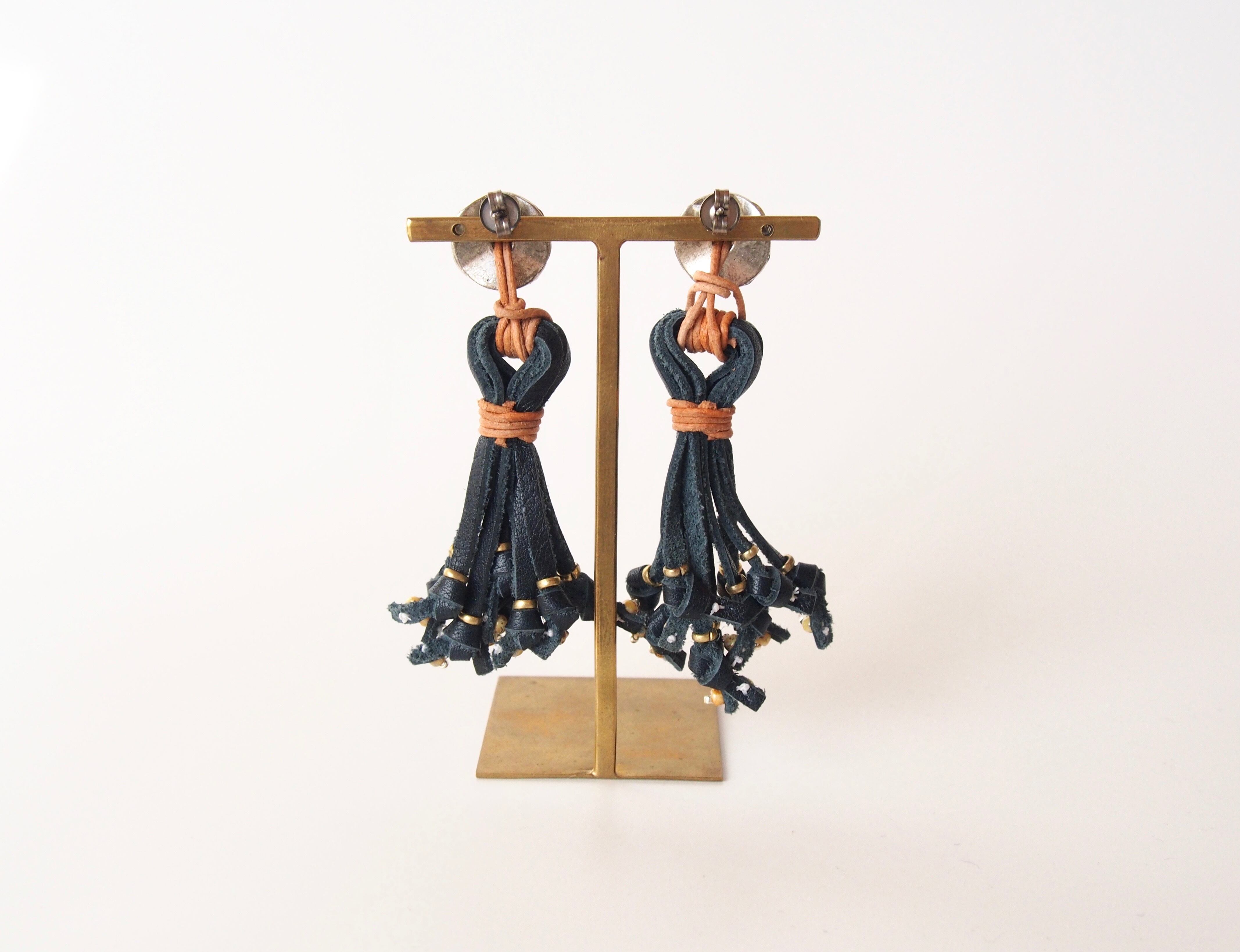 お手入れのいらないシュリンクレザーを使用した、経年変化を楽しむピアス・イヤリングです。