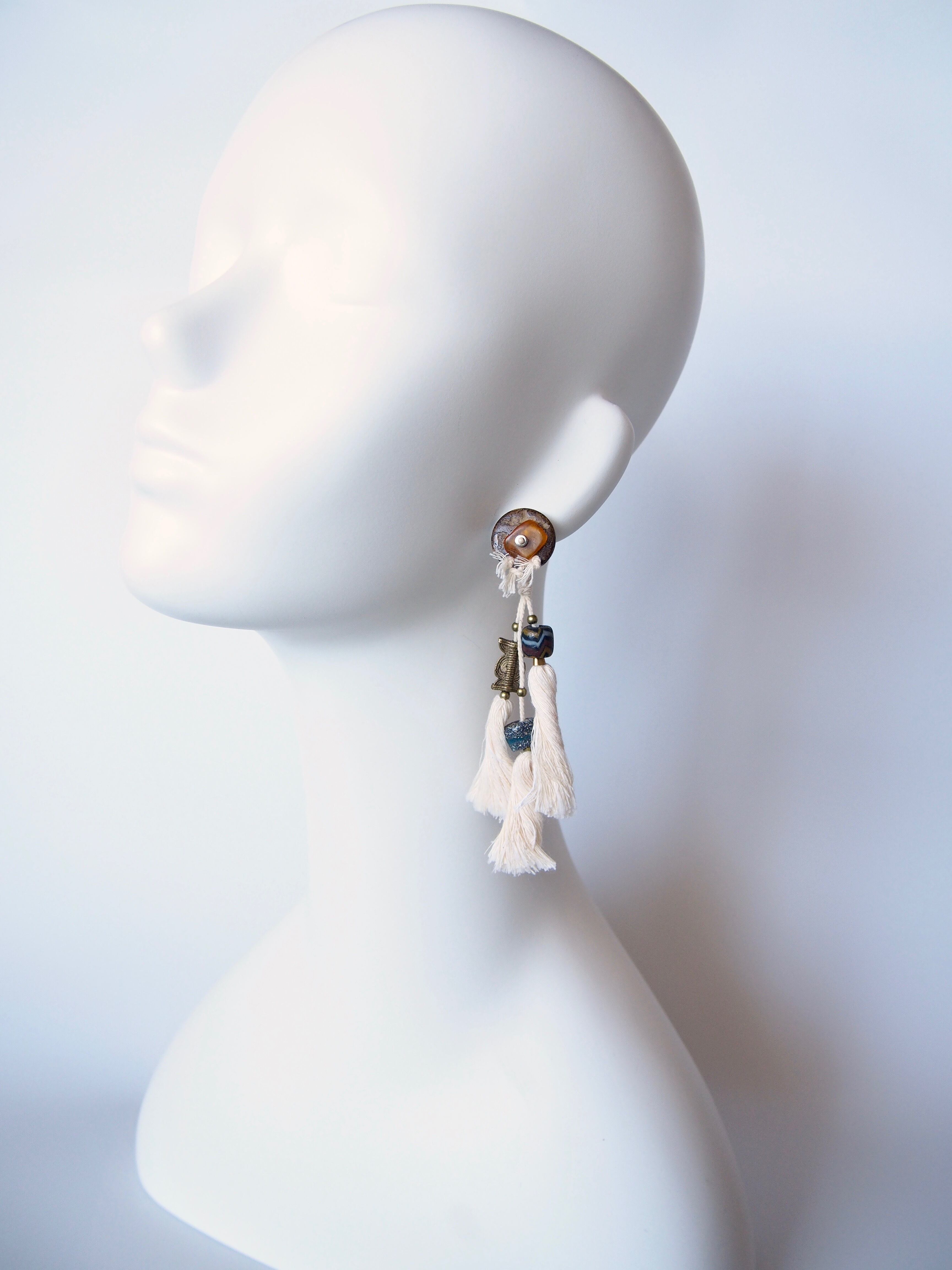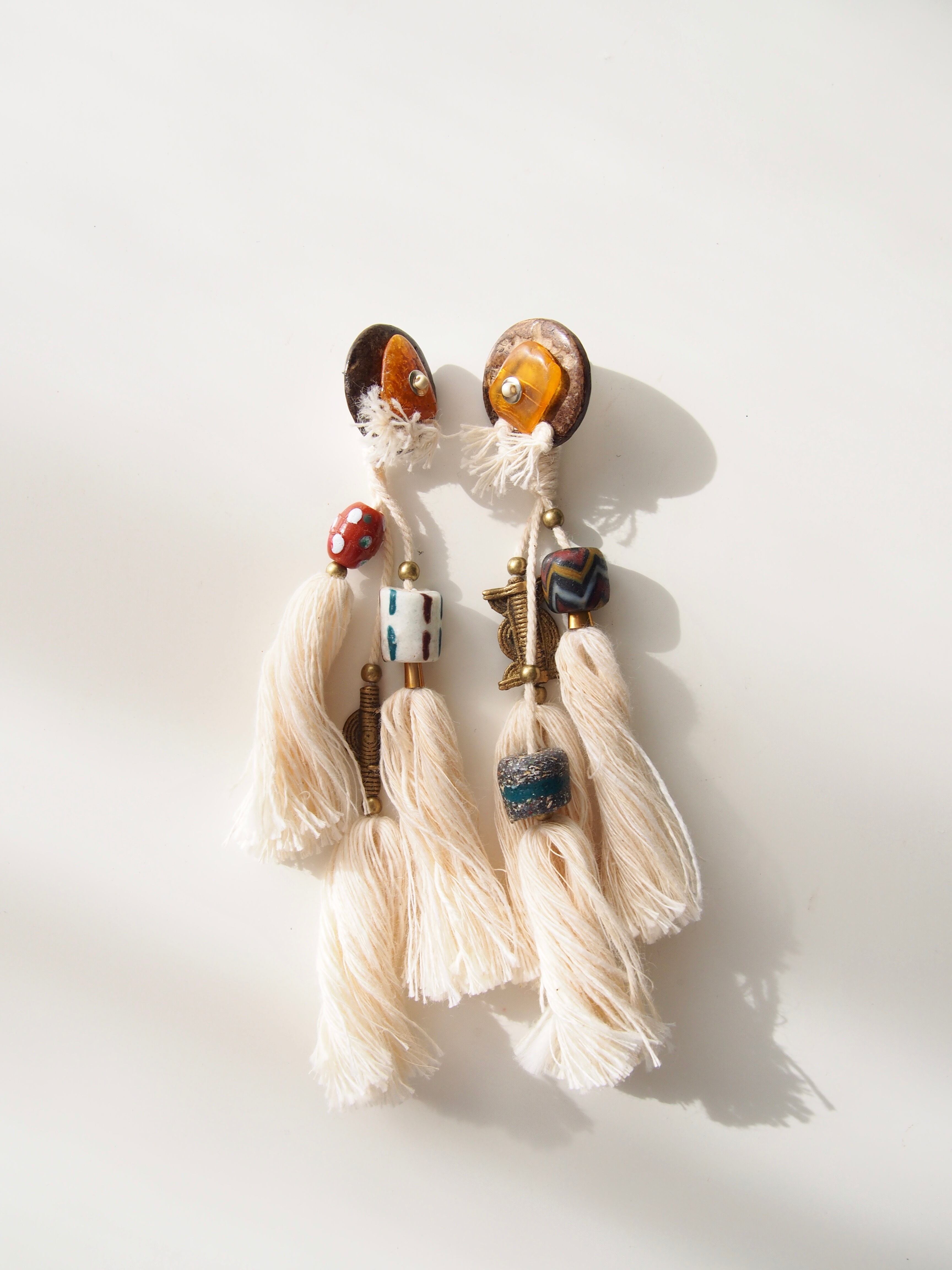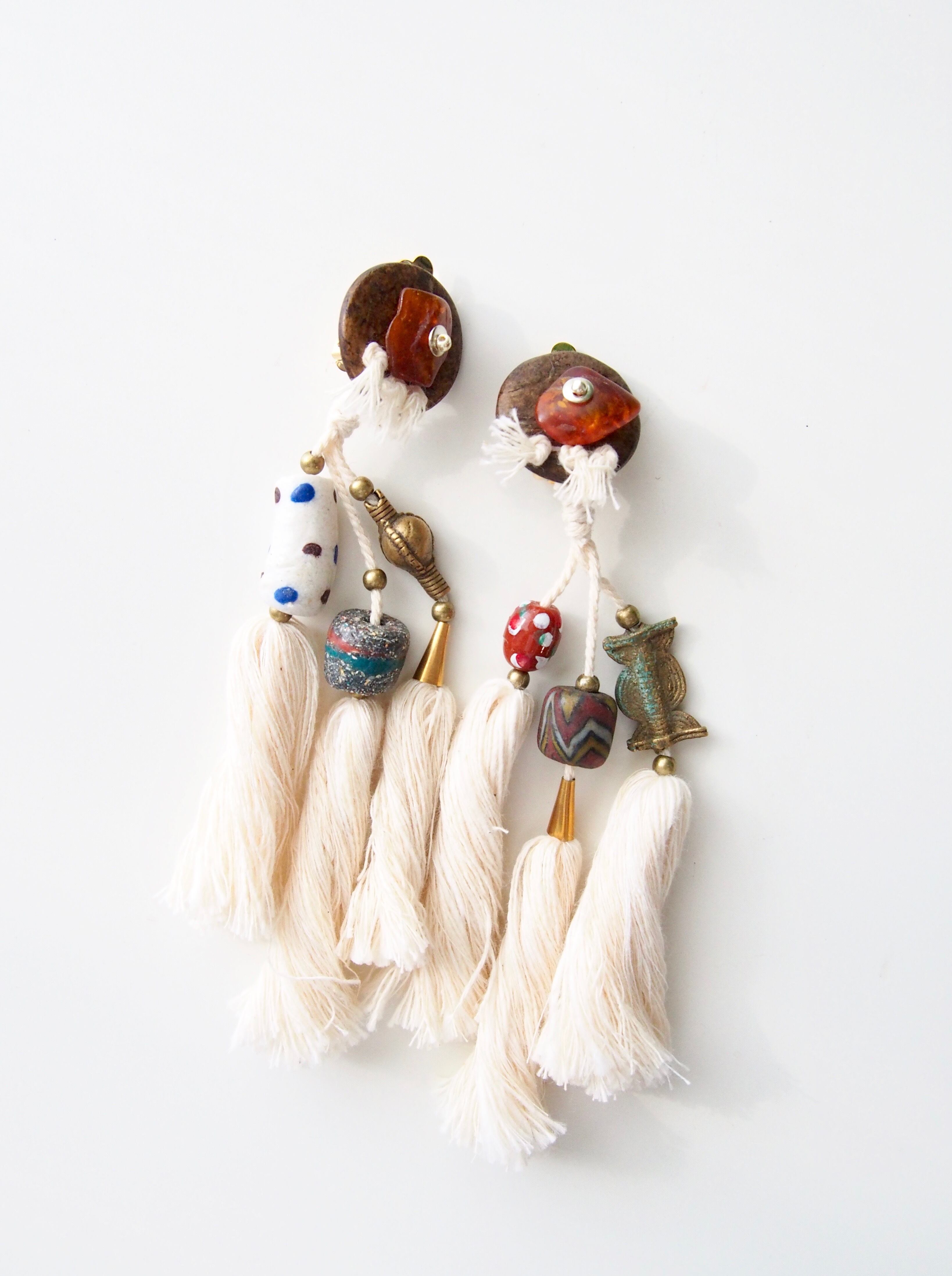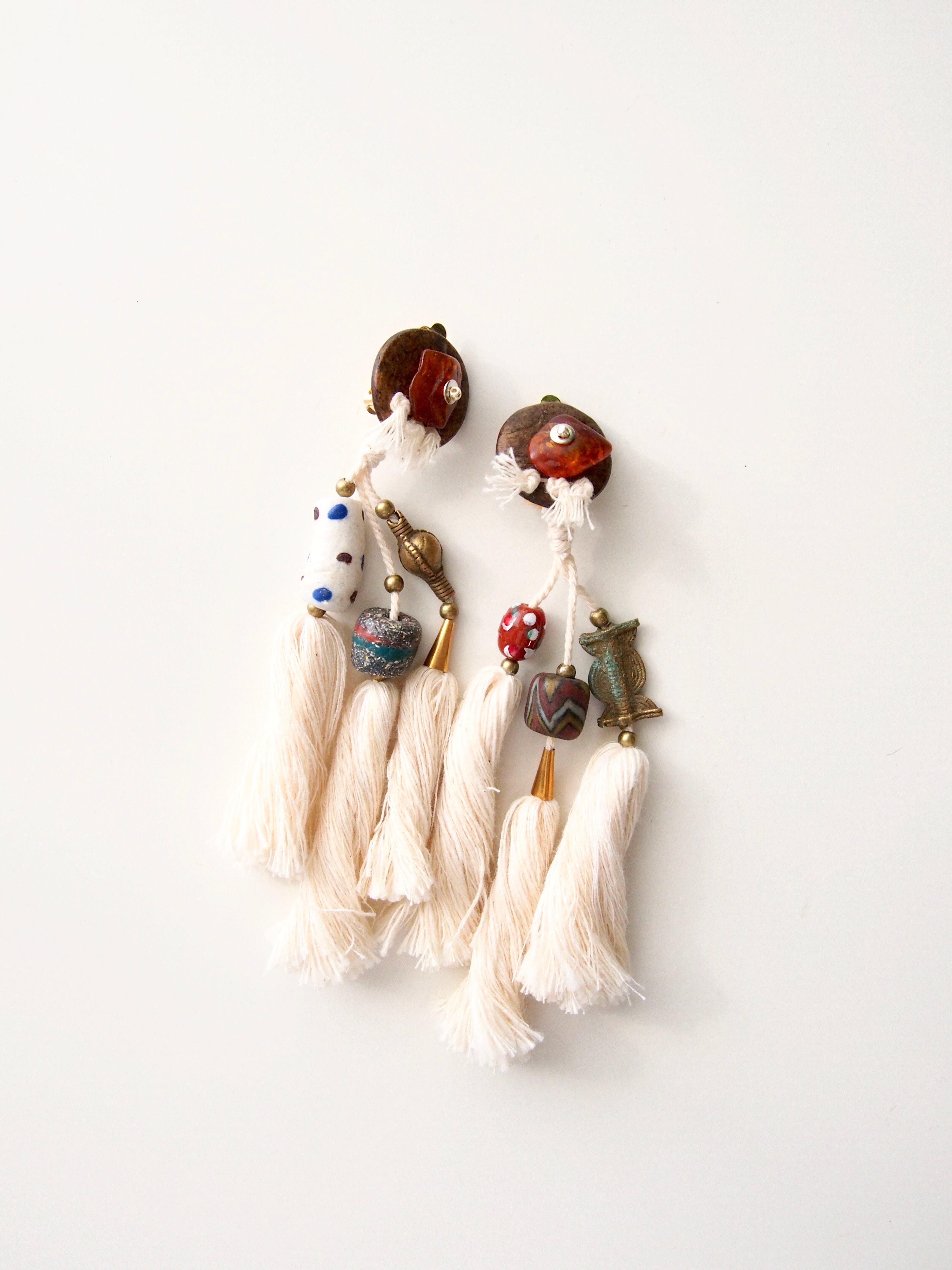 コットンタッセルで民族調に仕上げた大ぶりのピアス/クリップです。