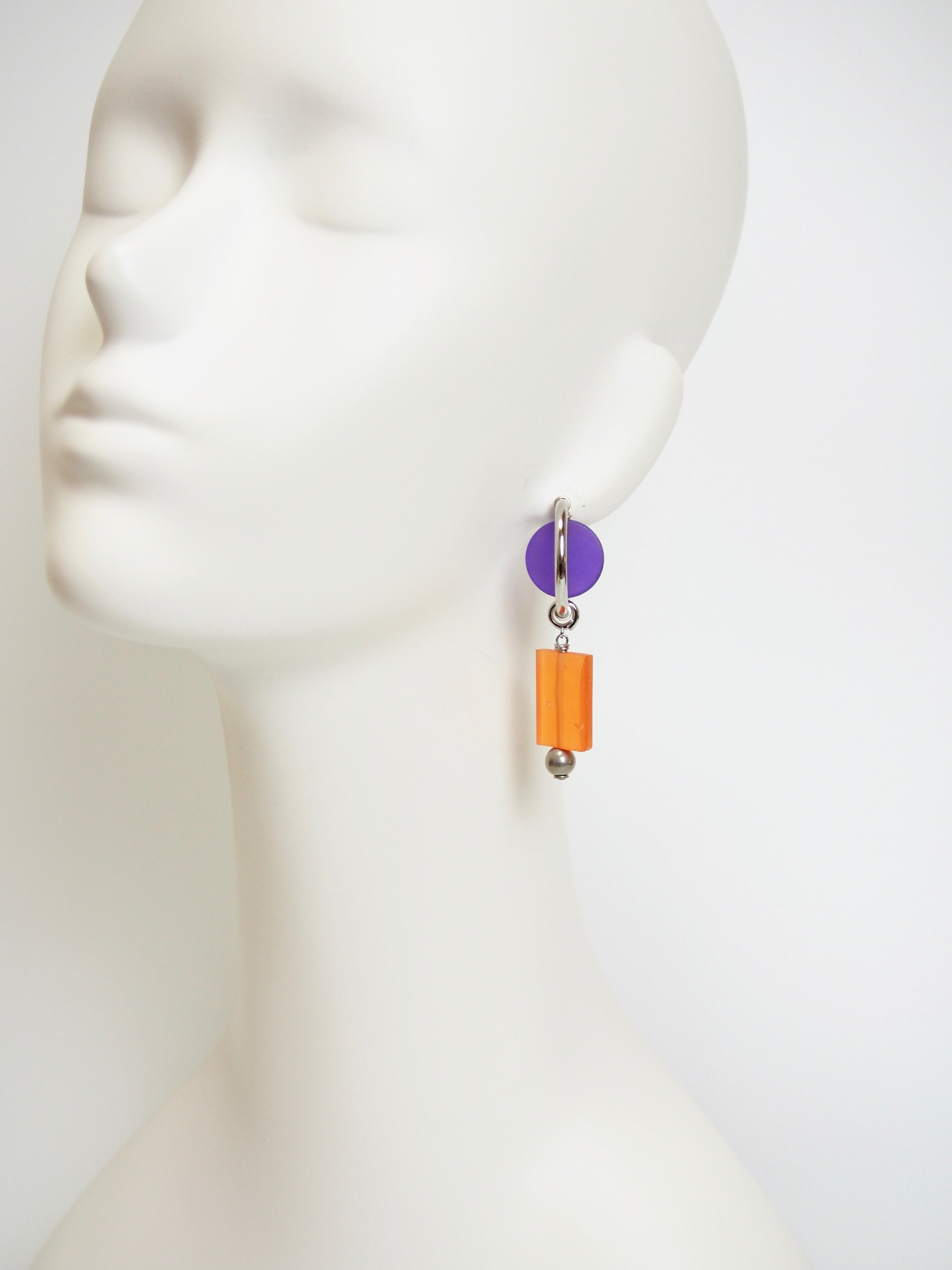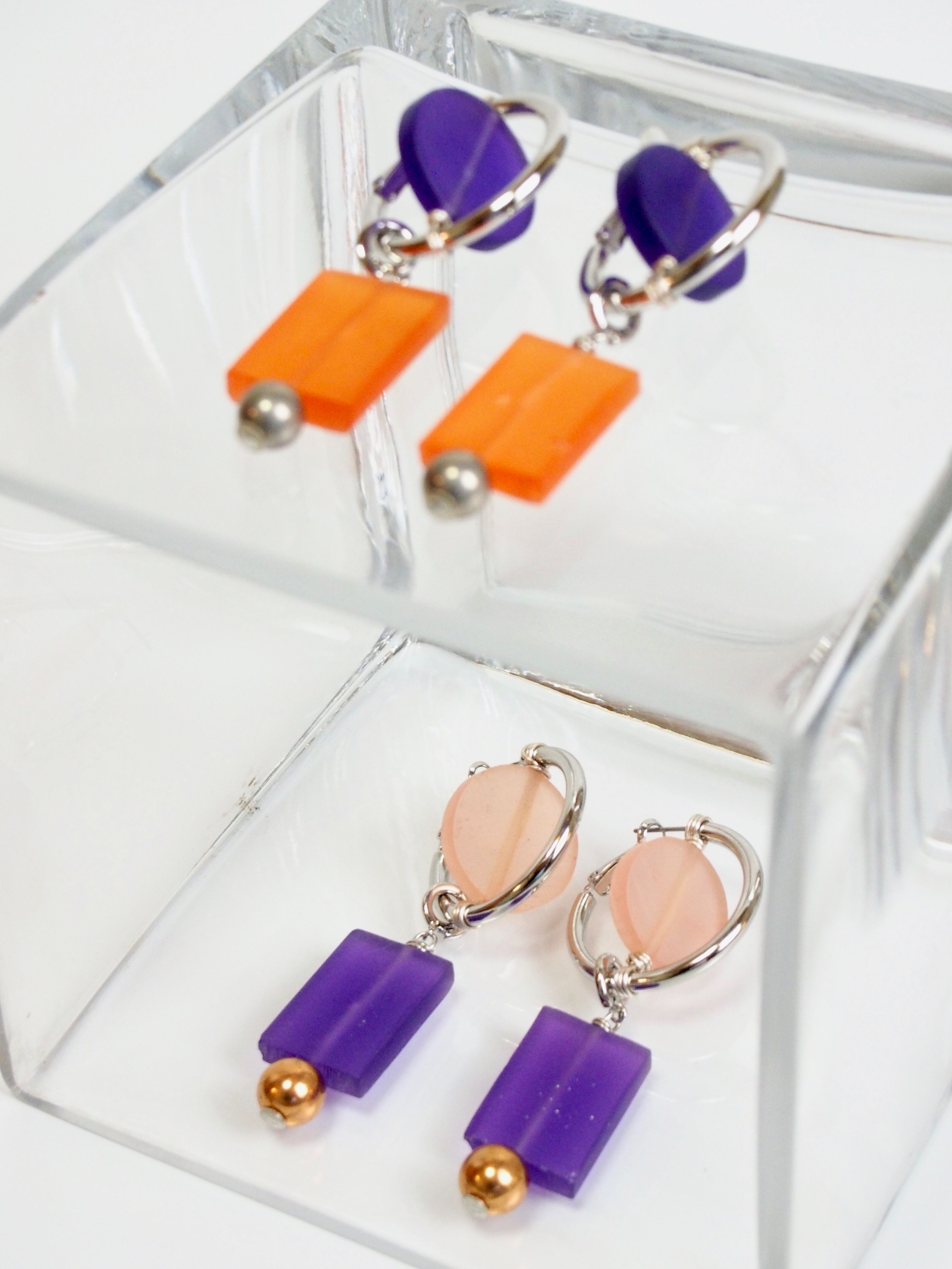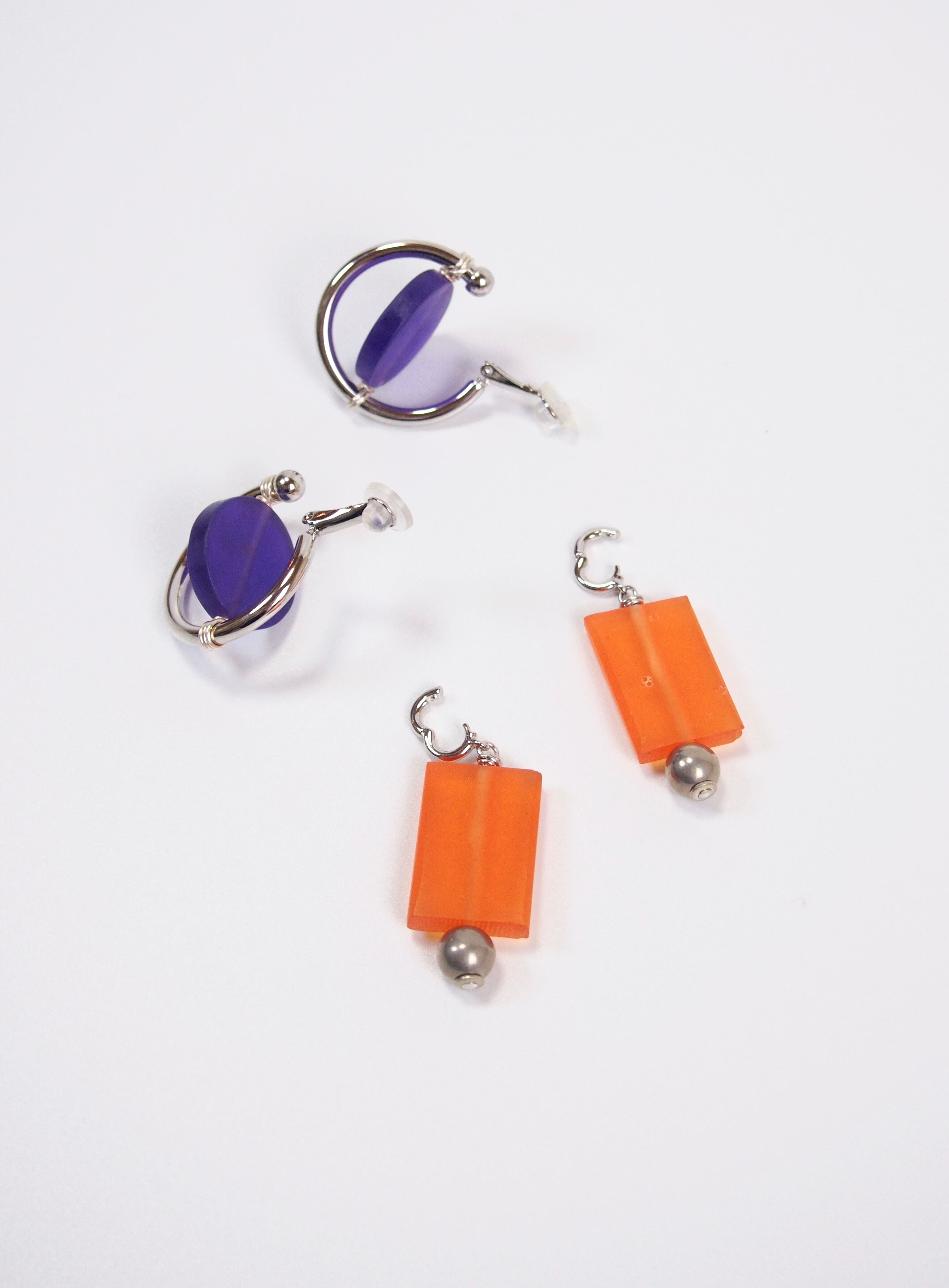 ベルギーで出会ったヴィンテージのアクリルパーツを使用し、メタルパーツと組み合わせることで、近未来的でいてどこか懐かしくもある、POPな雰囲気に仕上げました。