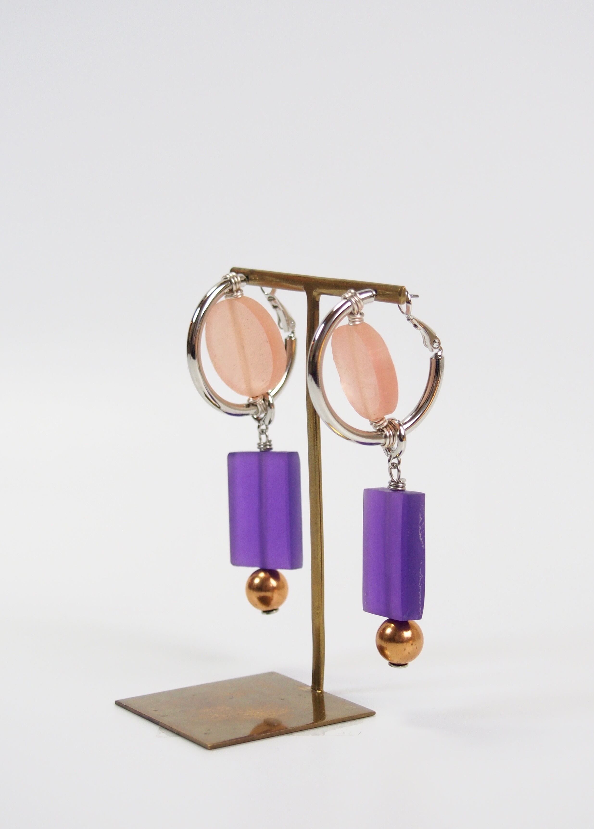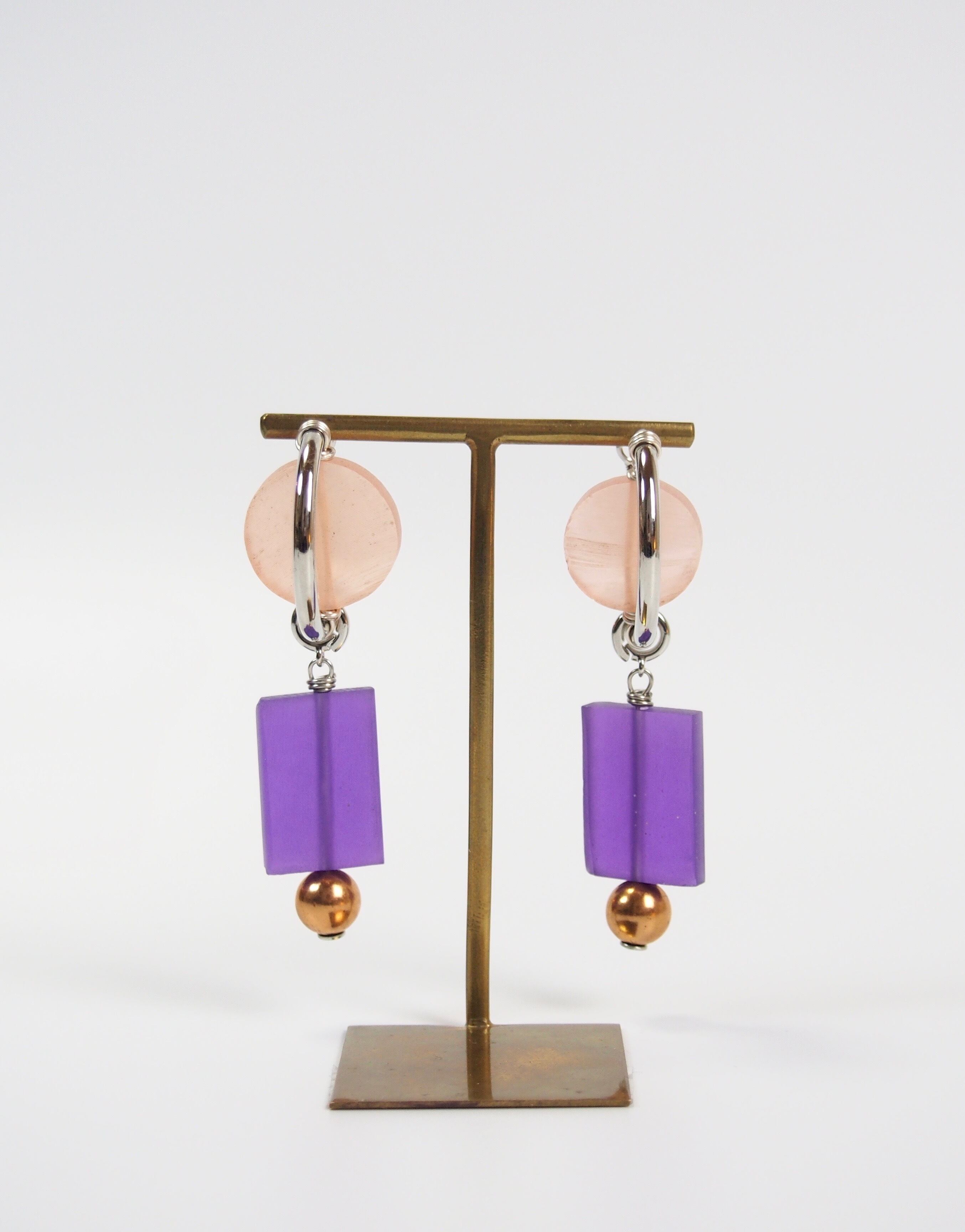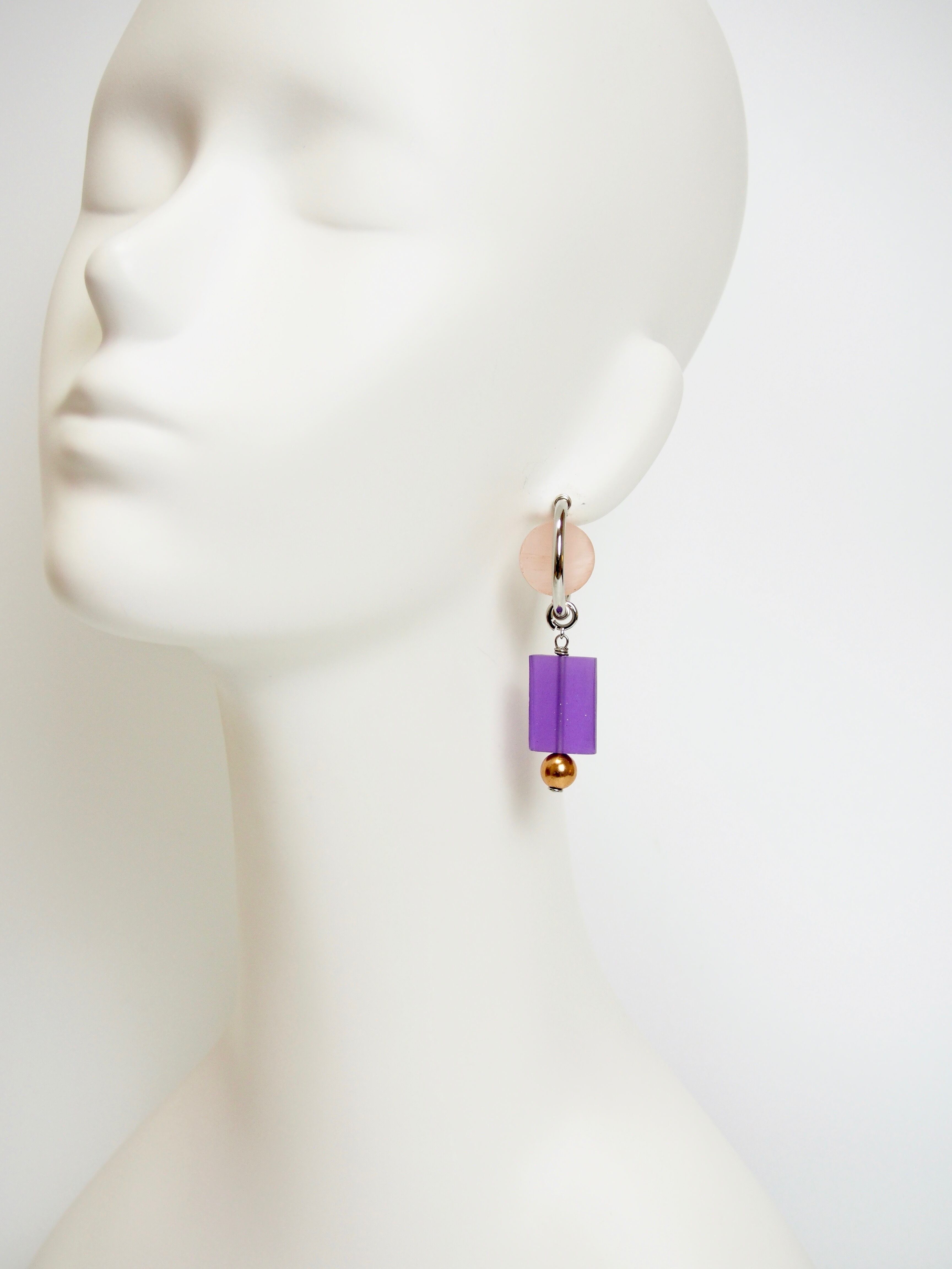 ベルギーで出会ったヴィンテージのアクリルパーツを使用し、メタルパーツと組み合わせることで、近未来的でいてどこか懐かしくもある、POPな雰囲気に仕上げました。