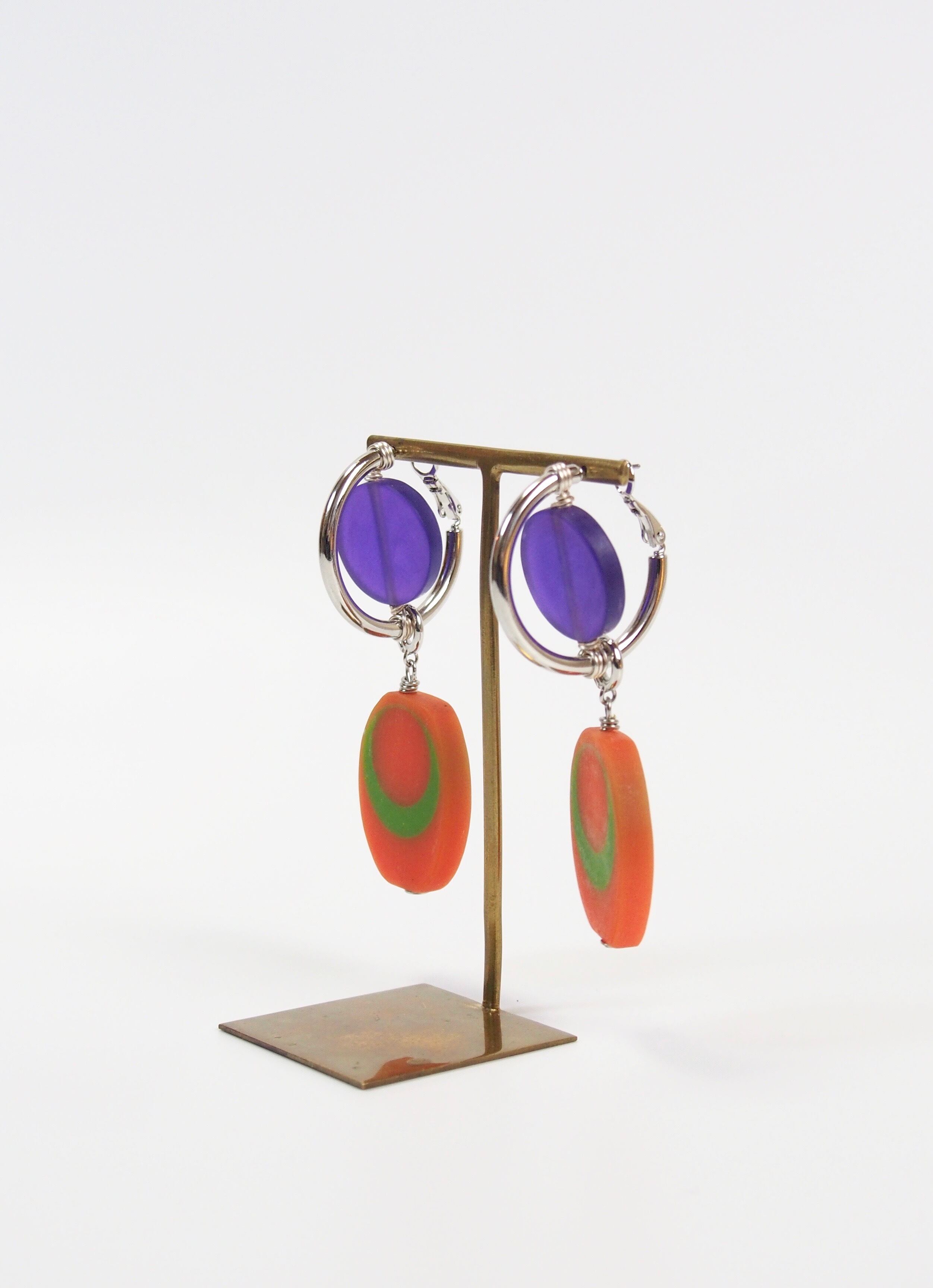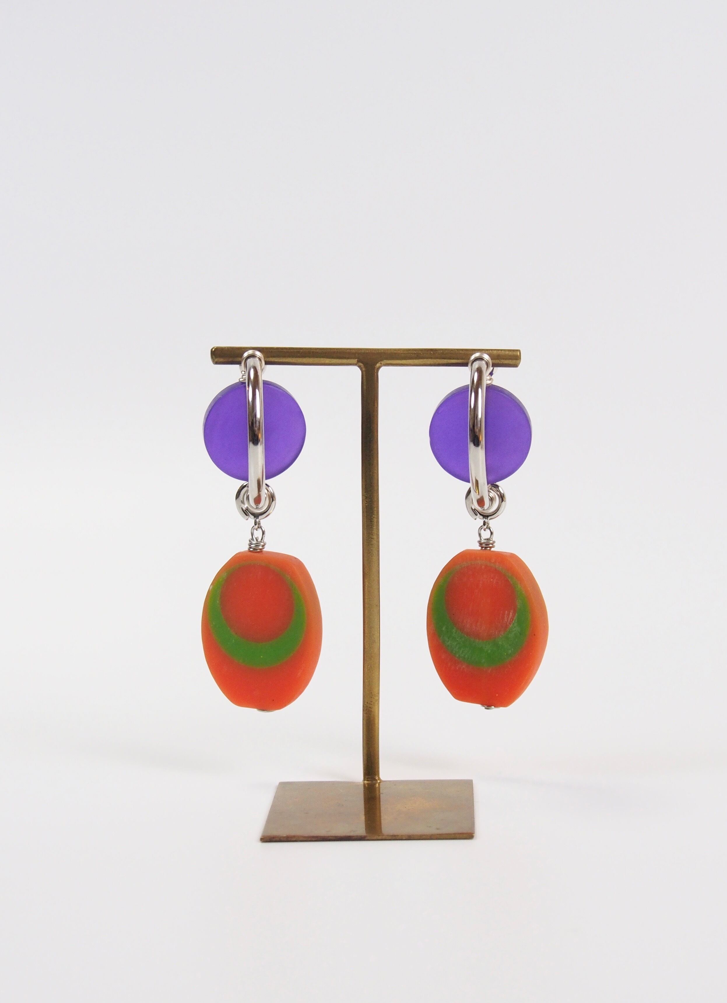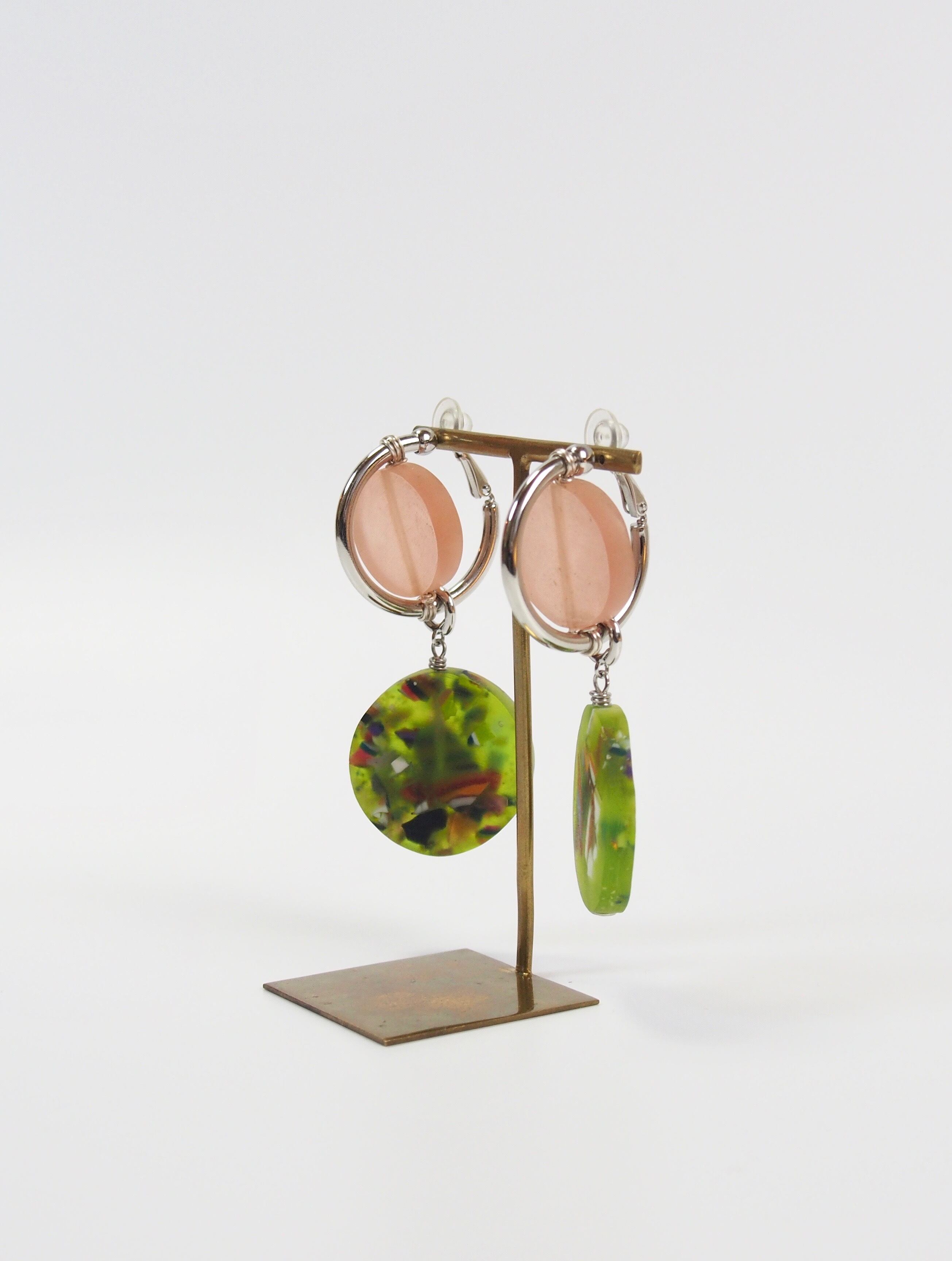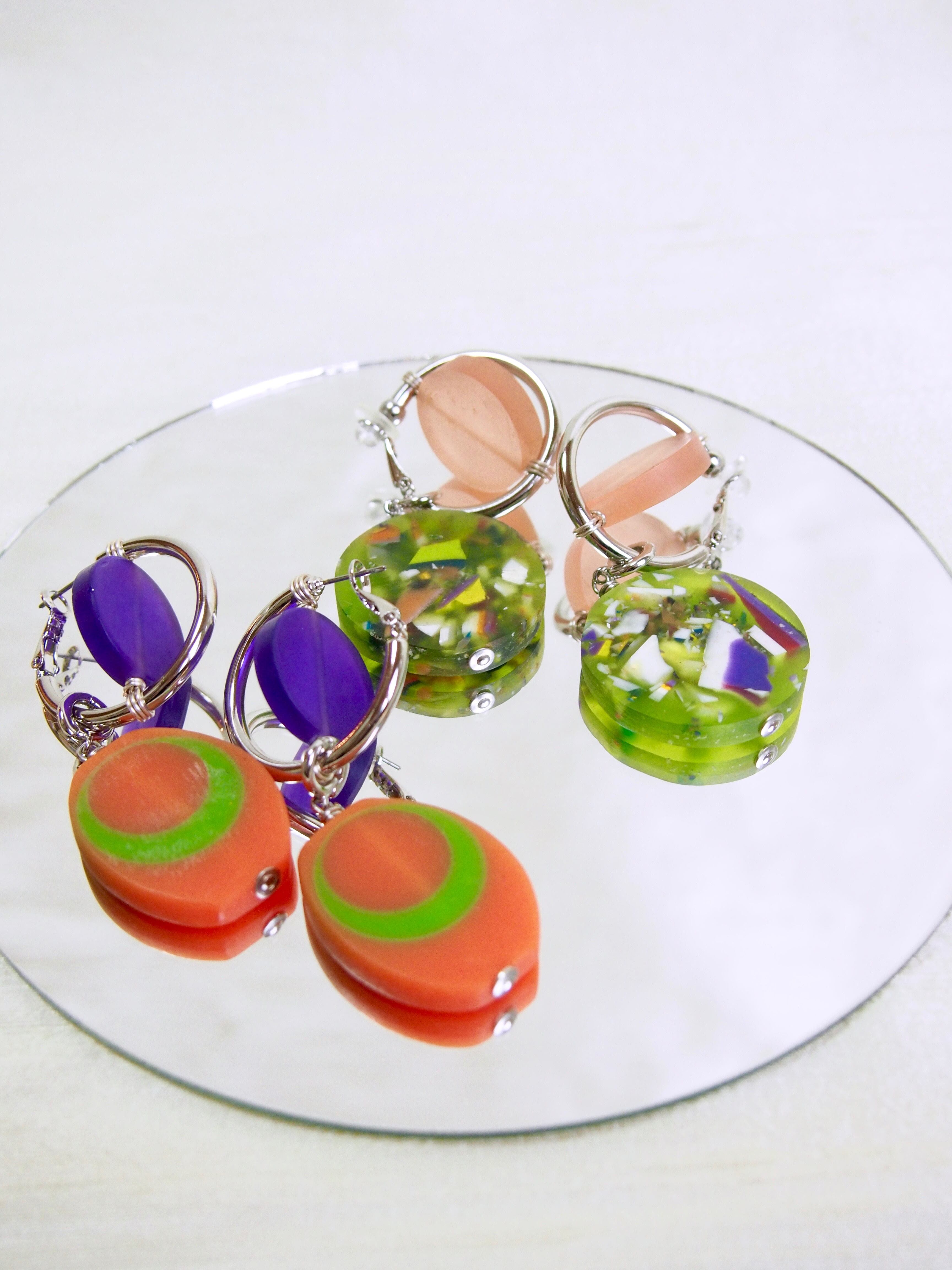 ベルギーで出会ったヴィンテージのアクリルパーツを使用し、メタルパーツと組み合わせることで、近未来的でいてどこか懐かしくもある、POPな雰囲気に仕上げました。