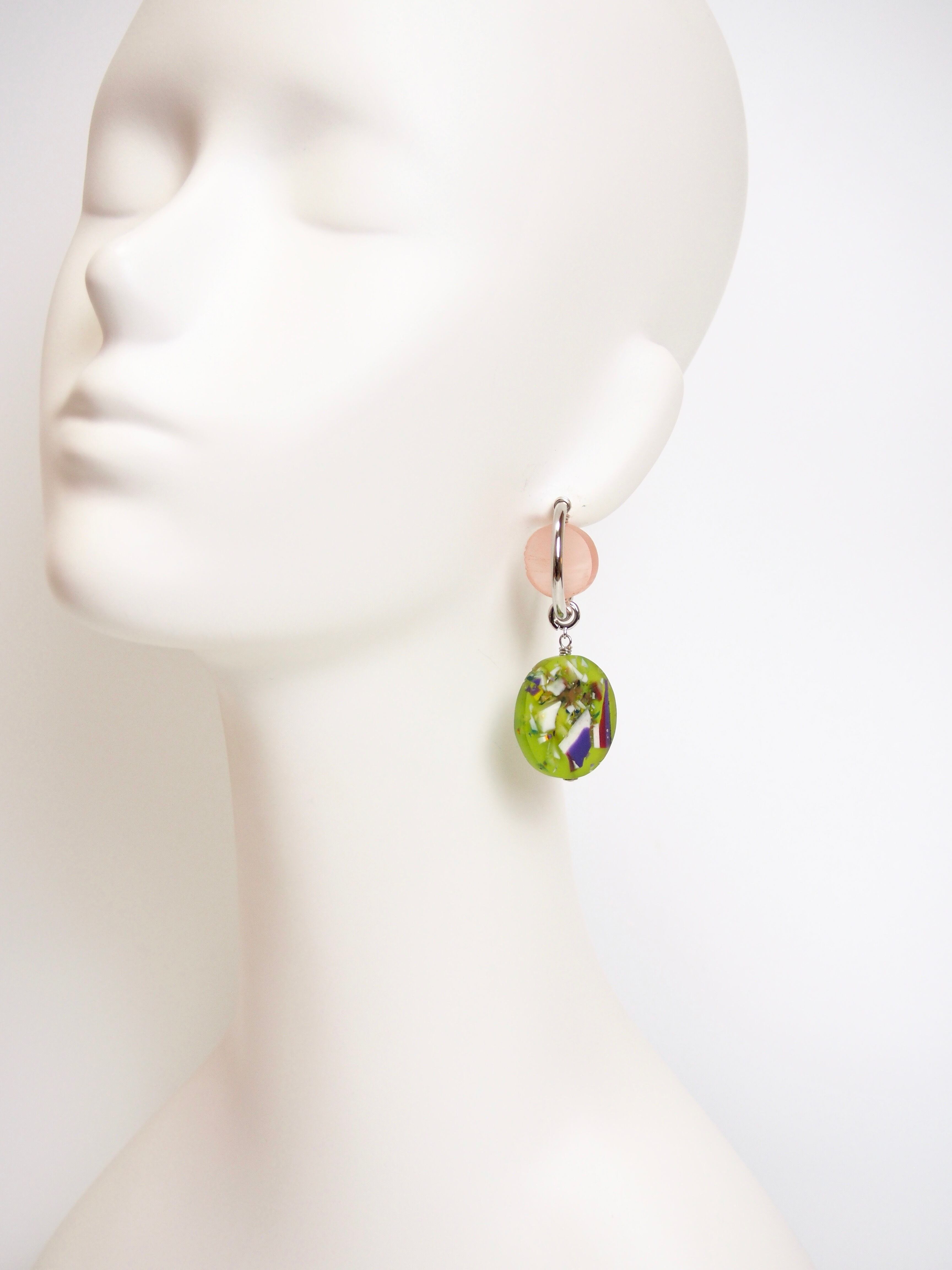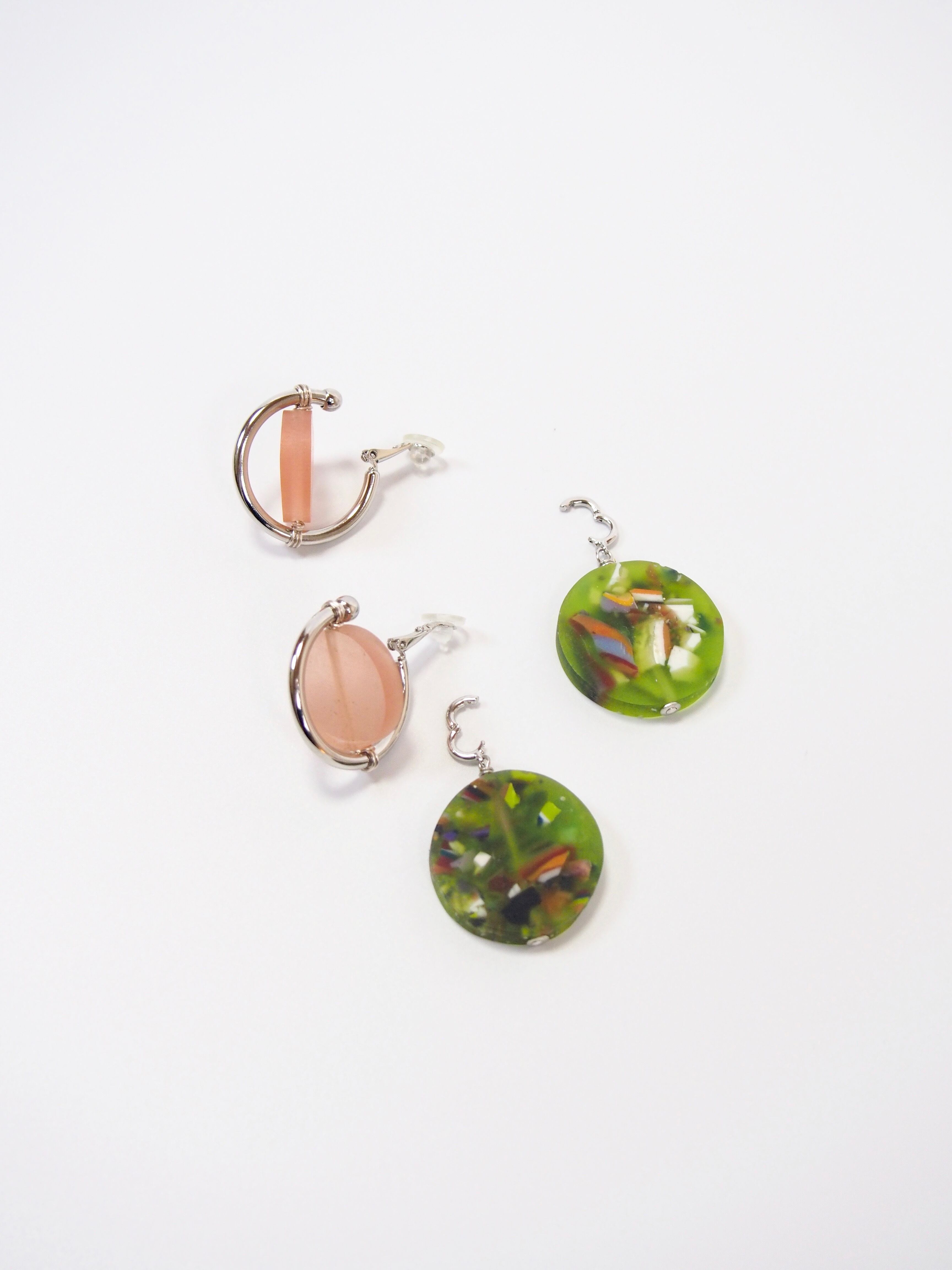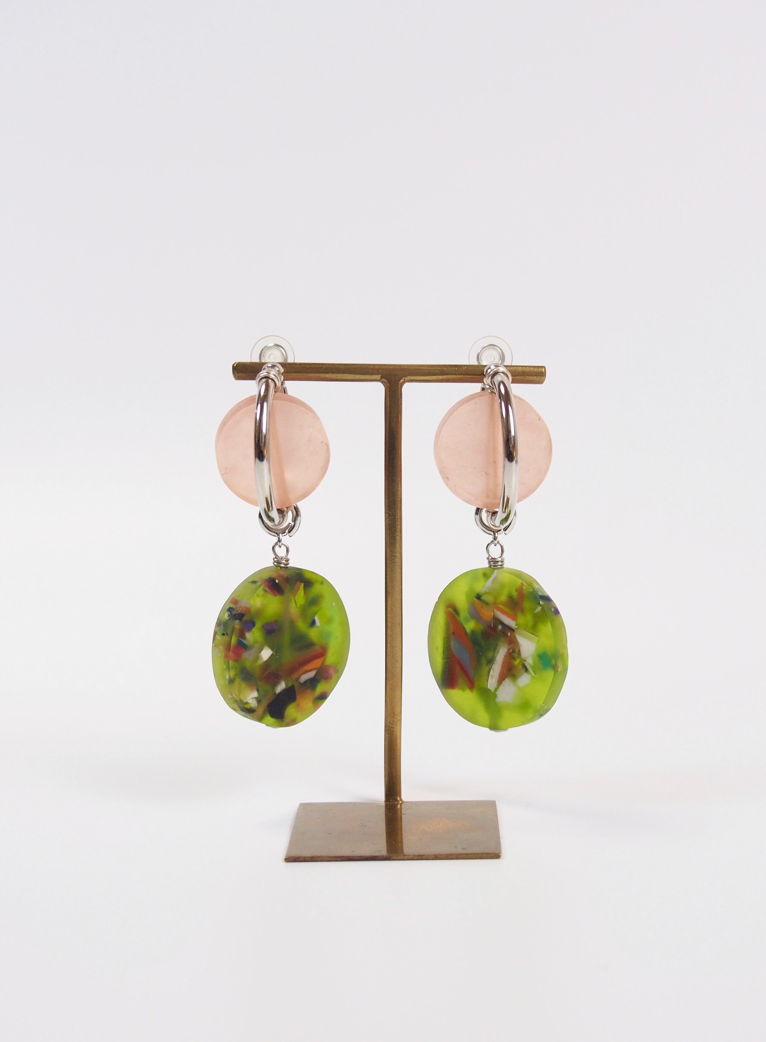 軽い素材感と、磨りガラスのような独特の優しい色味のピアス/クリップです。
