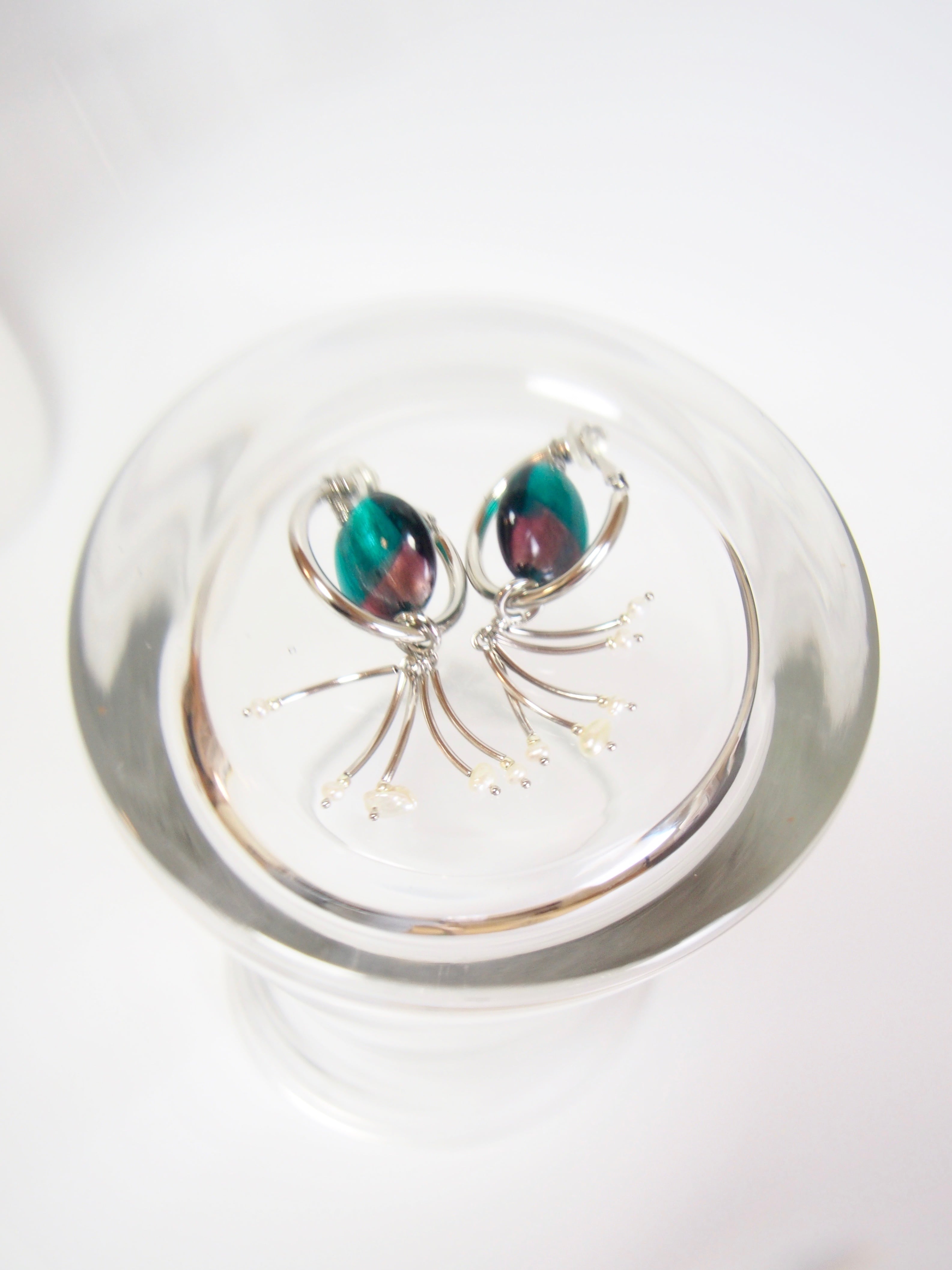 光を反射する玉虫色のメタリックなガラスビーズと、