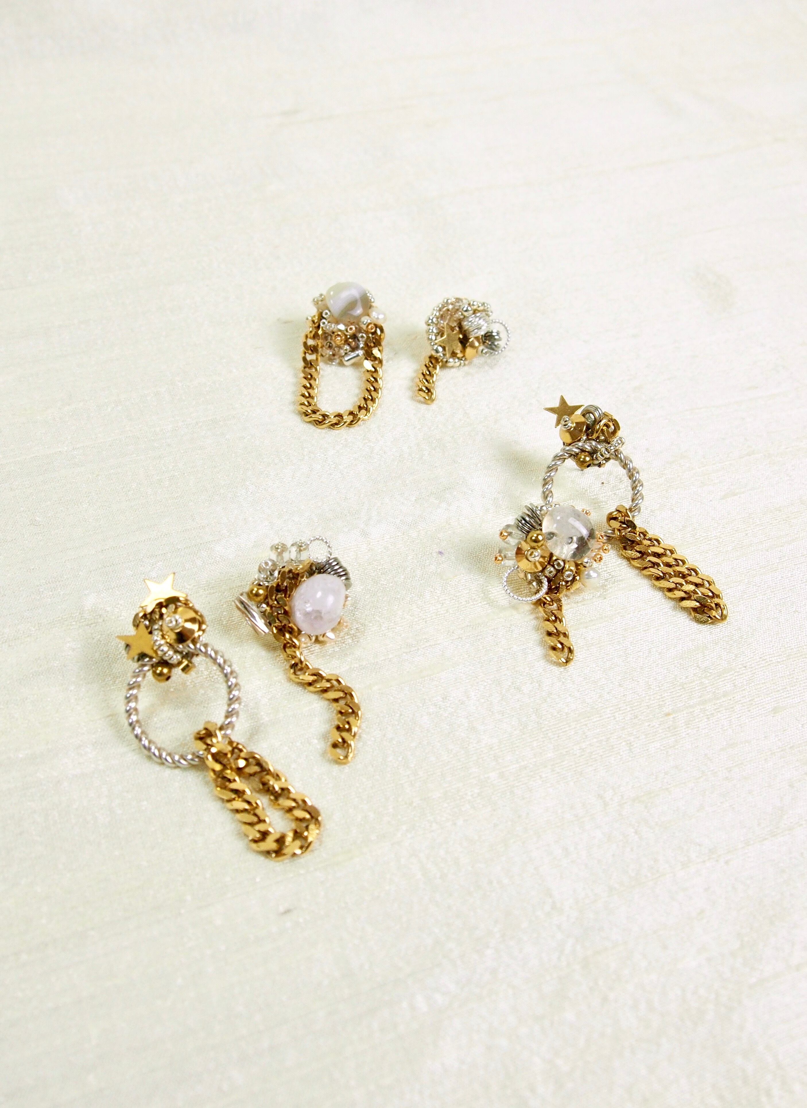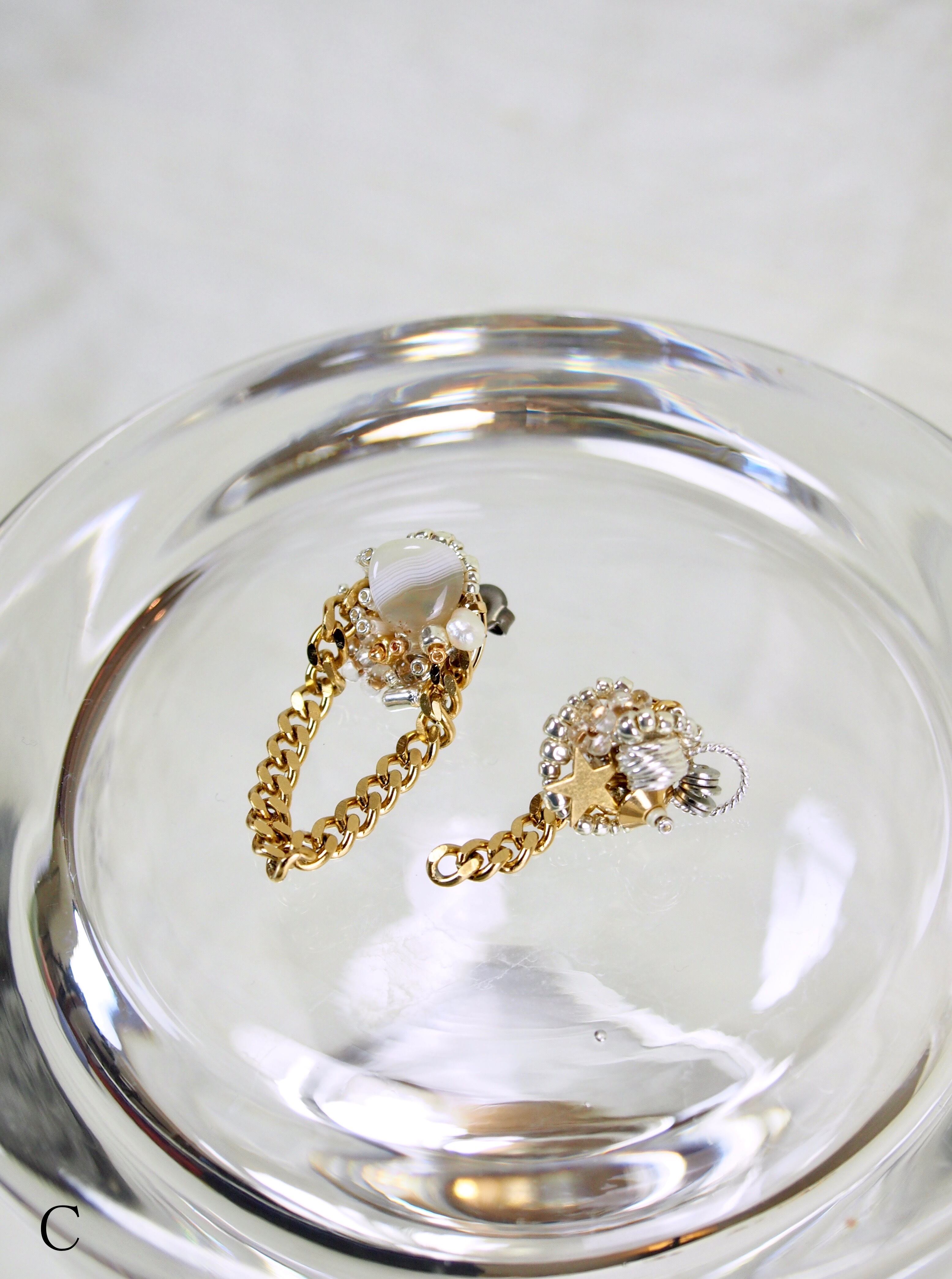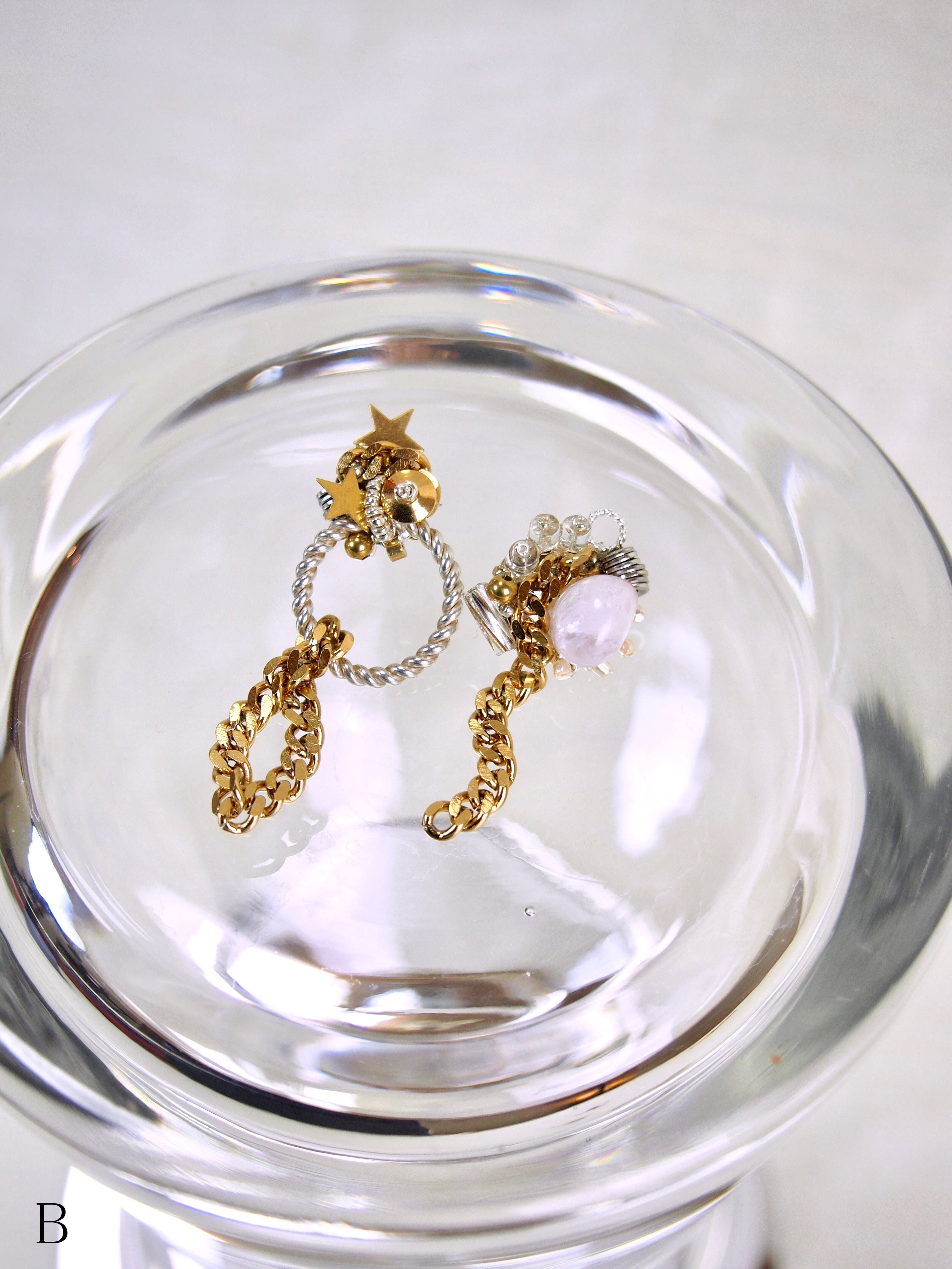 ゴールドとシルバーのパーツを混ぜてコラージュする事で、