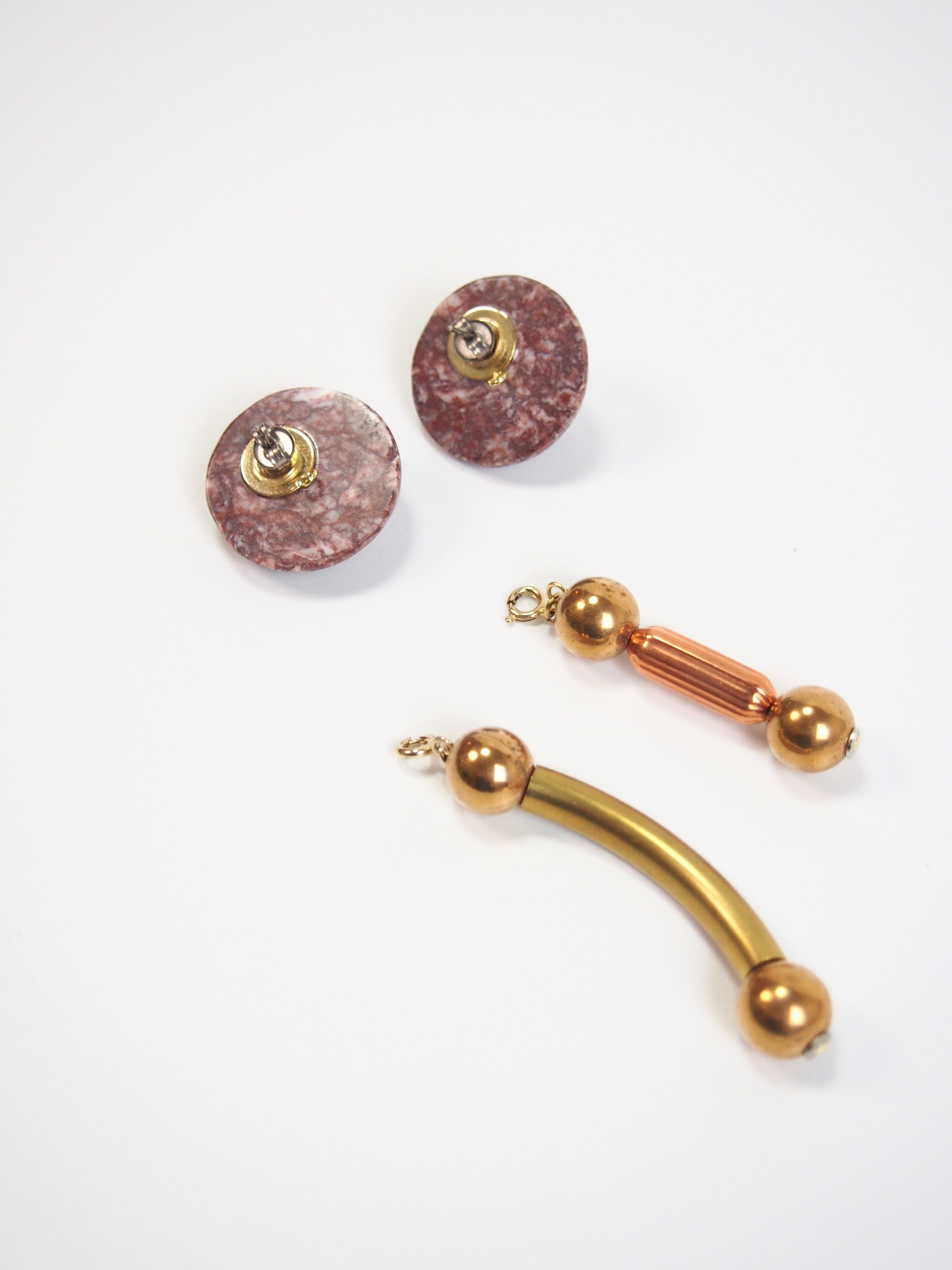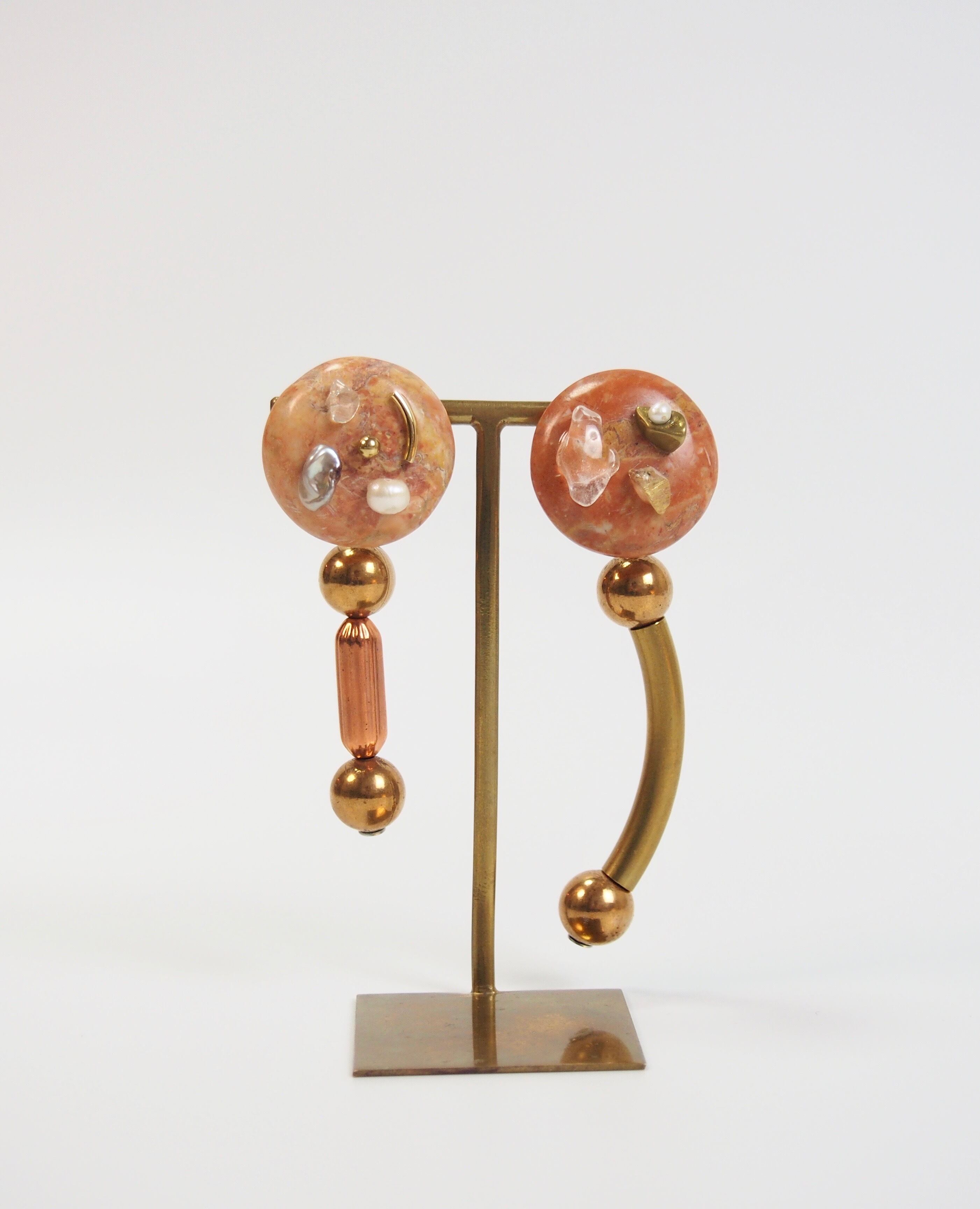 それぞれに表情を持った、ナチュラルなストーンカボションにメタルパーツや天然石、