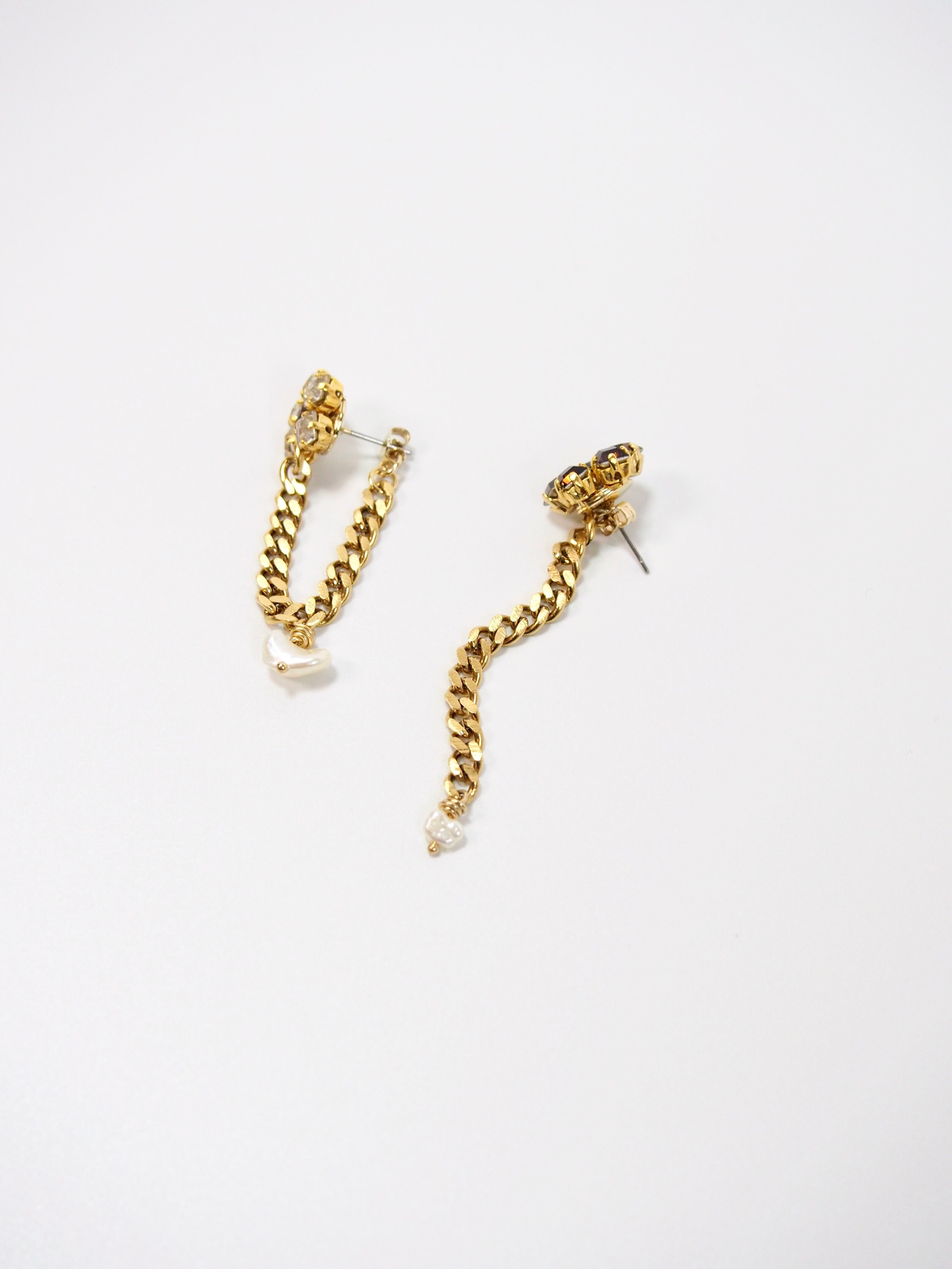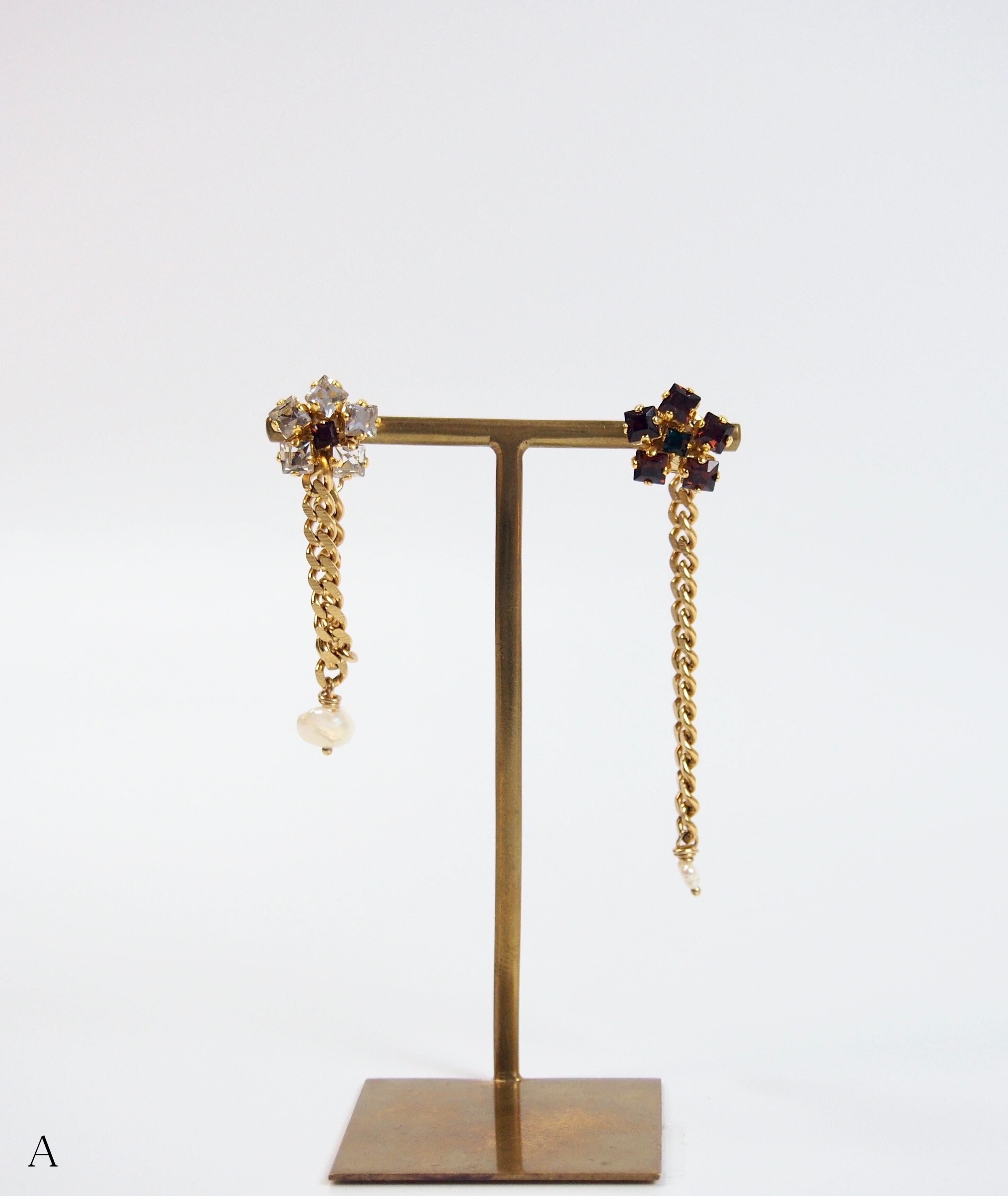ステンレスチェーン(PVDコーティング/IP加工)・ラインストーン・淡水バロックパール・アクリル樹脂