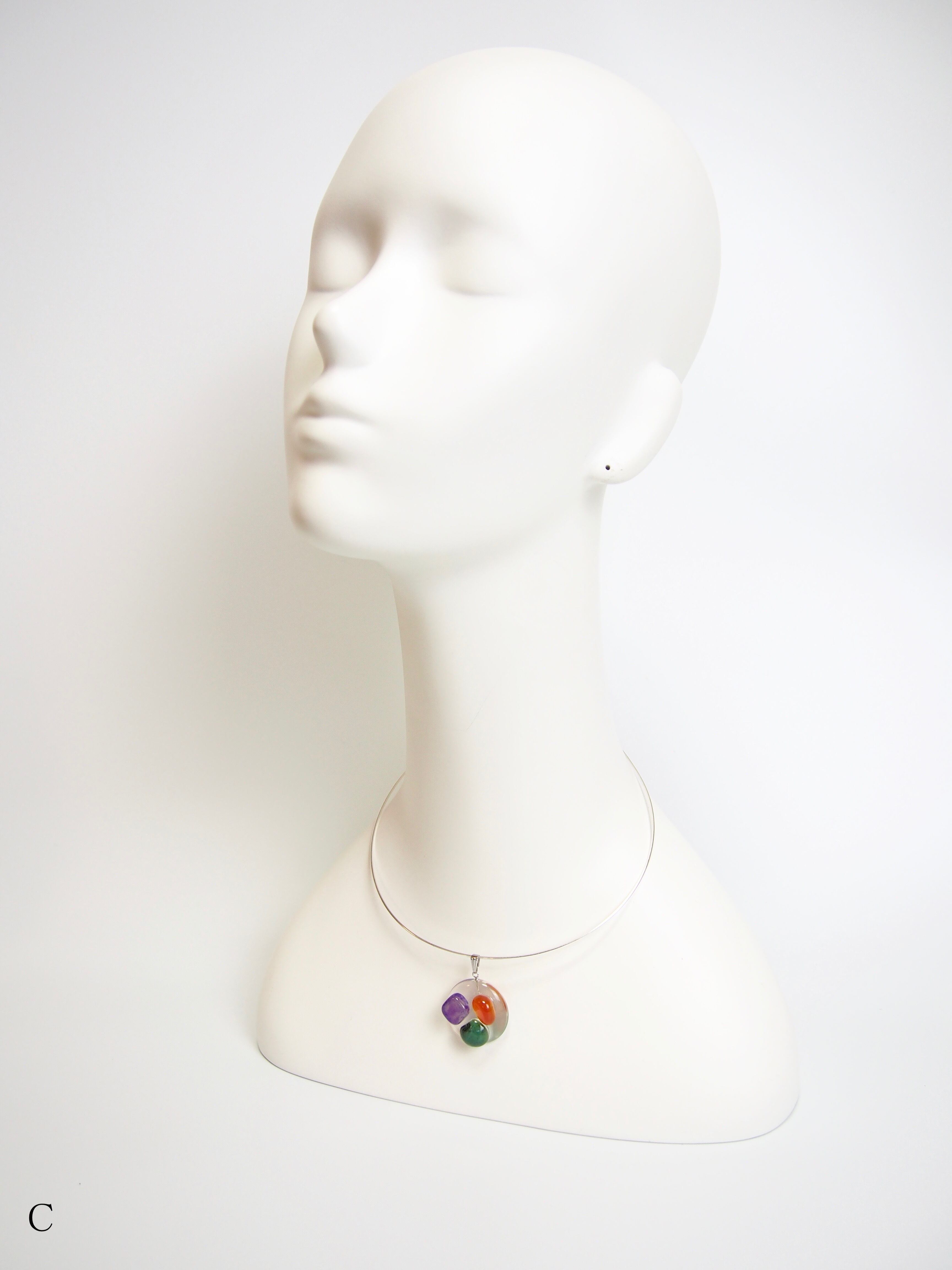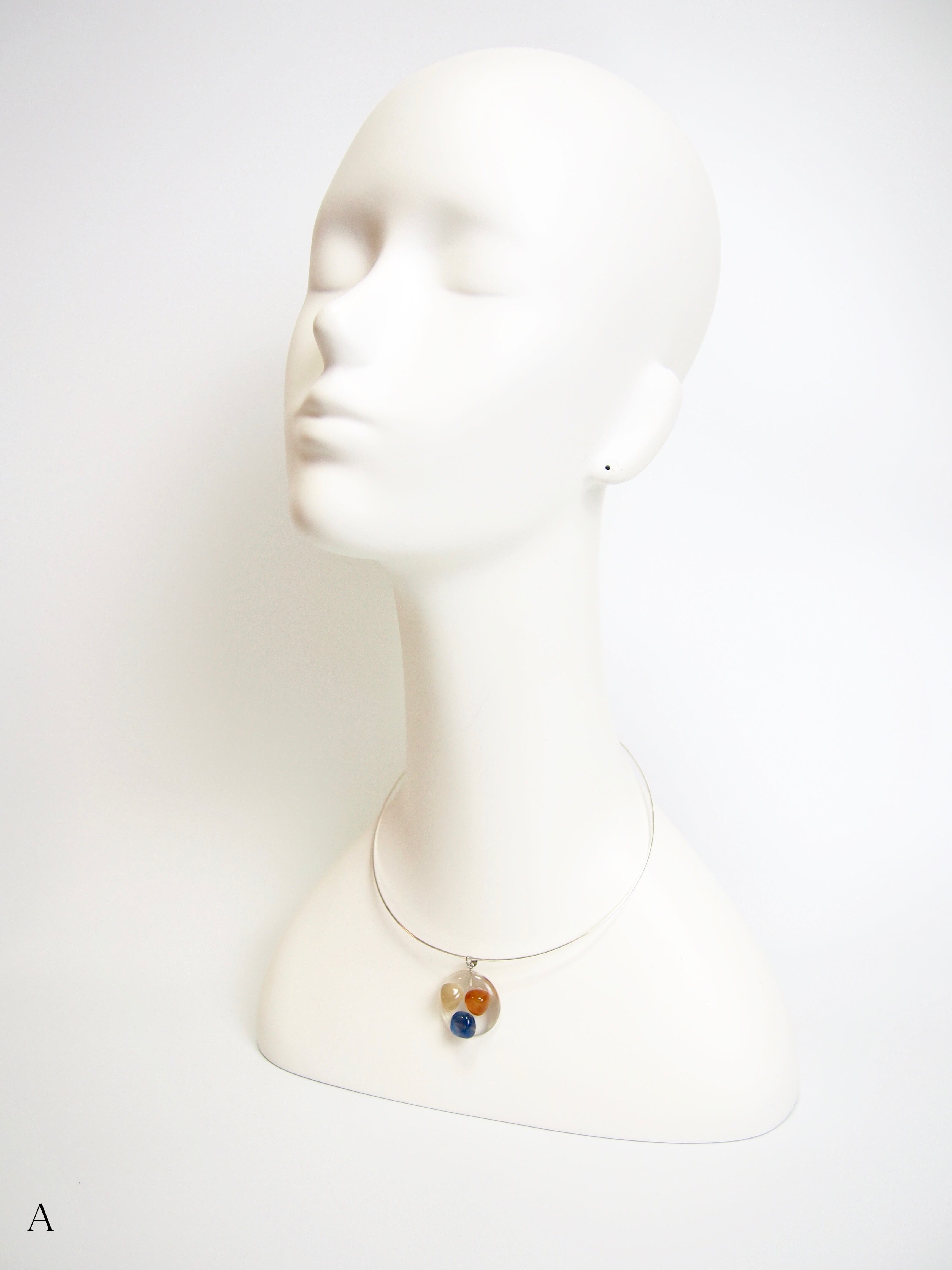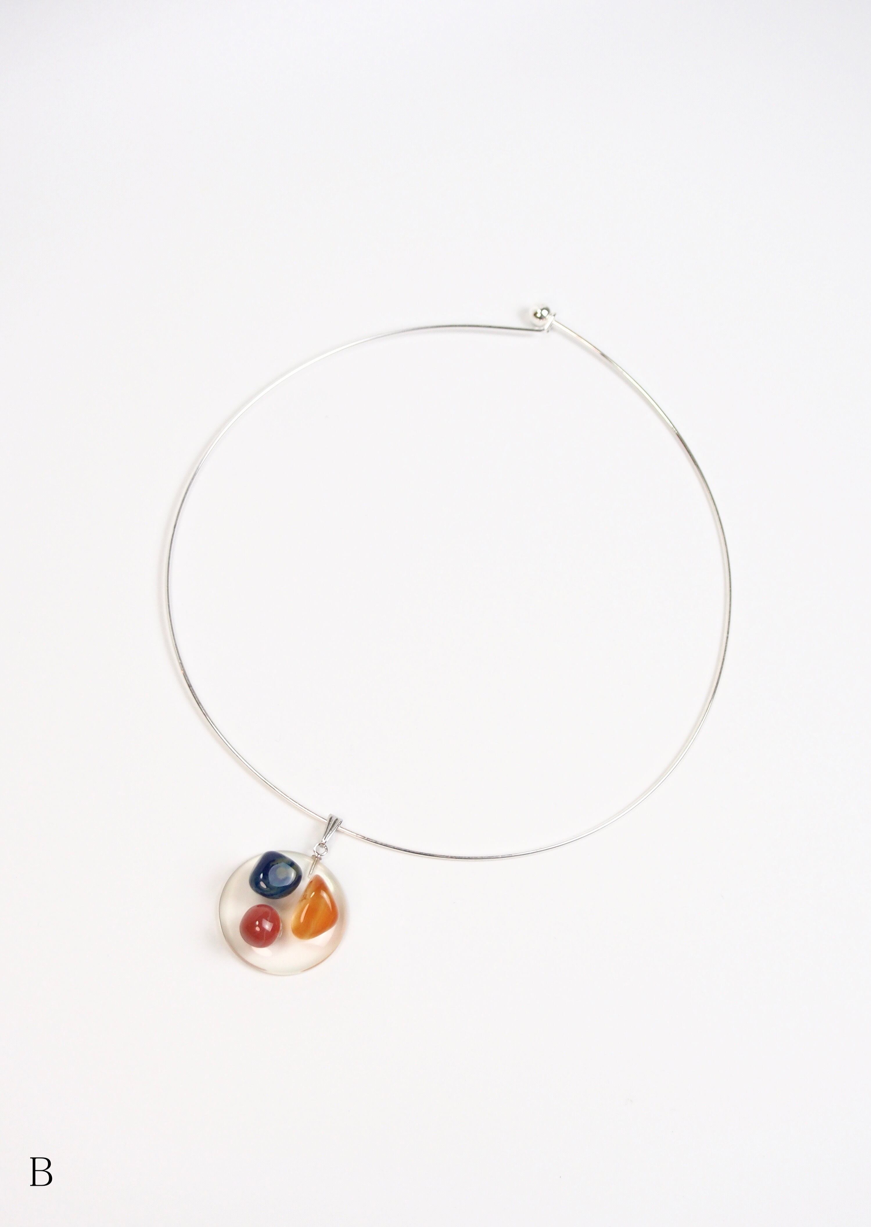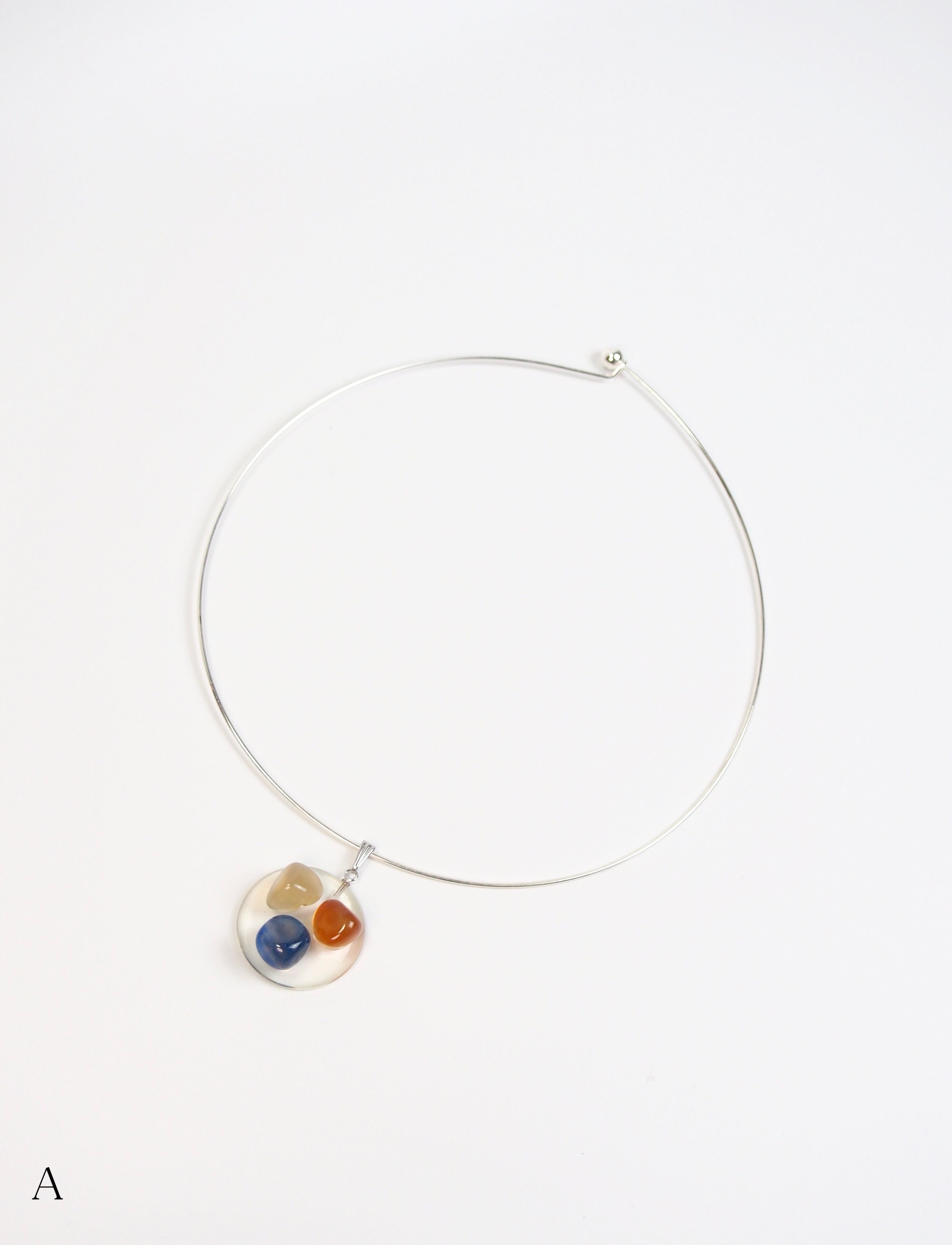 silver925製ワイヤーネックレス・アクリルパーツ(from België )・染めアゲート