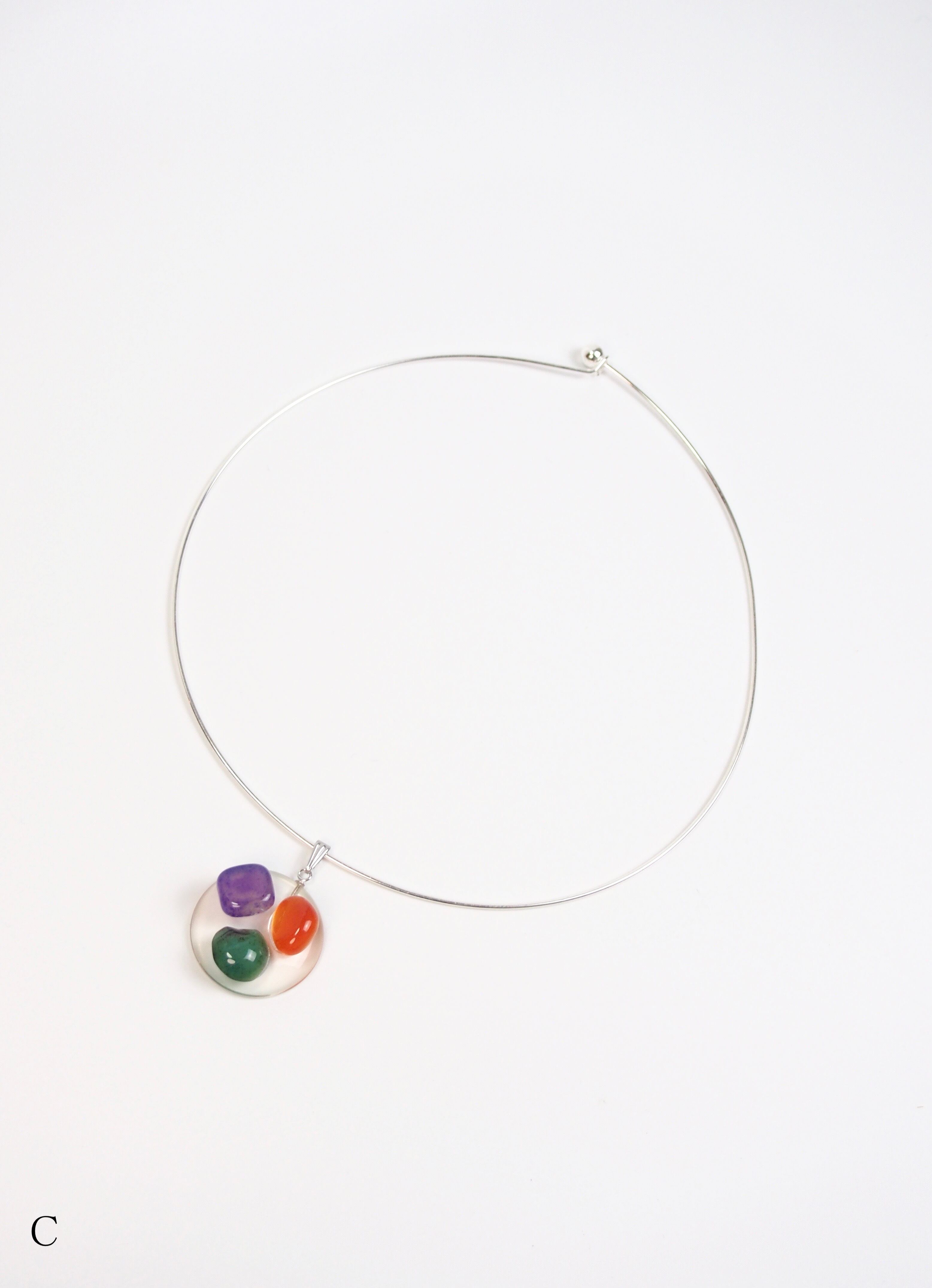 カラーアゲートをセッティングしたシンプルで大胆なデザインのワイヤーチョーカーです。