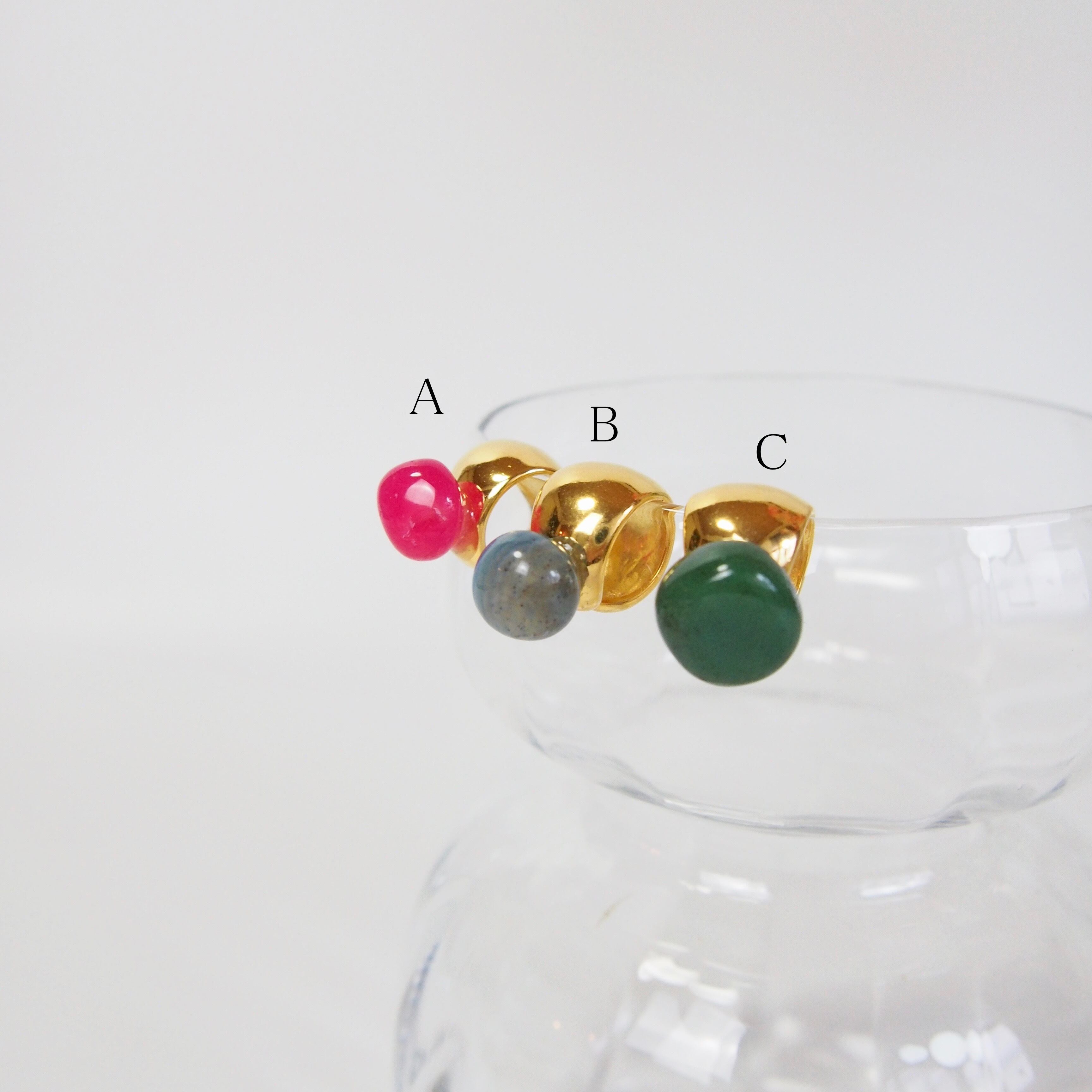 カラーアゲートをポイントに飾ったシンプルなデザインのイヤーカフです。