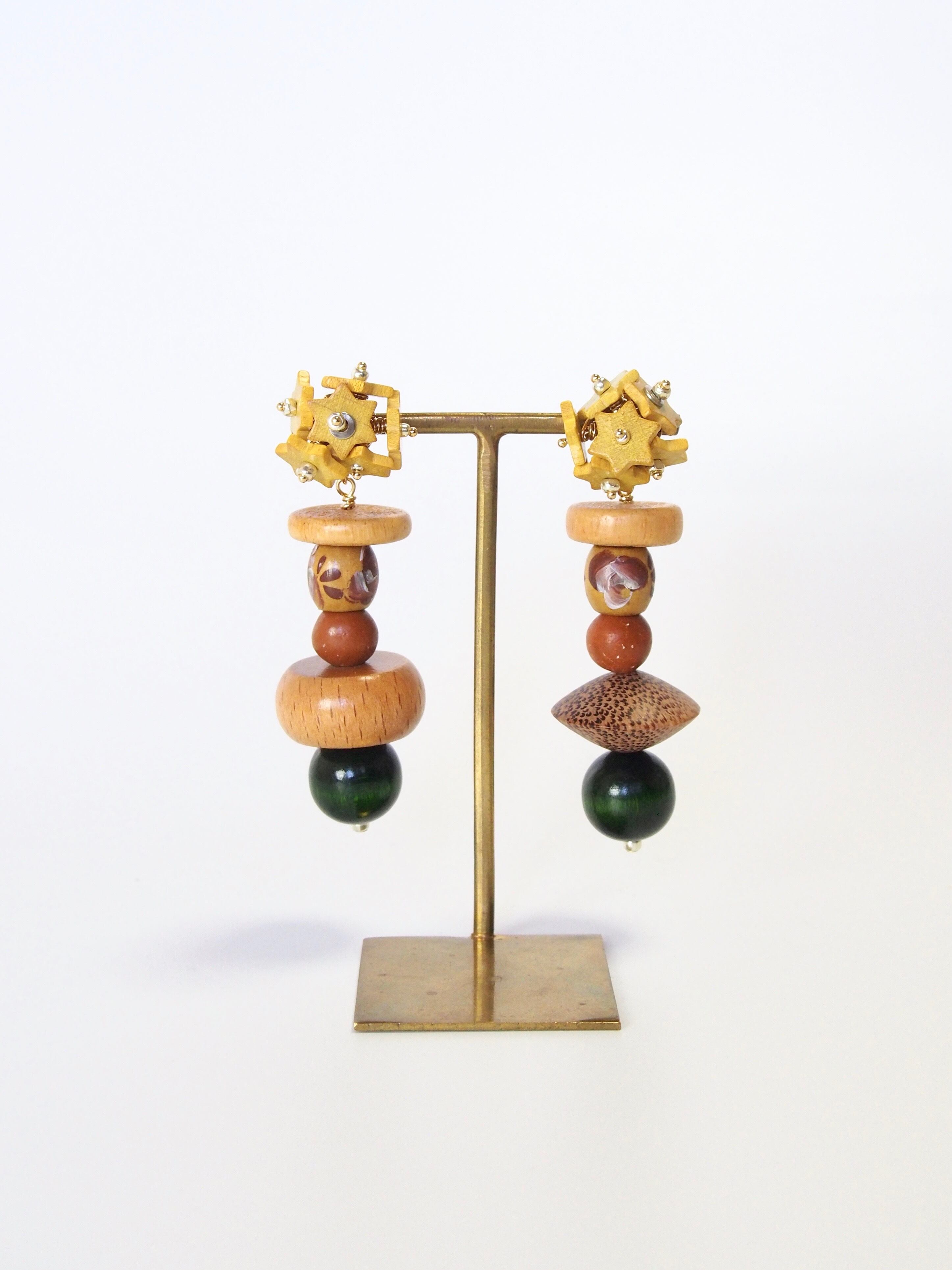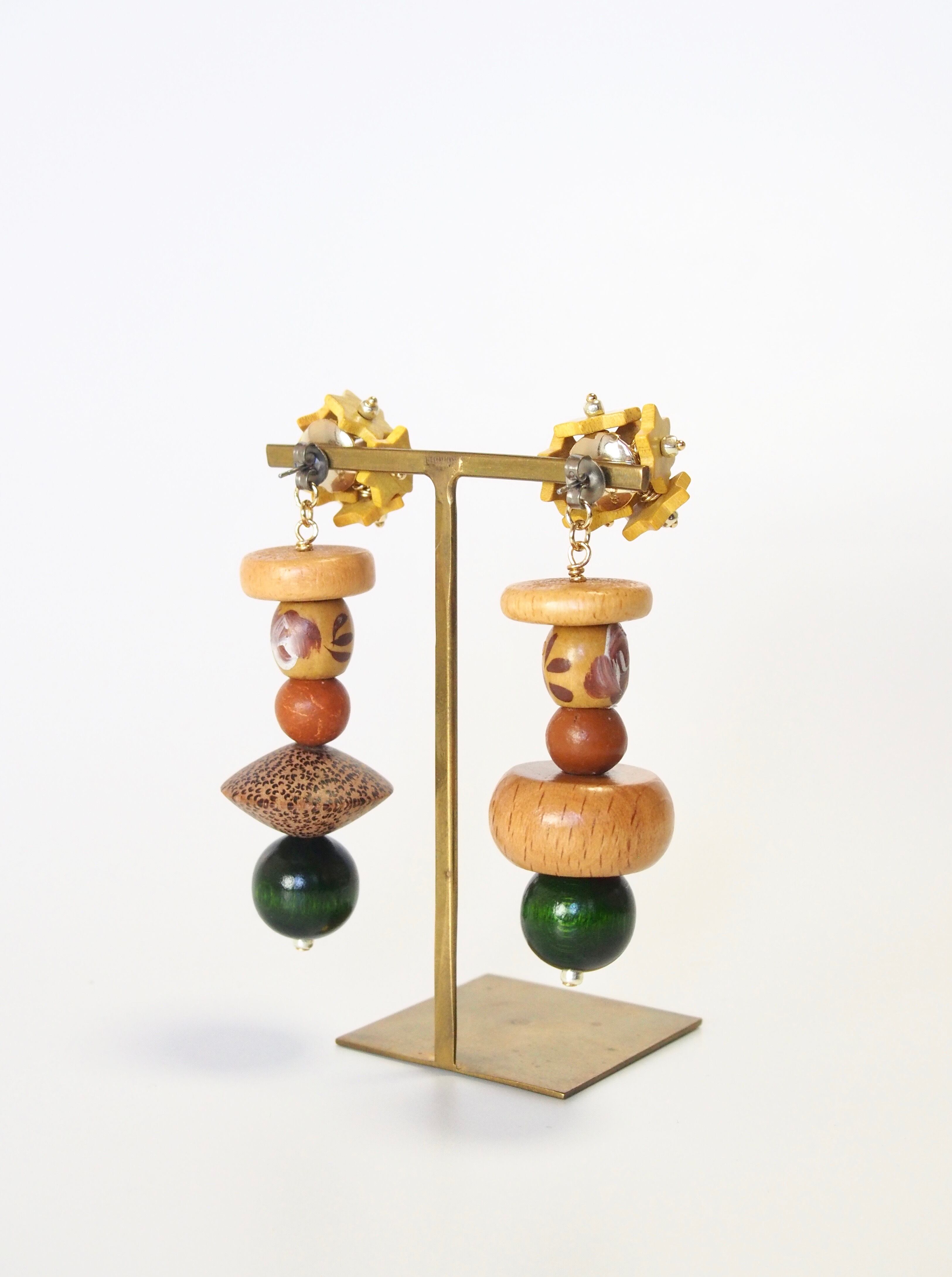 旅先で仕入れた手の込んだデザインのウッドビーズやアクリルパーツを