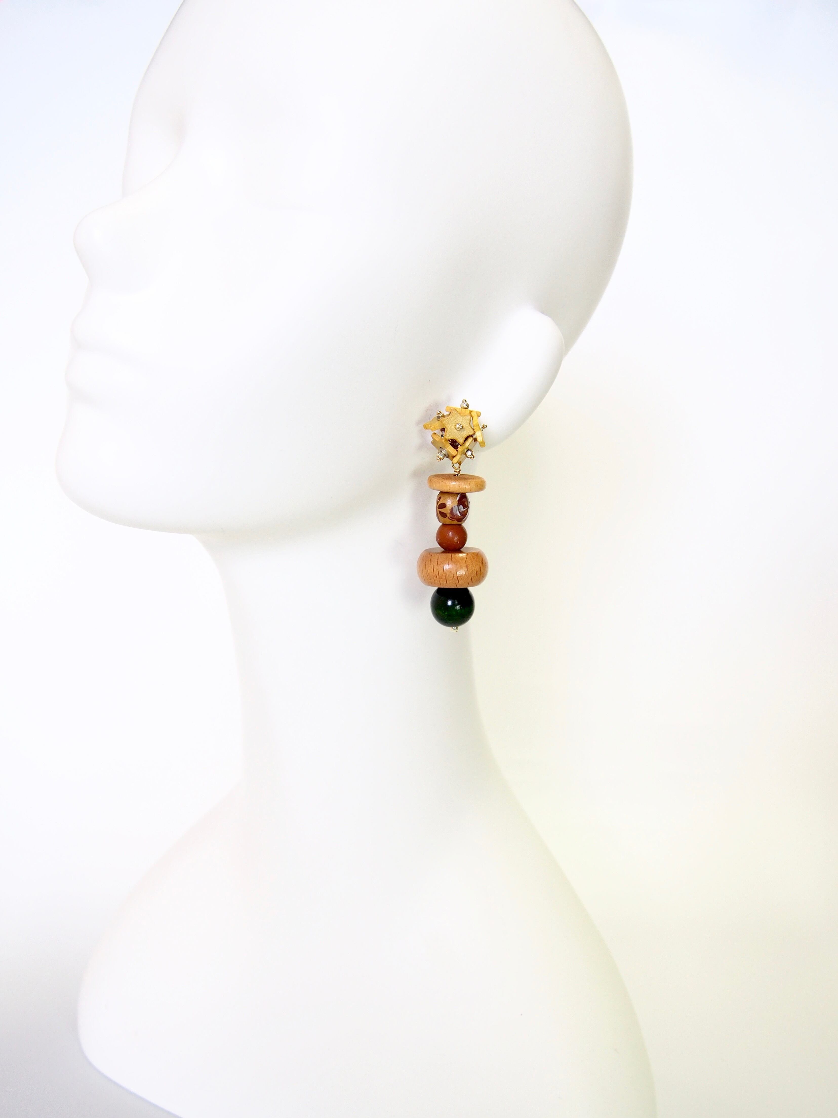 ウッドビーズのぬくもりはファッションに合わせやすく、