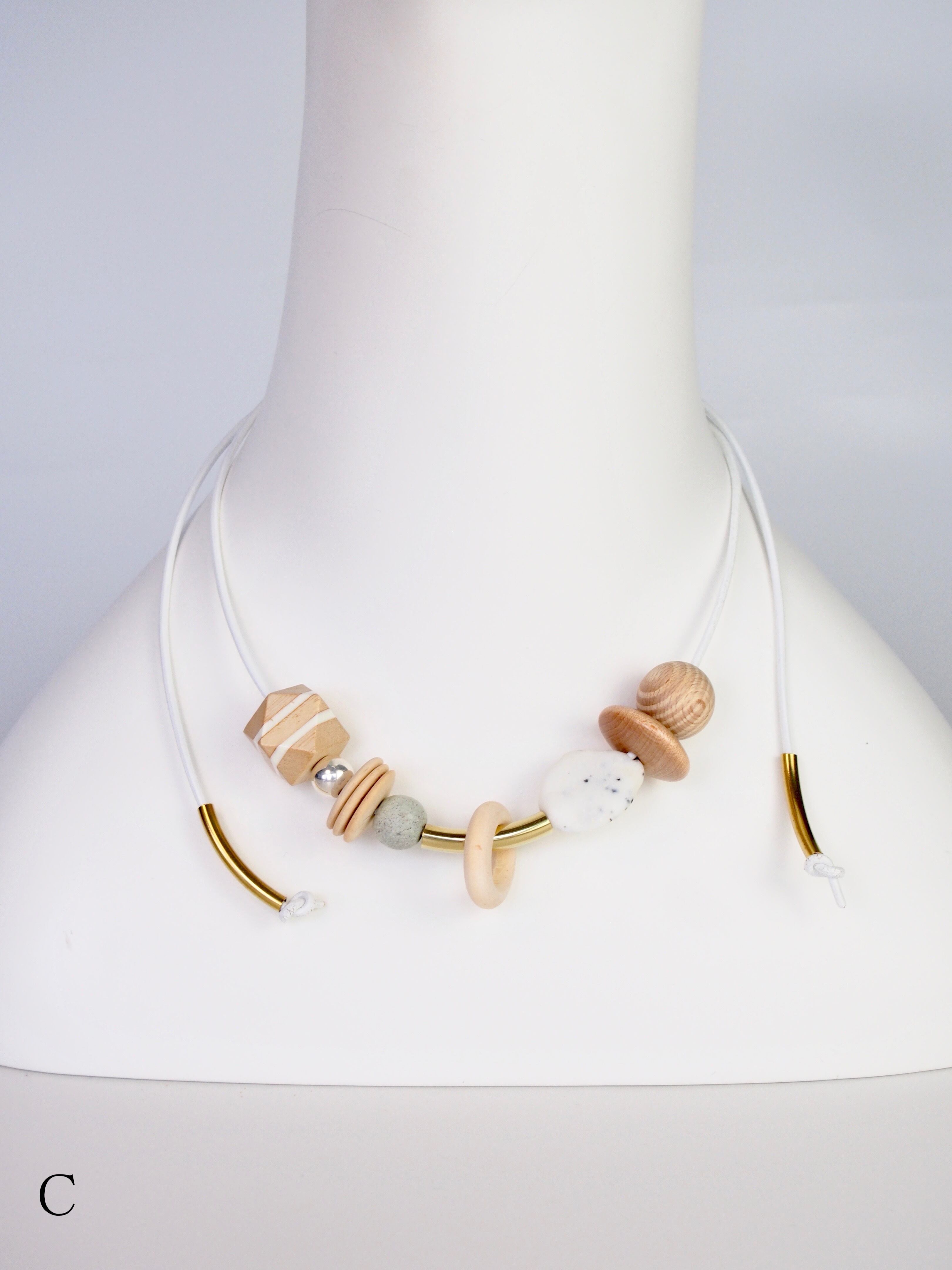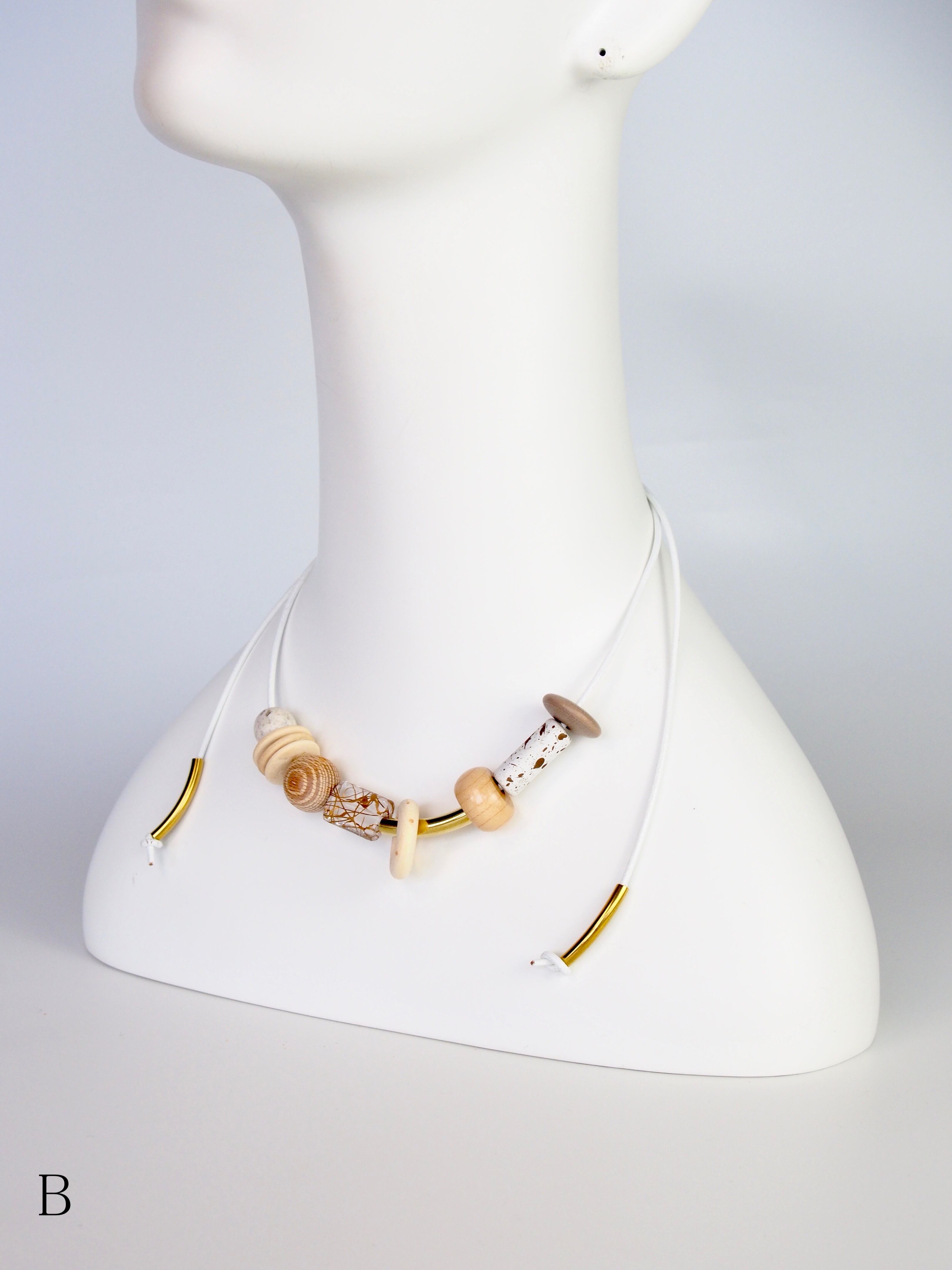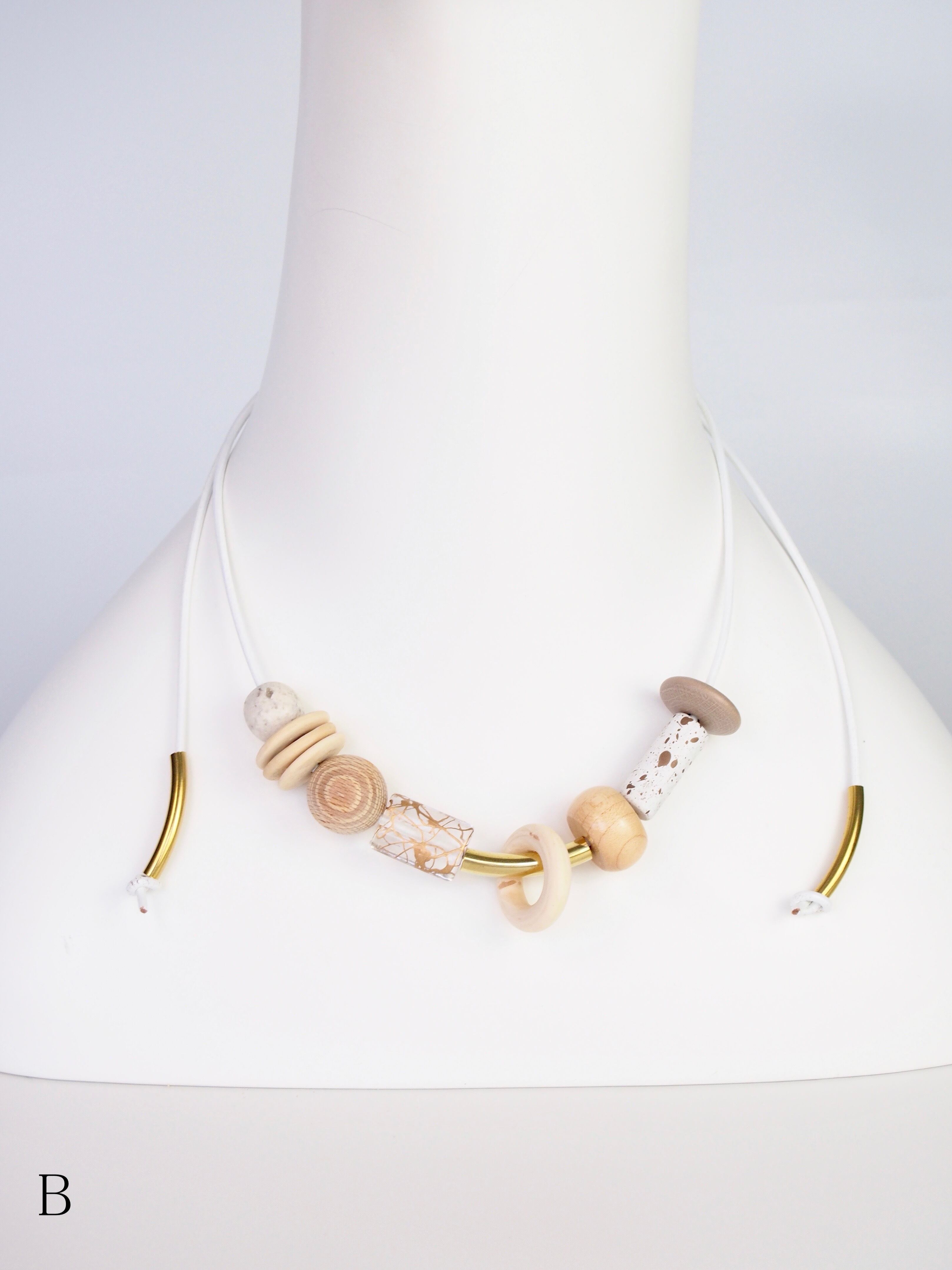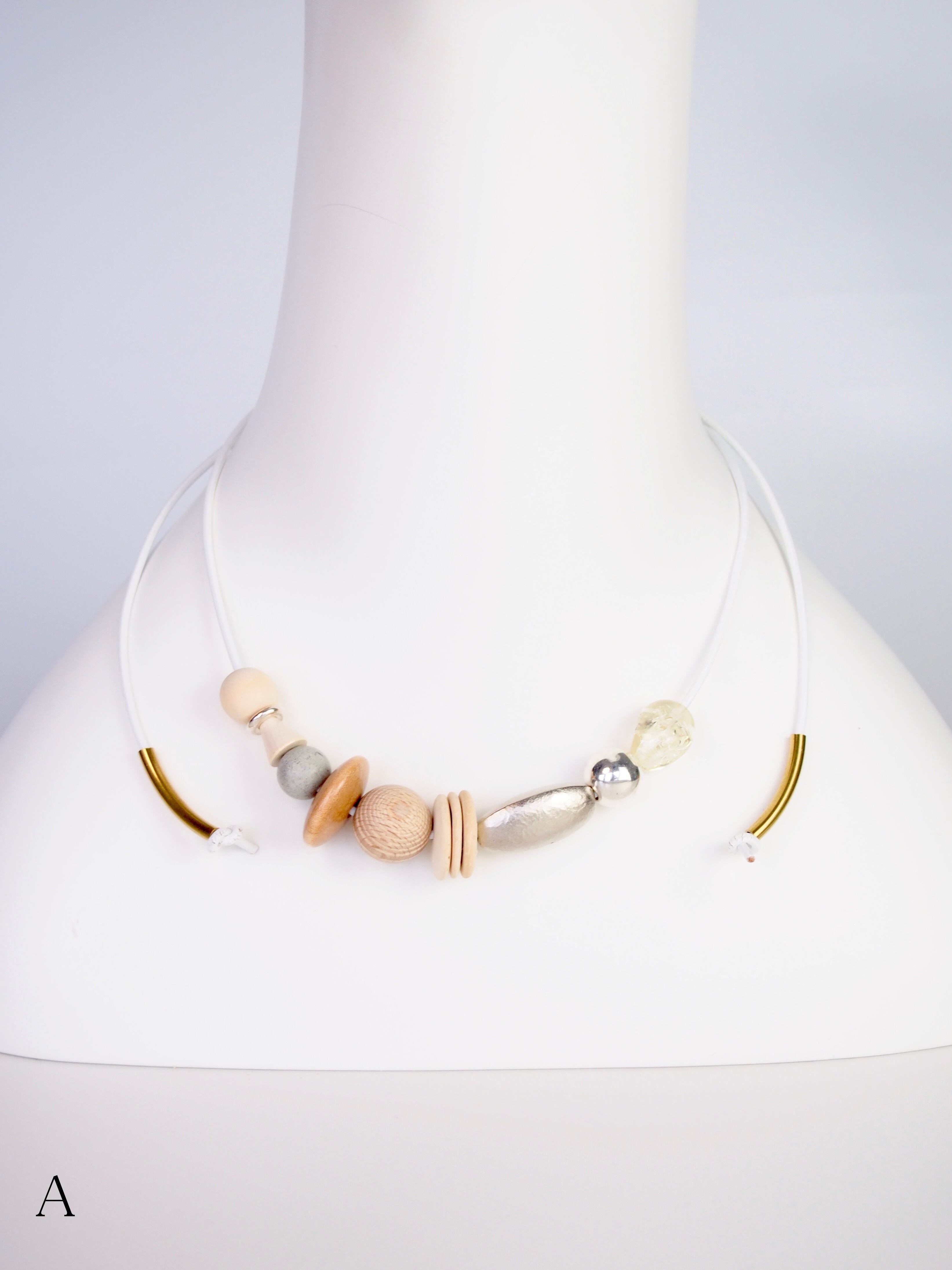 牛革・真鍮 (無垢)・ウッドビーズ (U.S.A / Japan)・アクリルビーズ(vintage / België / Germany / Italy)・メタルパーツ(U.S.A)