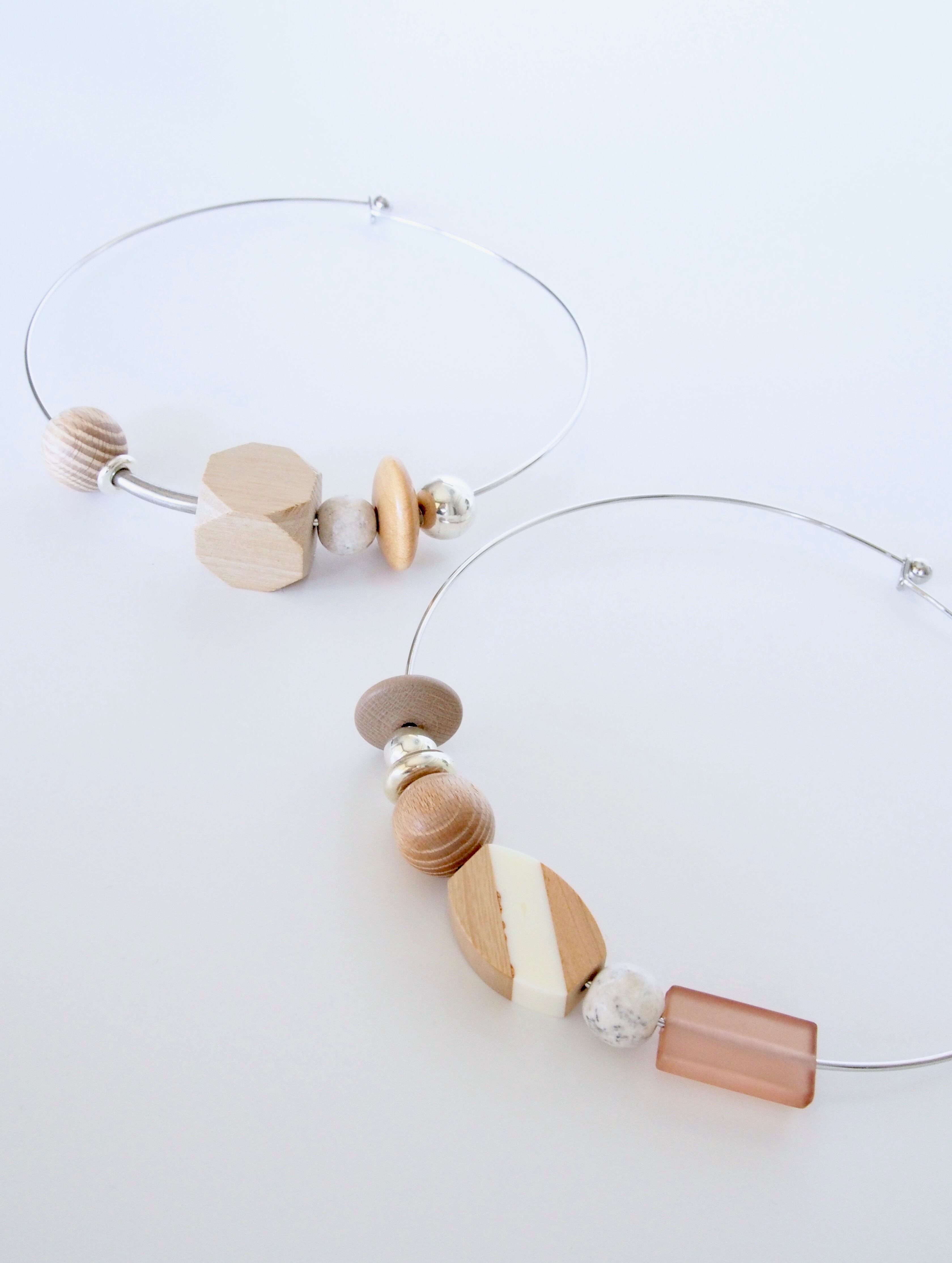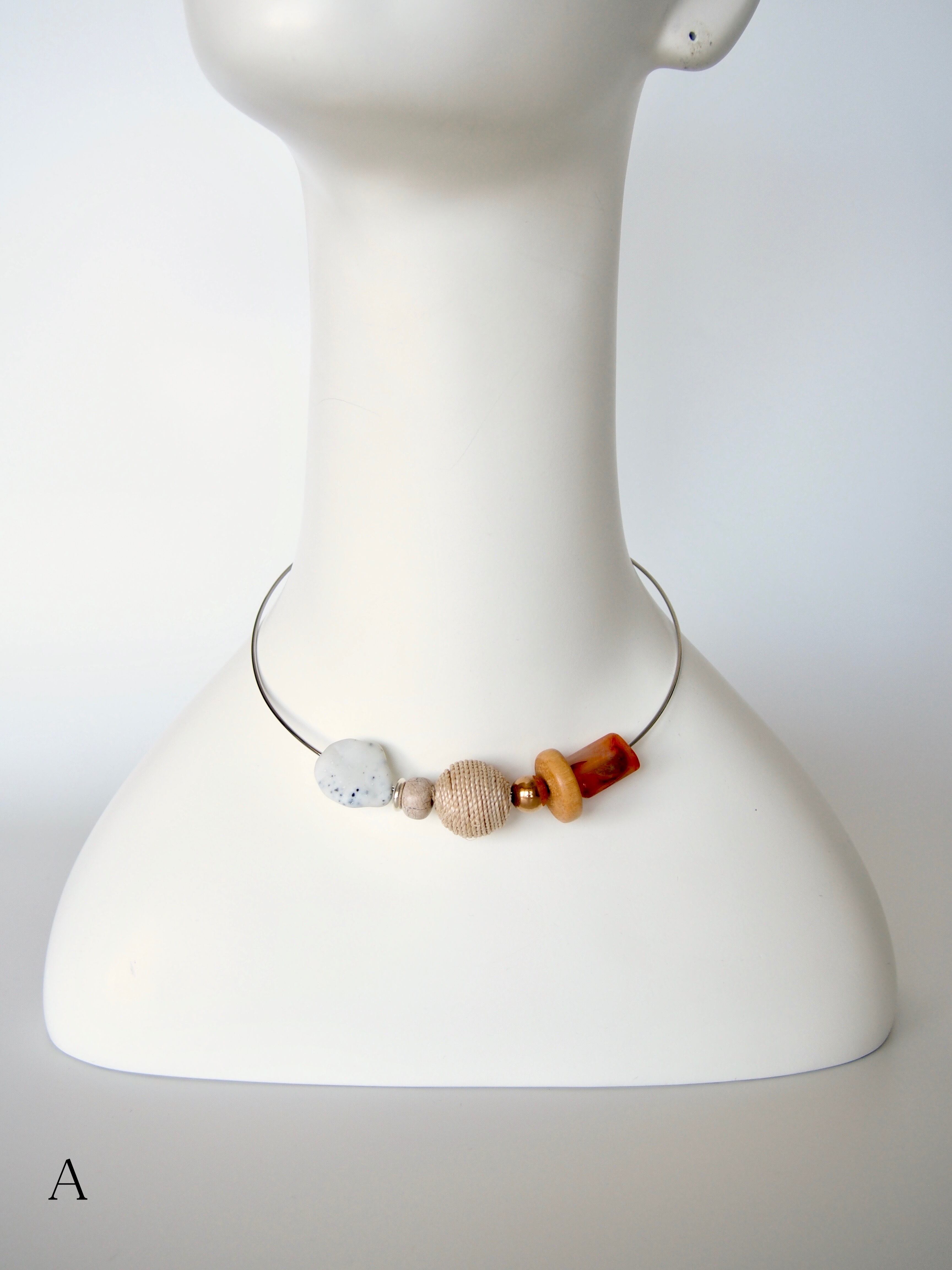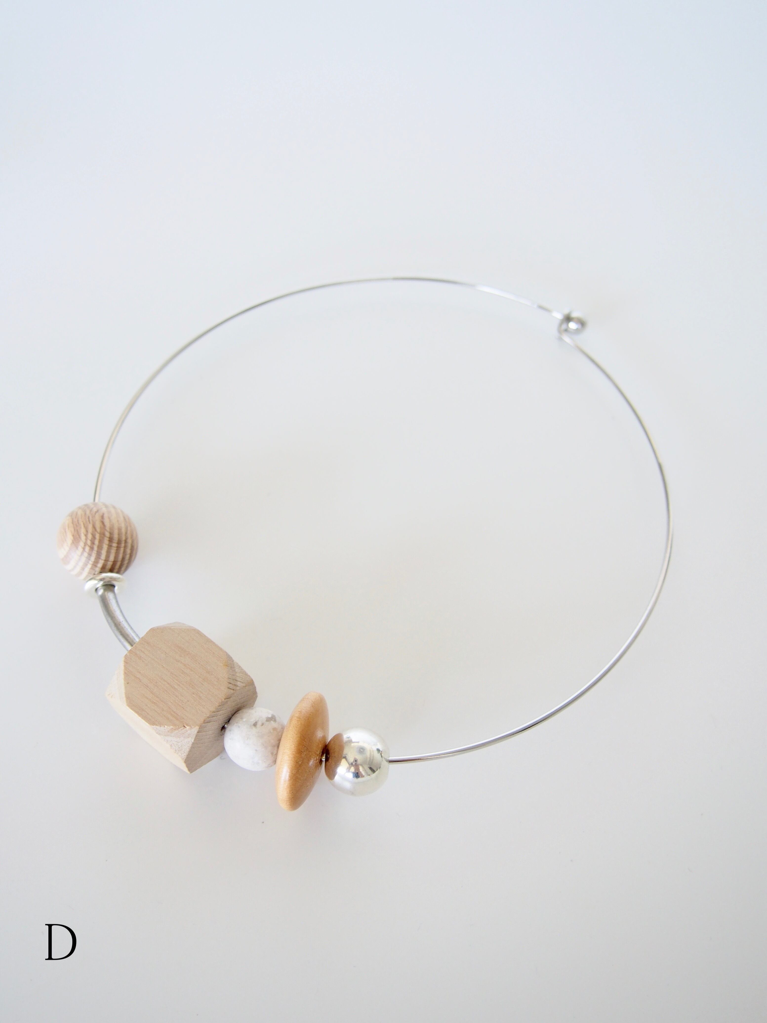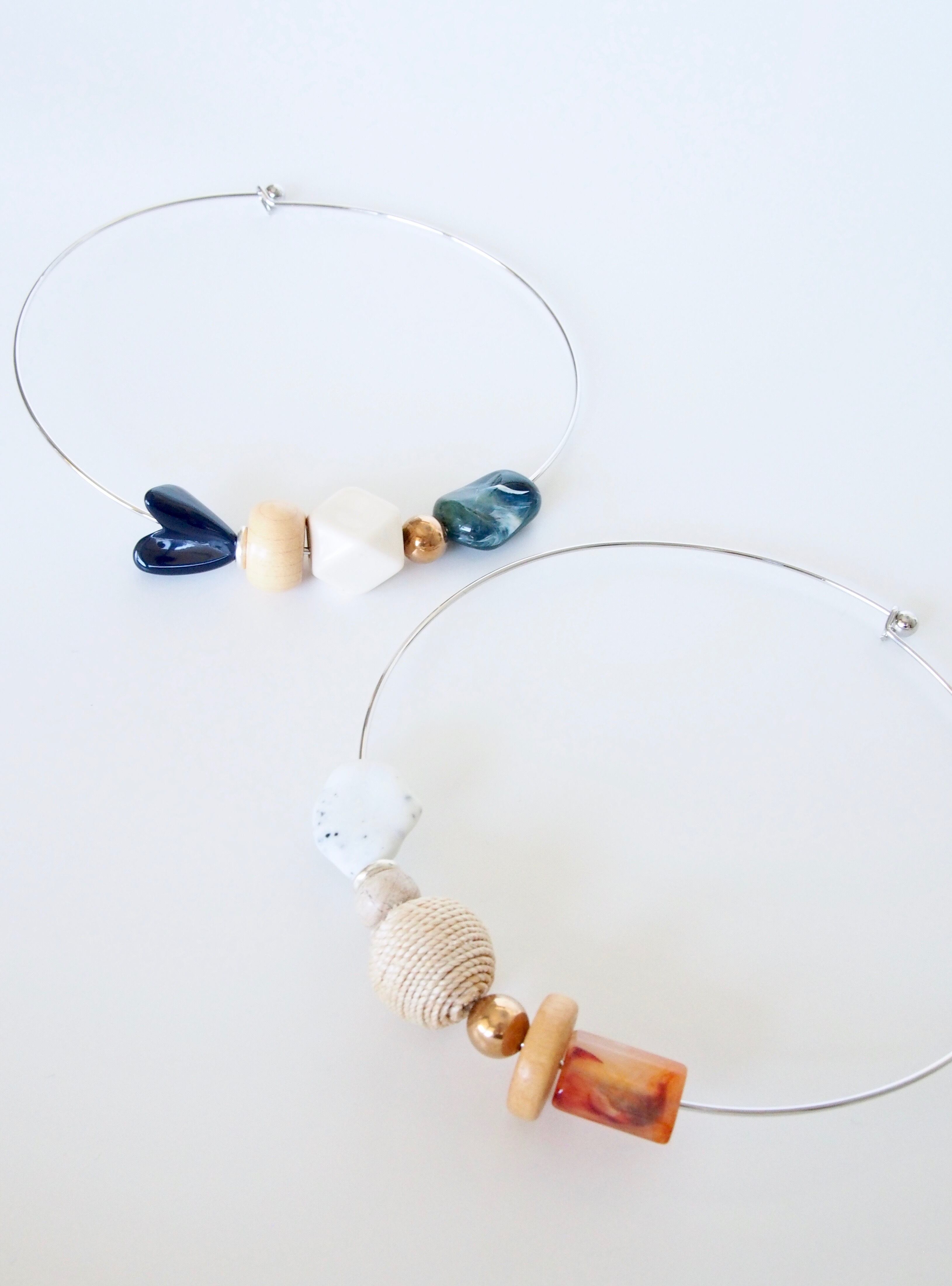 ウッドビーズやメタルビーズ、ビンテージのアクリルビーズをポイントにした、