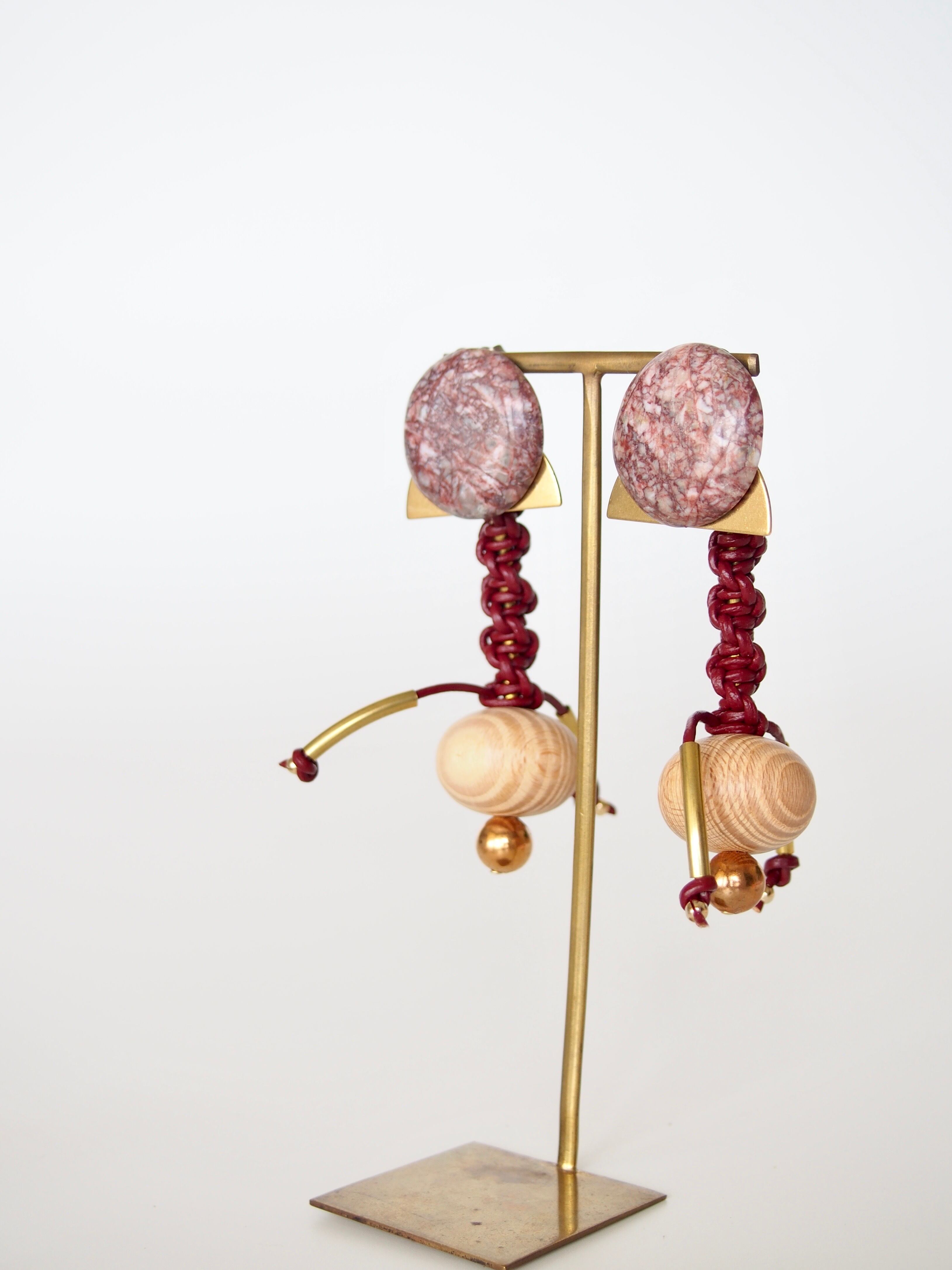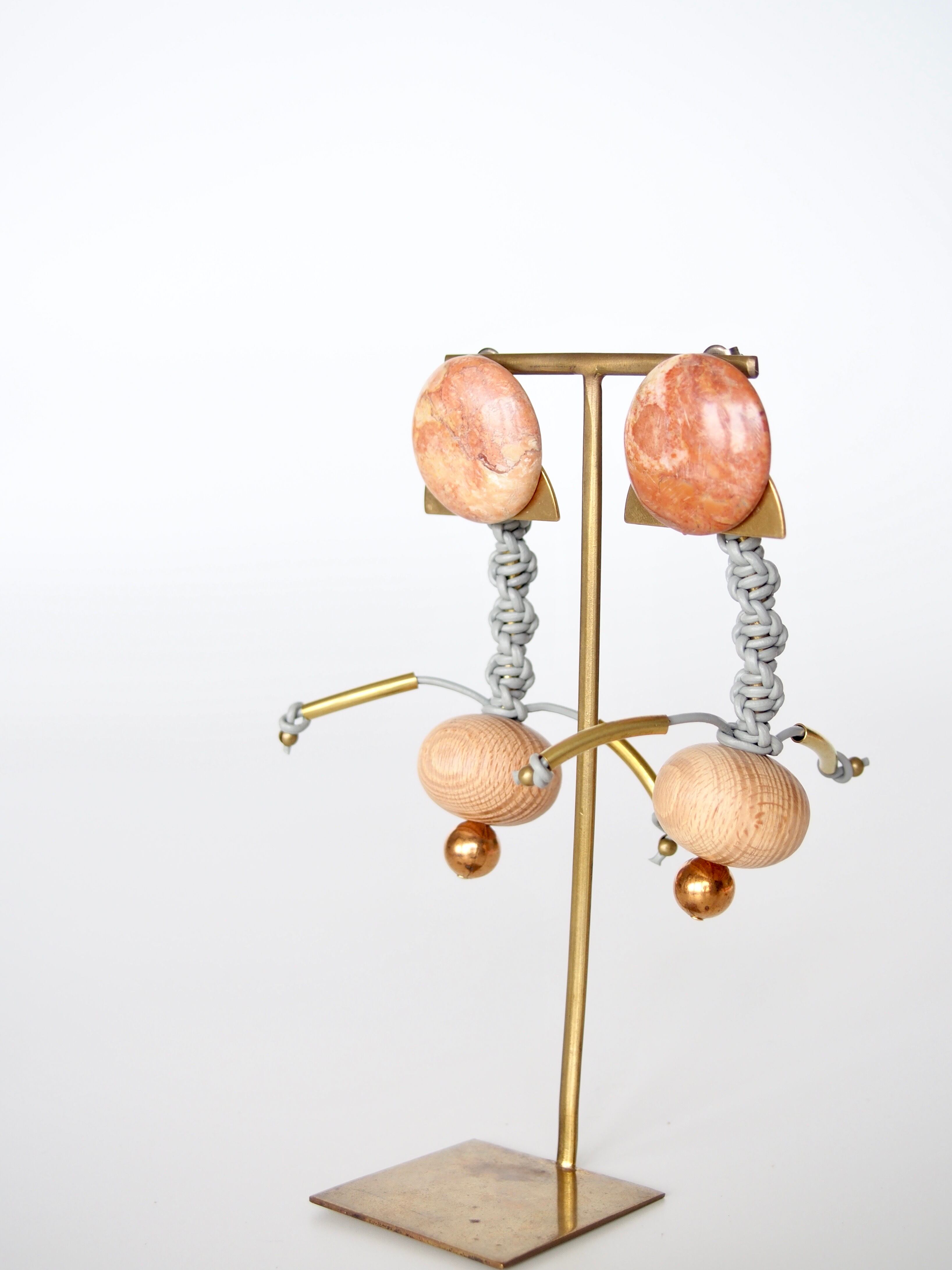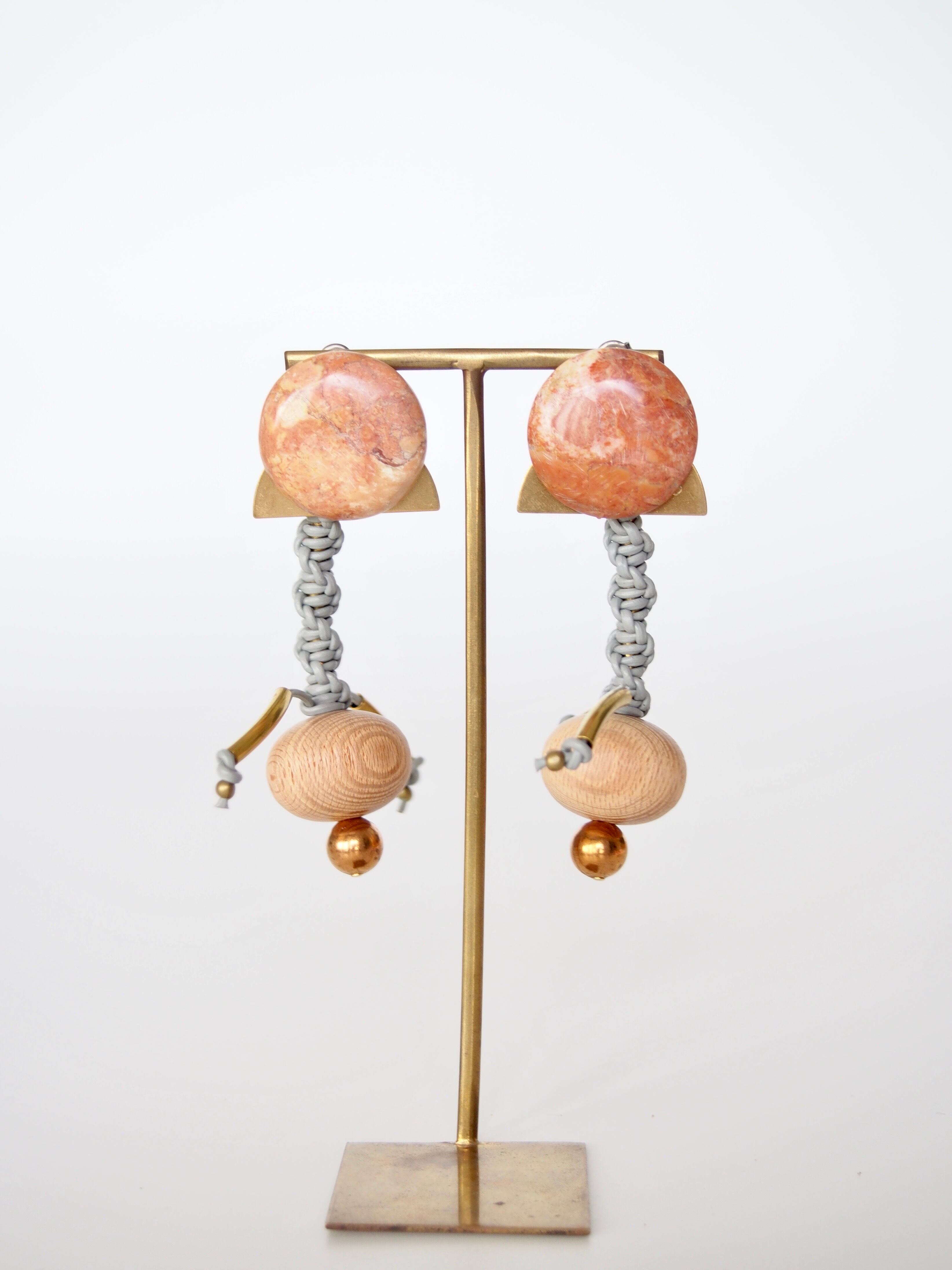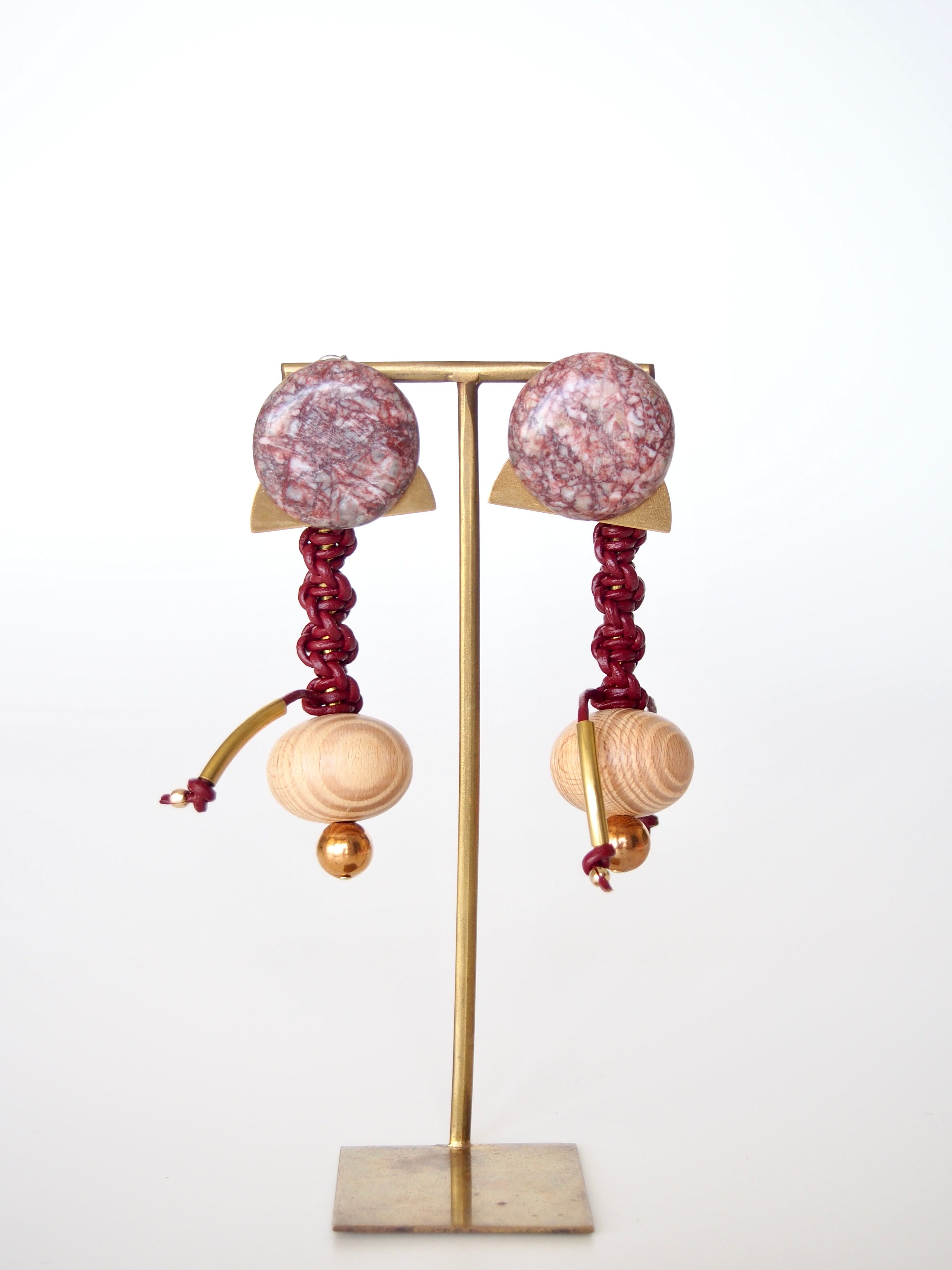 カラーストーン(U.S.A)・ウッドビーズ(Japan)・カラーレザーコード(Japan)・真鍮・アクリル樹脂