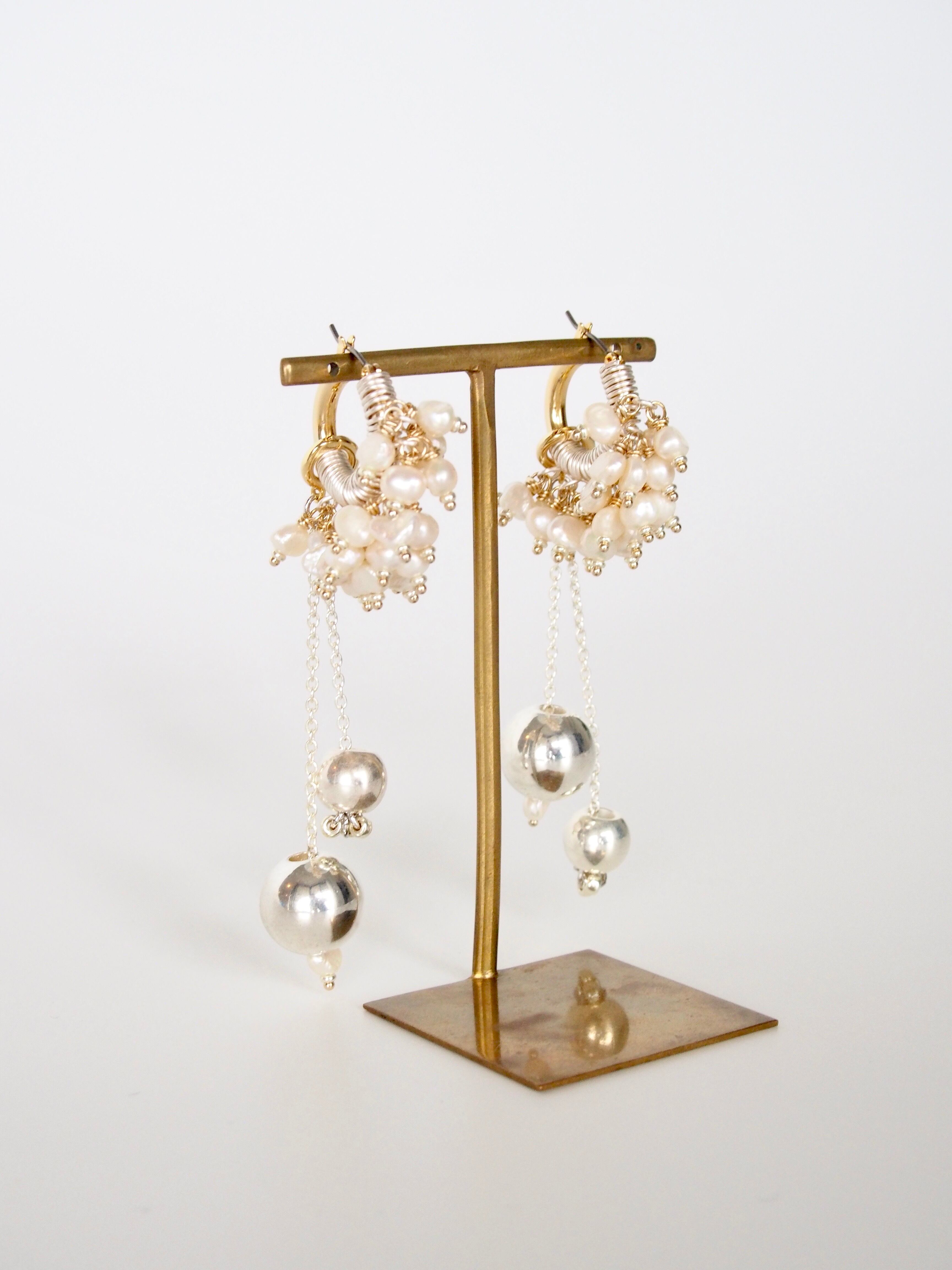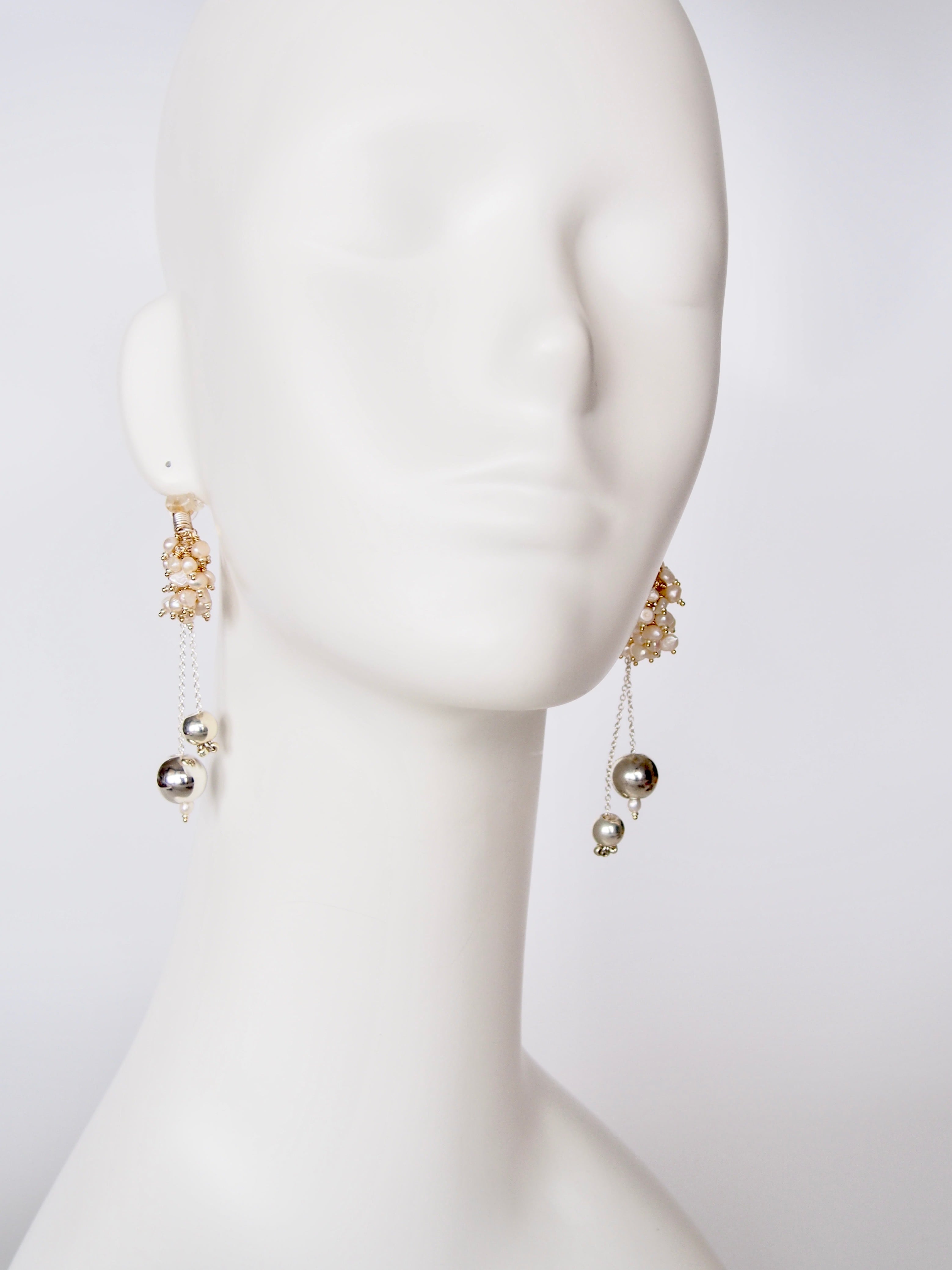 3種類の素材がそれぞれの個性を輝かせながら、いまにもこぼれ落ちるようなデザインの瑞々しい印象のピアス/クリップ です。