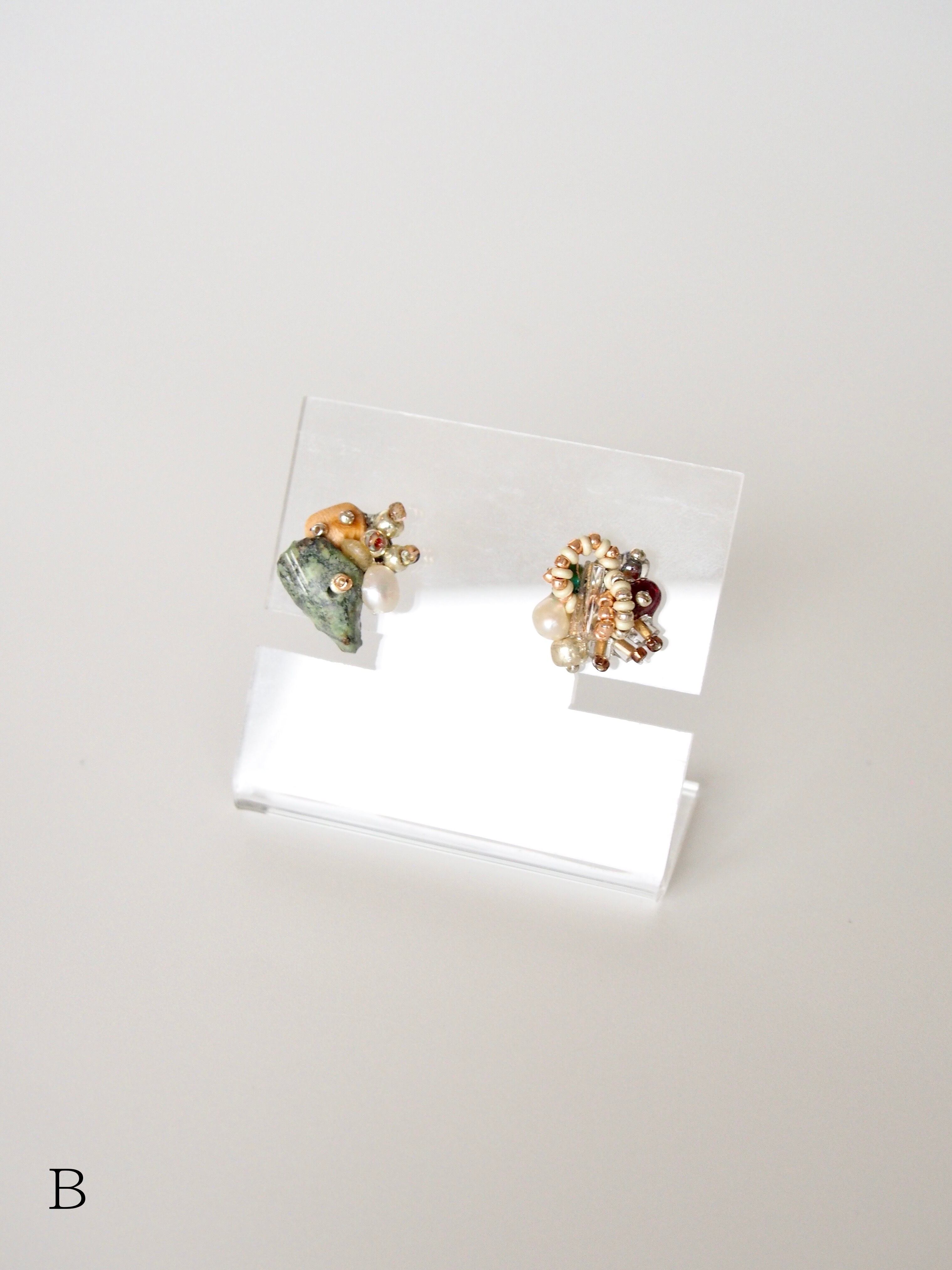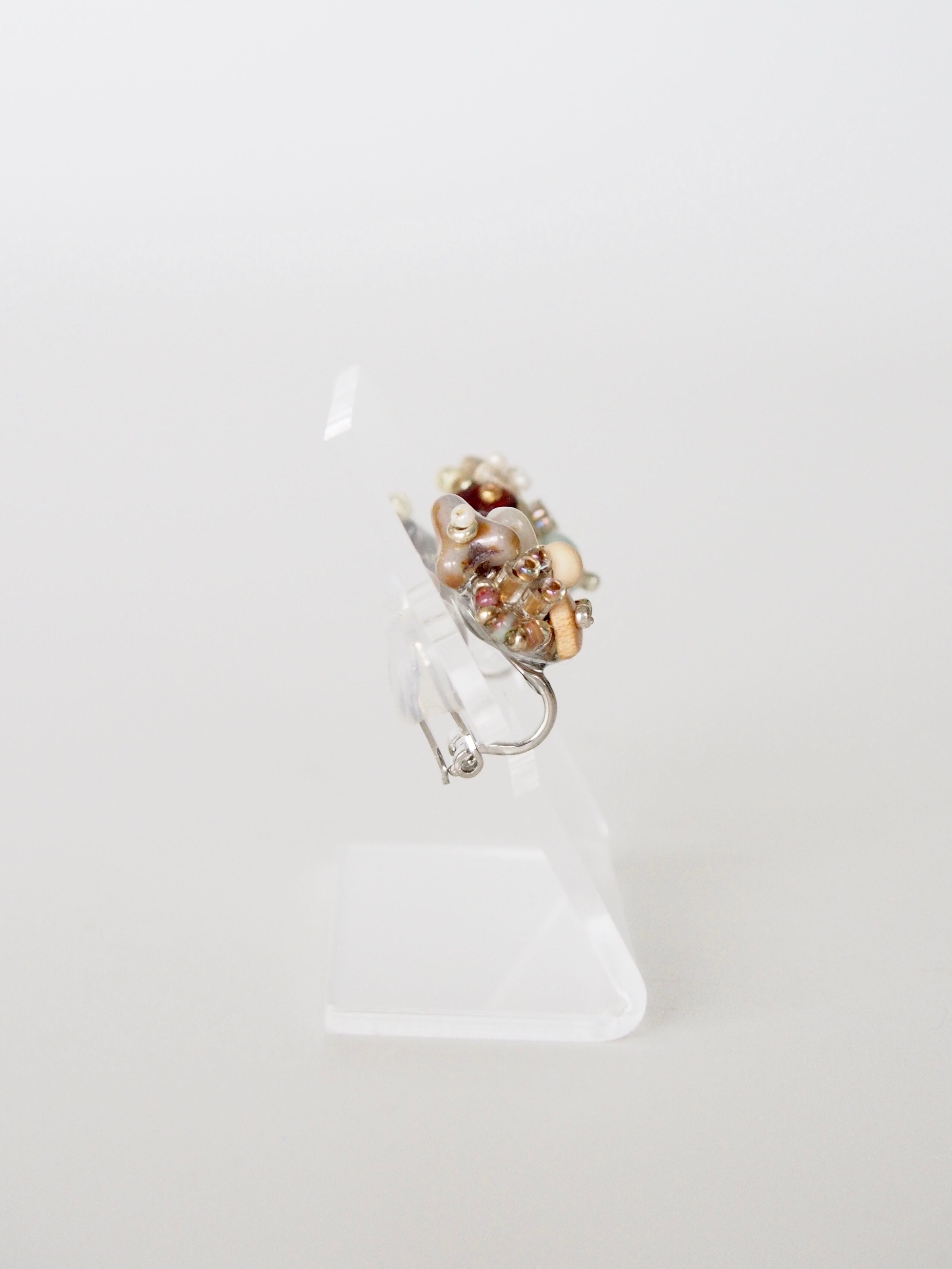 様々なビーズを細かく編み込んだアシンメトリーデザインの