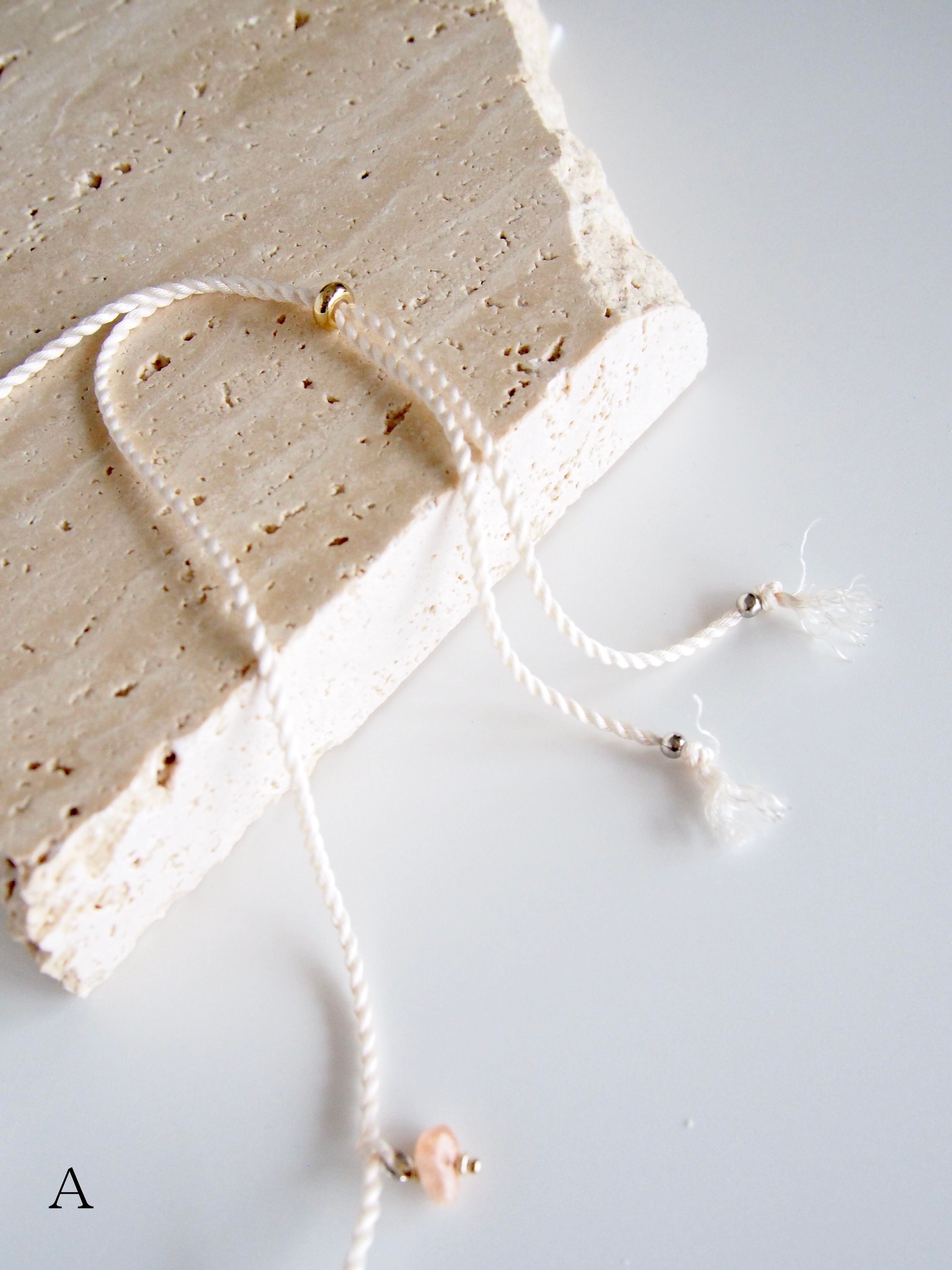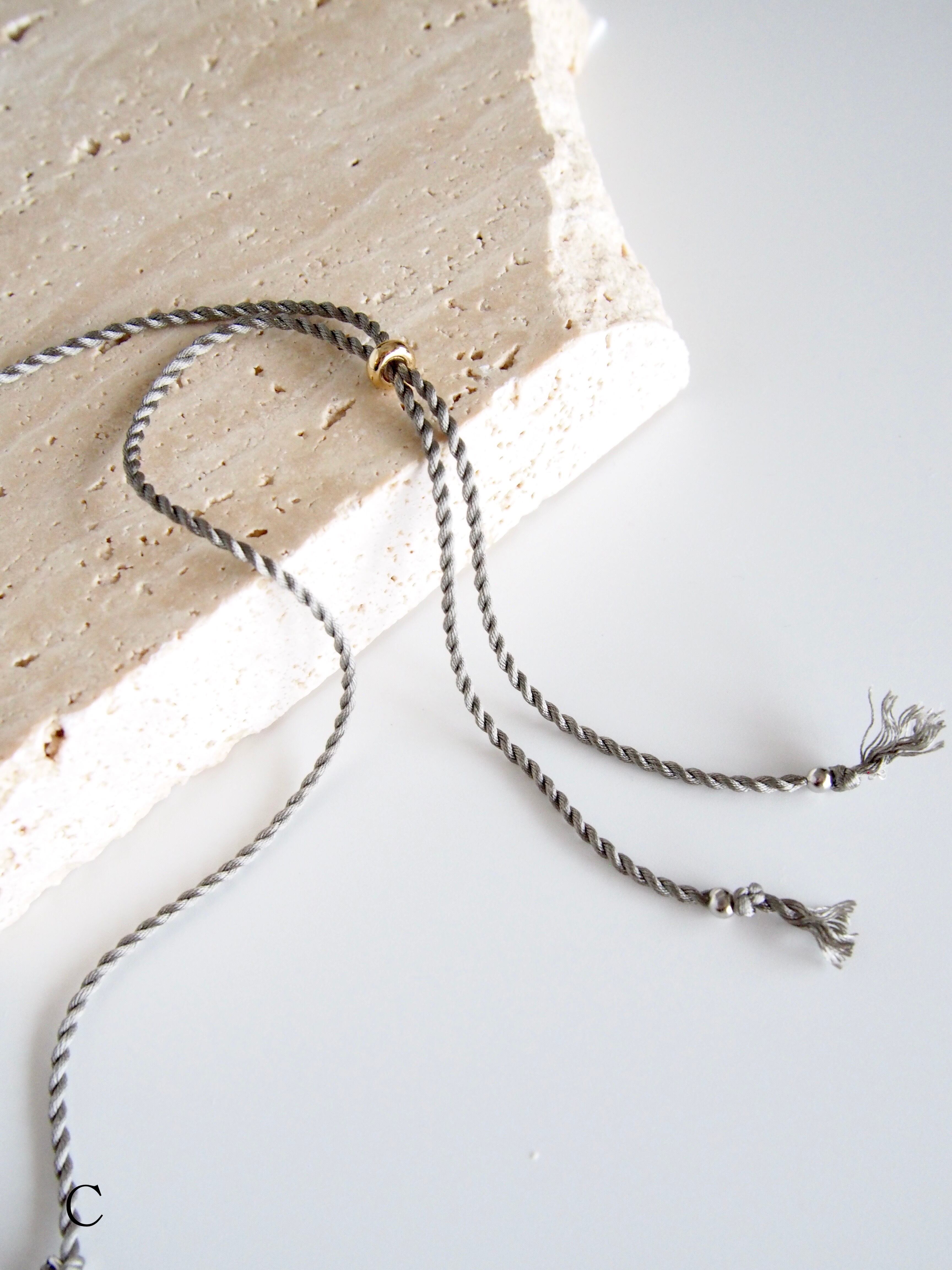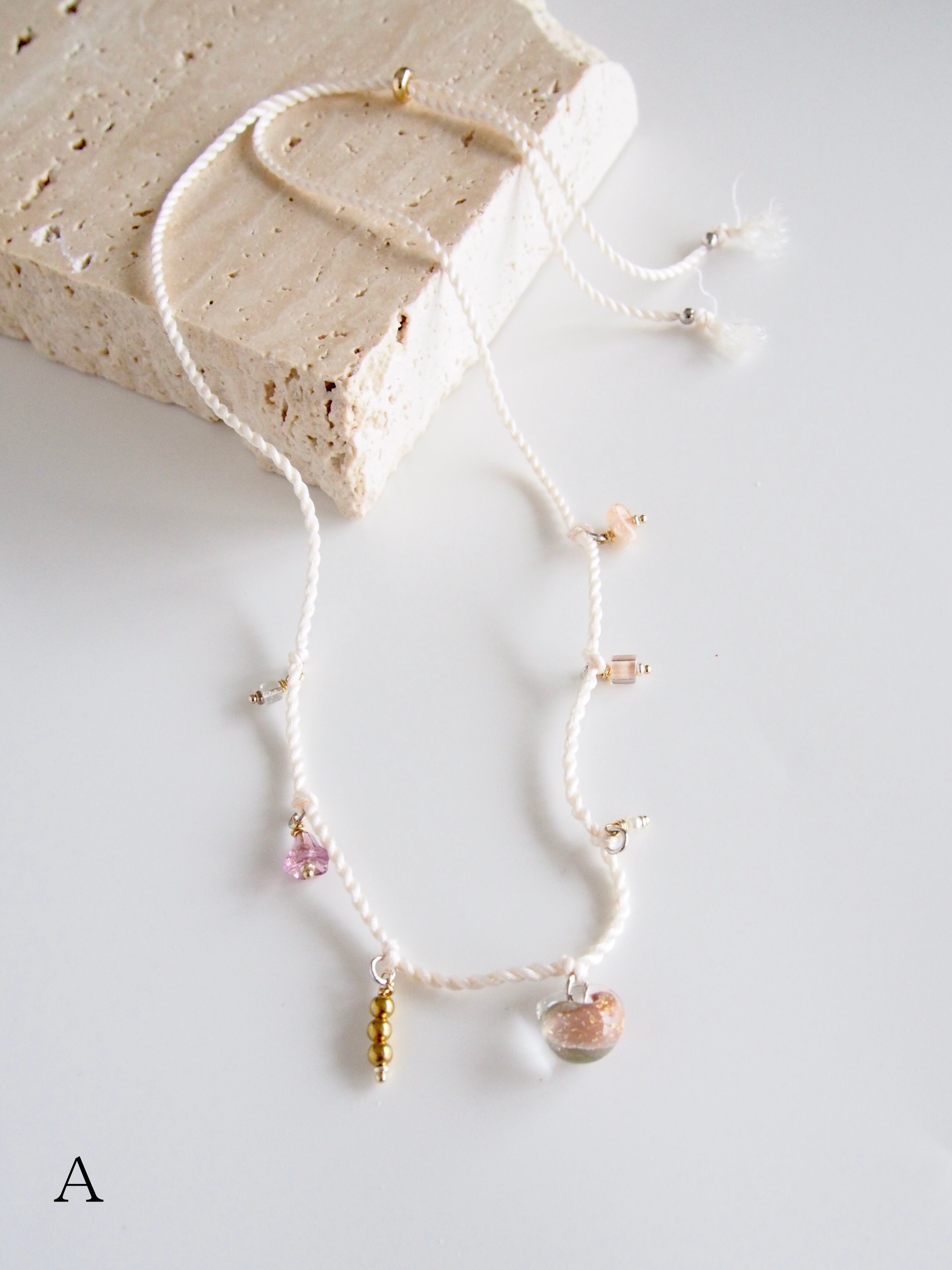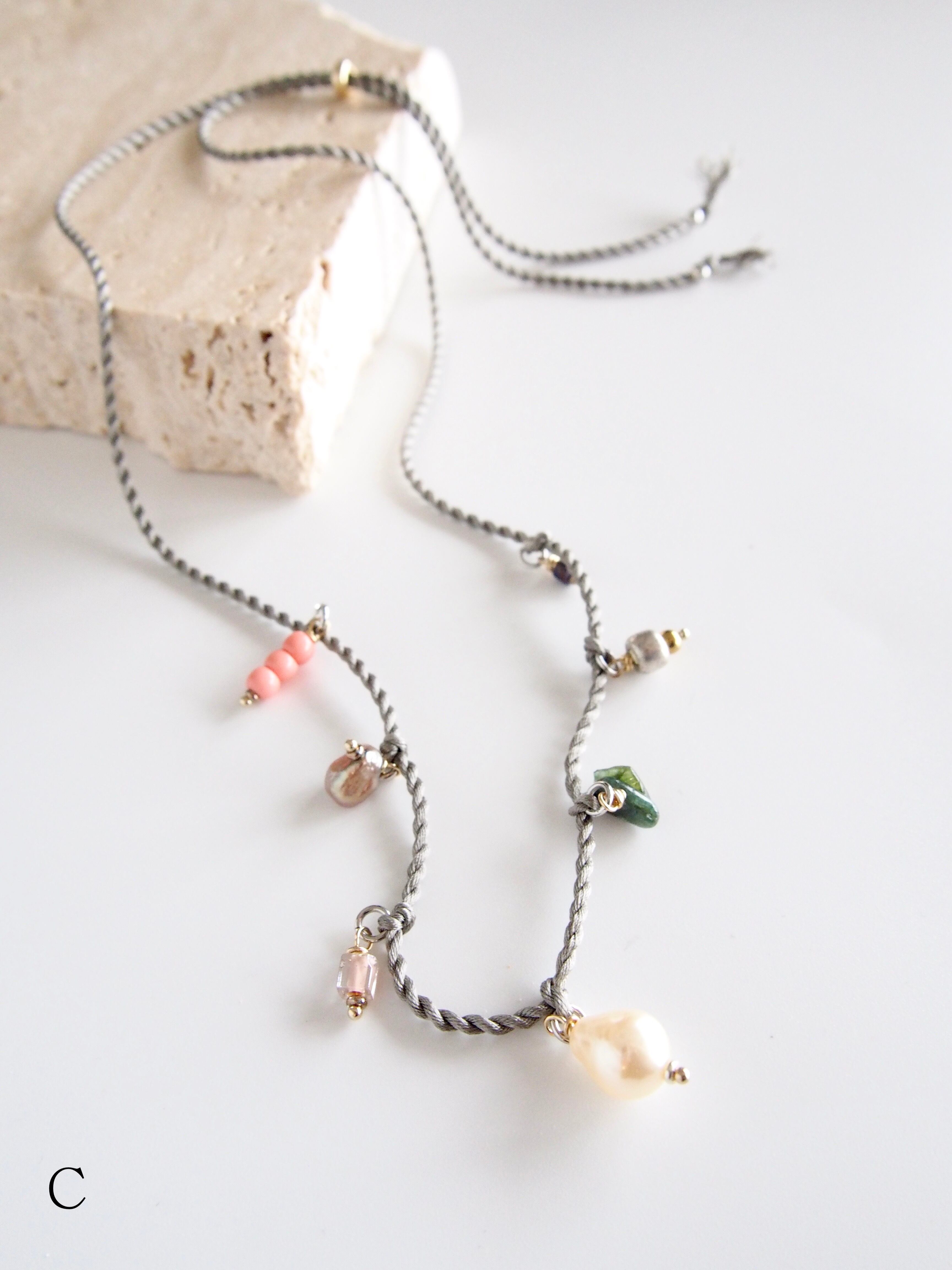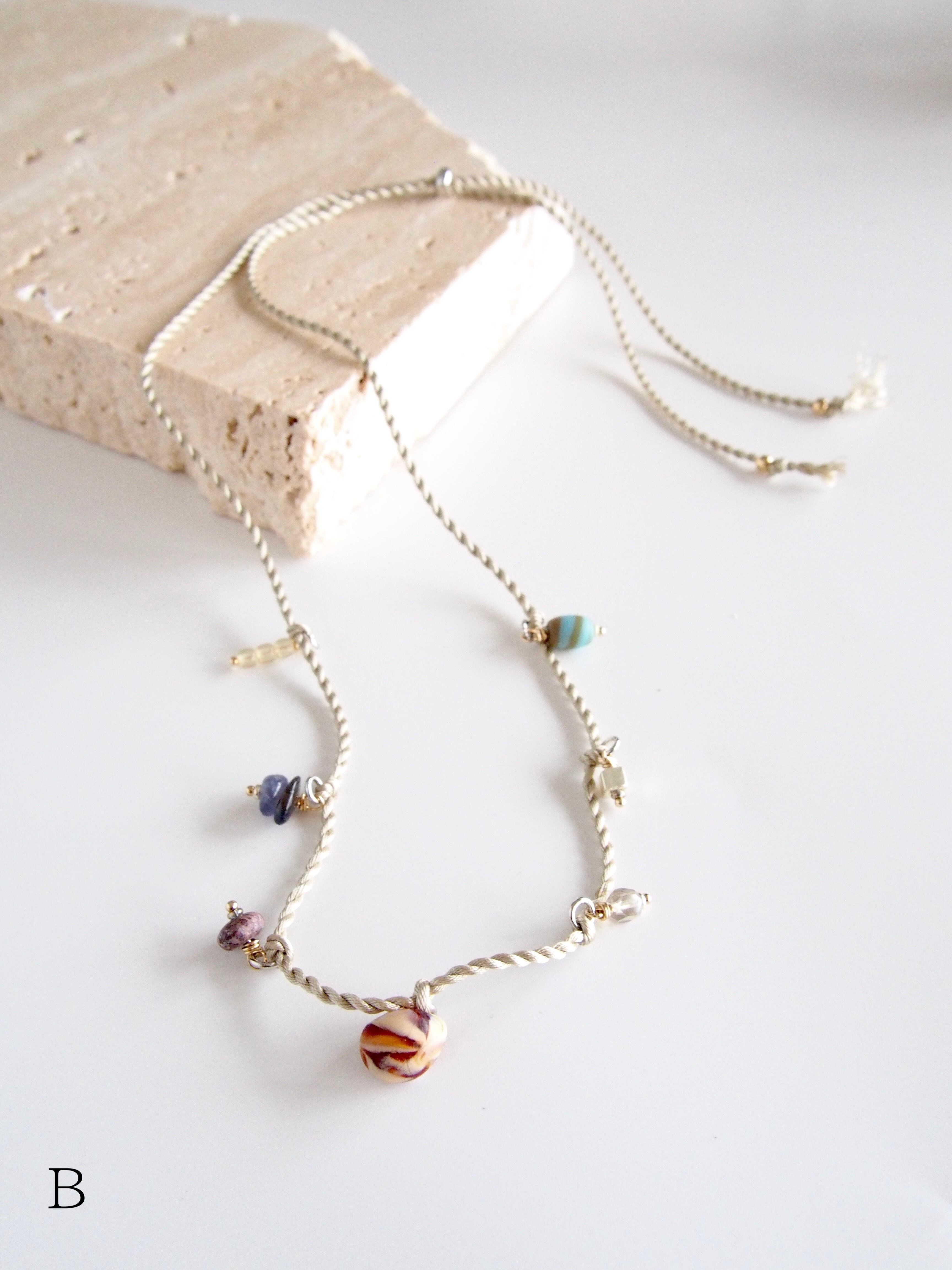 素肌に優しく馴染む、シルクコードを使用したスライド式のネックレスです。