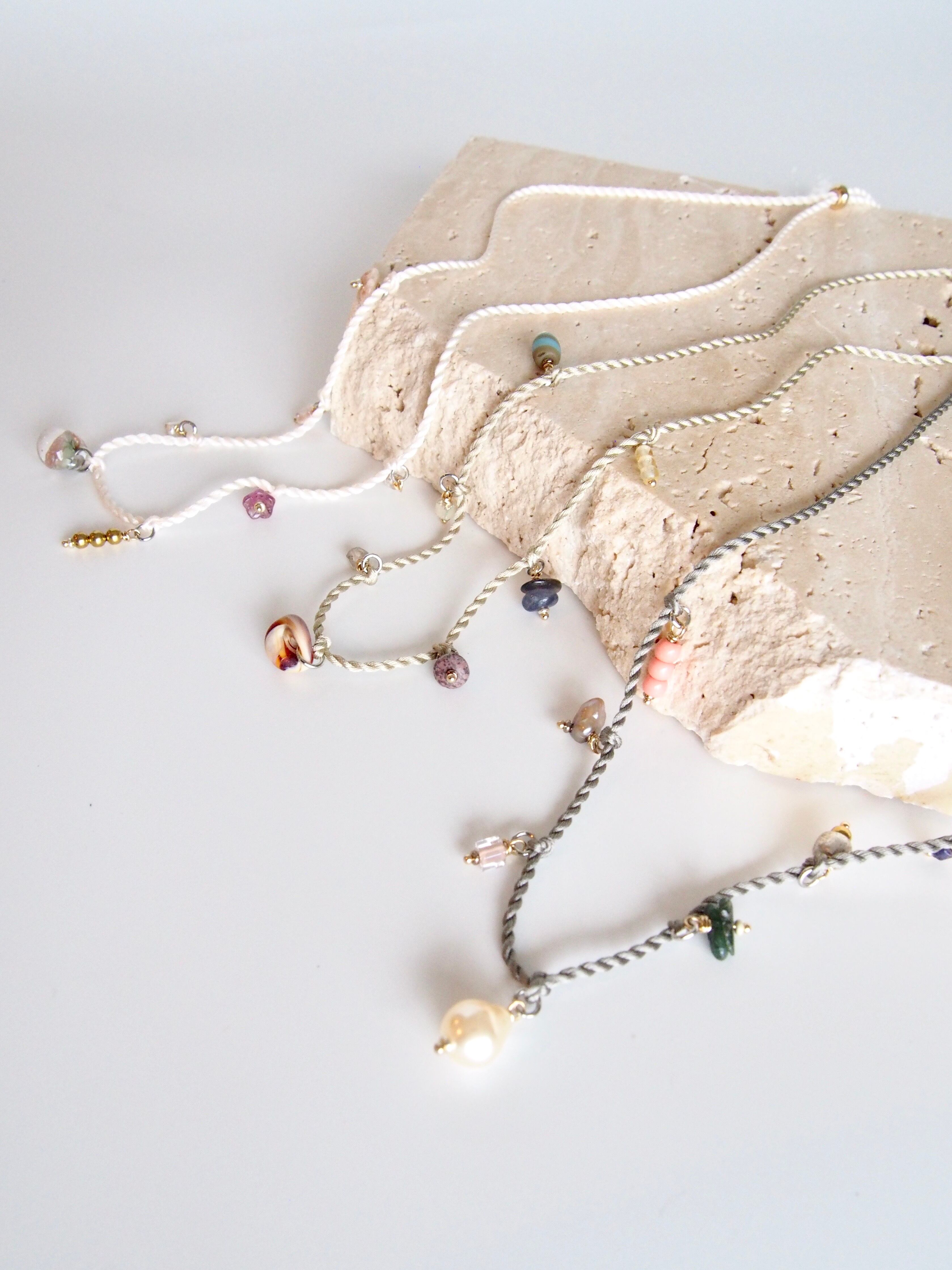 小さなビーズは旅先で仕入れたビンテージのものから、ハンドメイドのぬくもりのこもったビーズまで様々な場所から仕入れた特別なものばかりです。