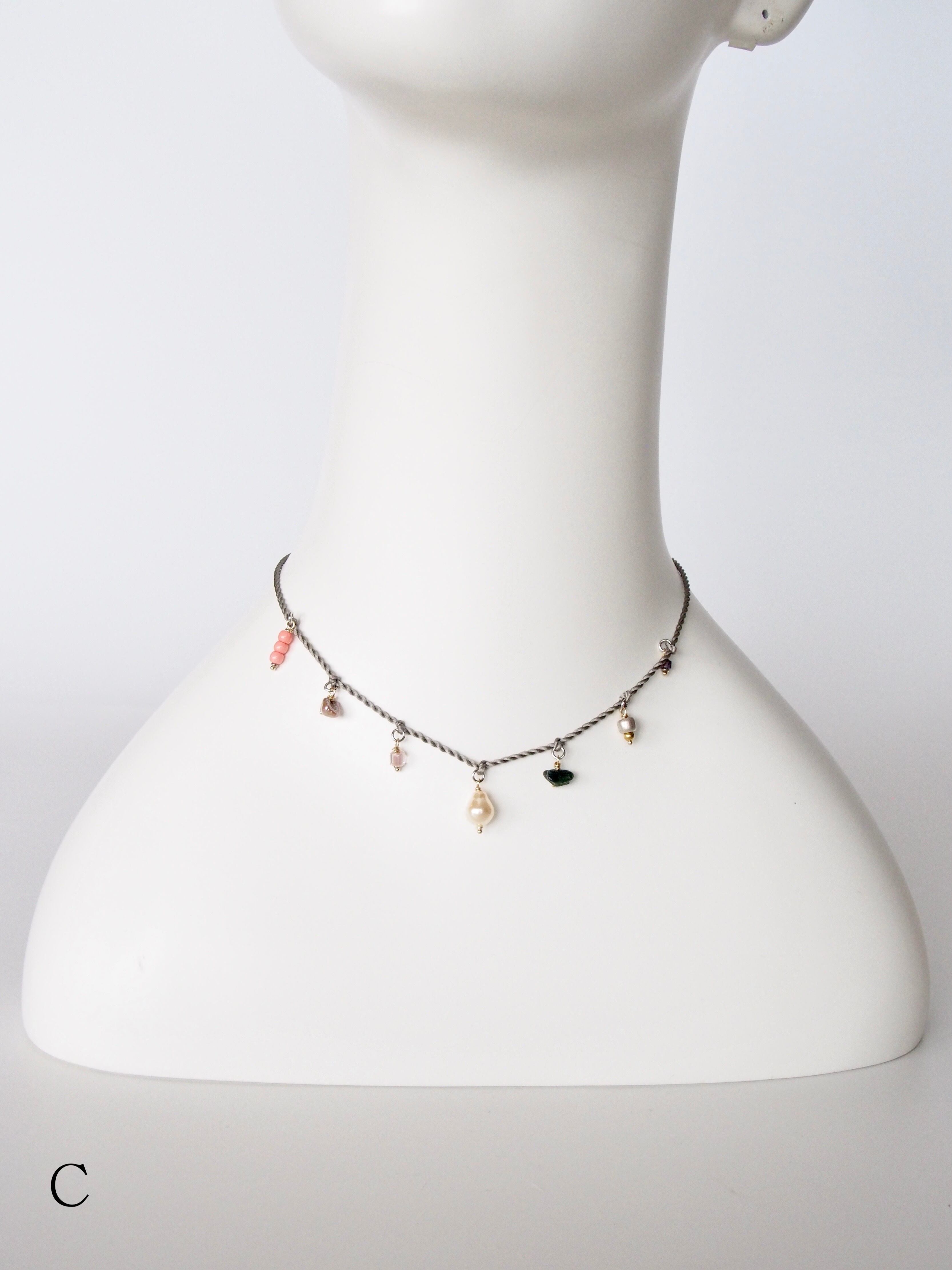 "thin silk choker necklace "よりも太めのシルクコードを使用しております。