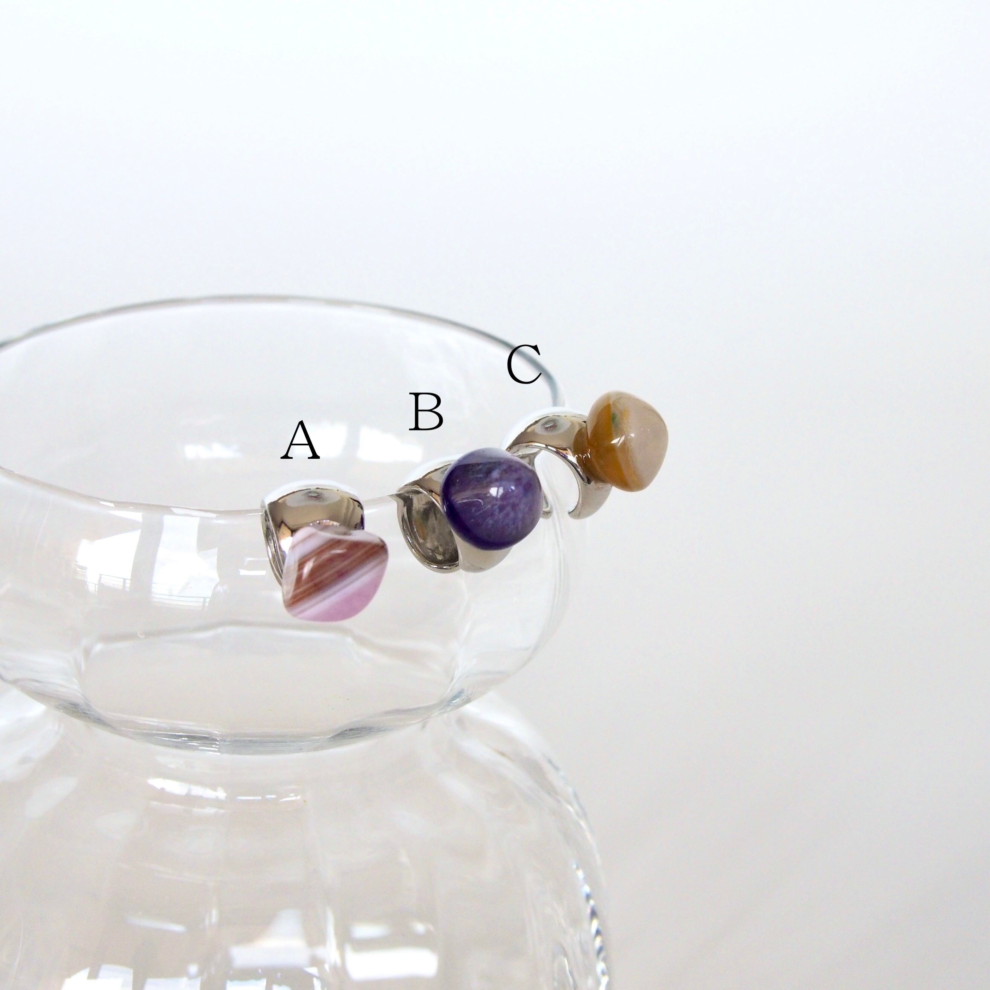 カラーアゲートをポイントに飾ったシンプルなデザインのイヤーカフです。