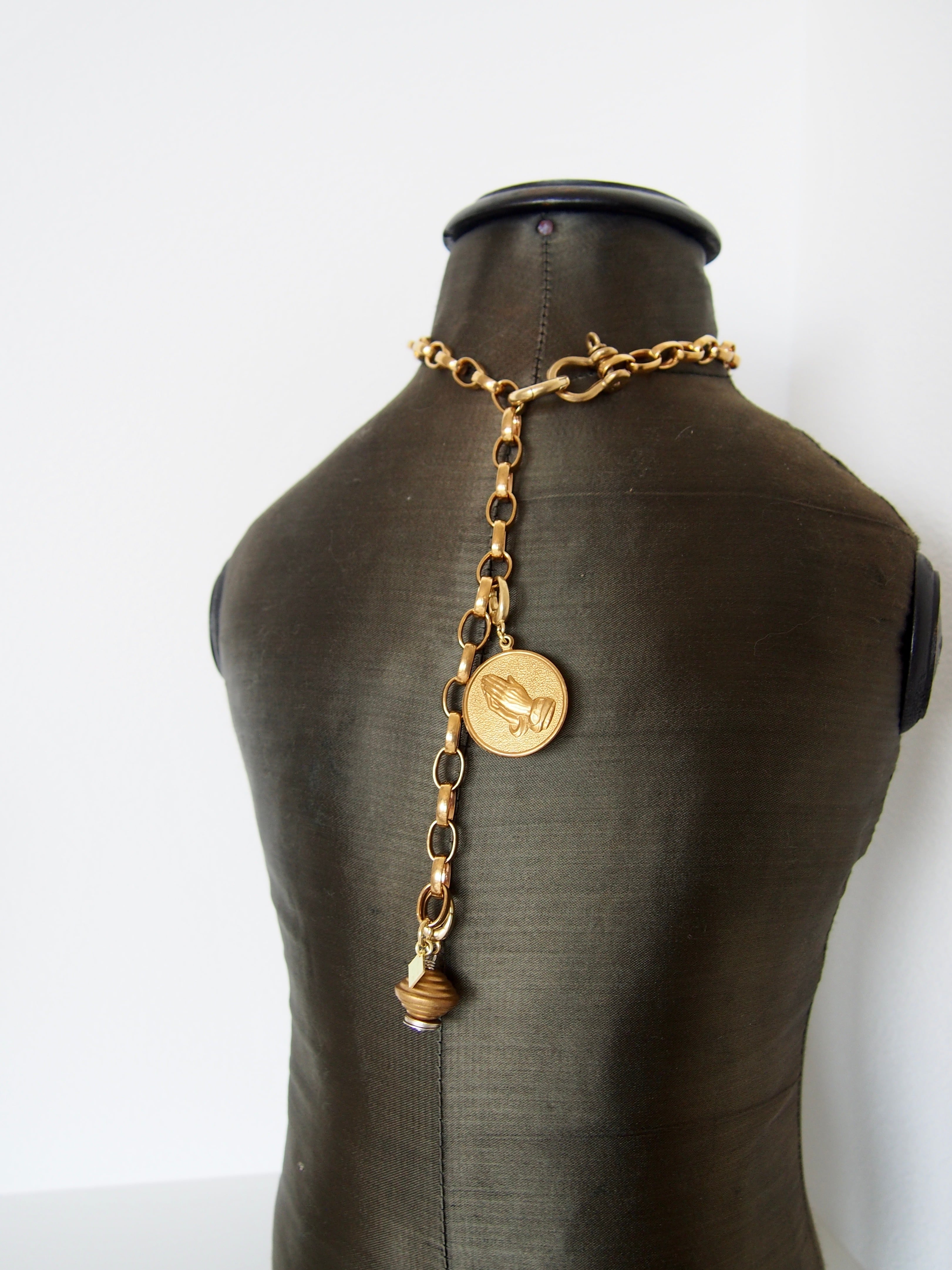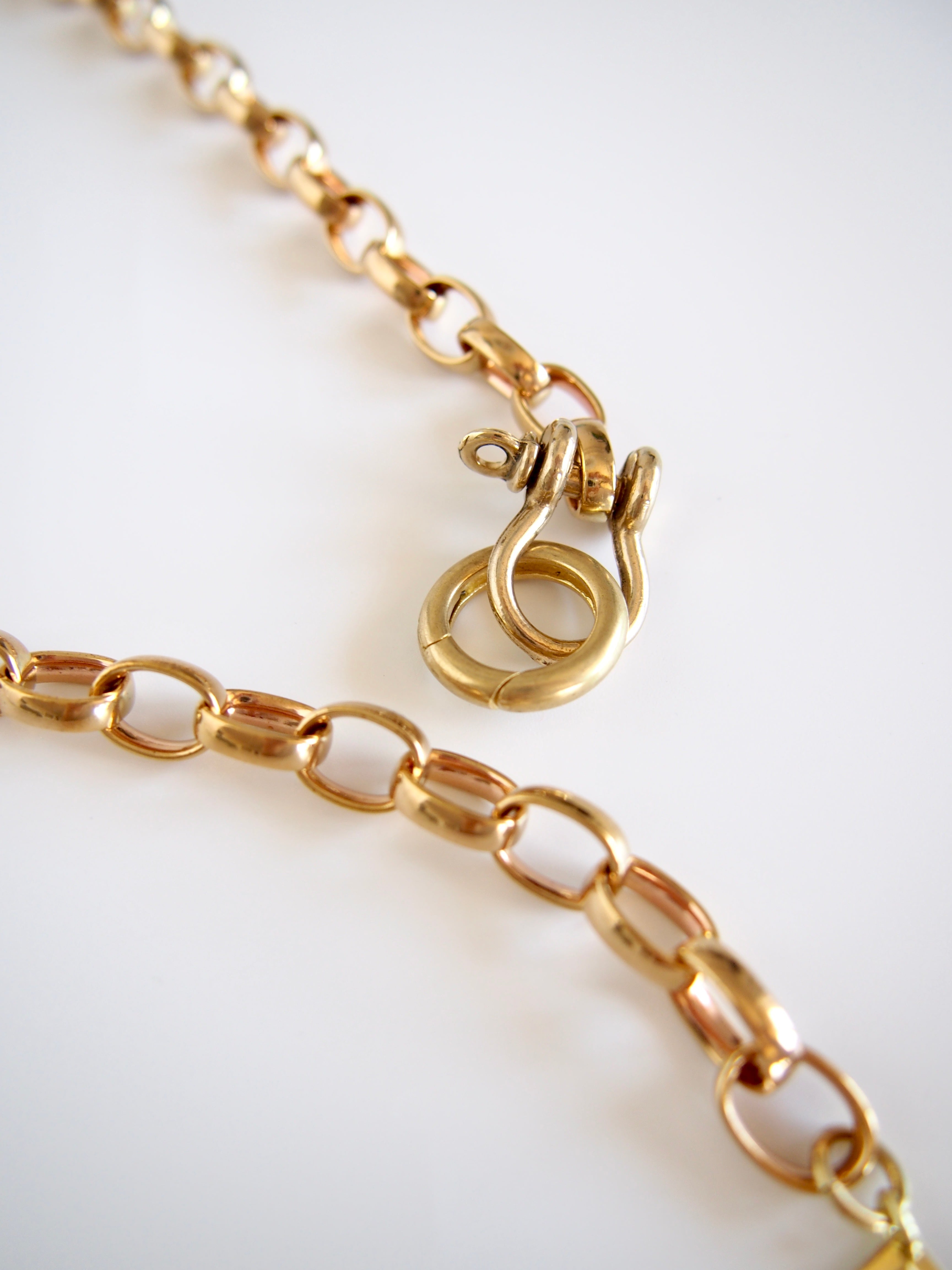 鏡面仕上げのつるりとした肌触りの真鍮性のネックレス。
