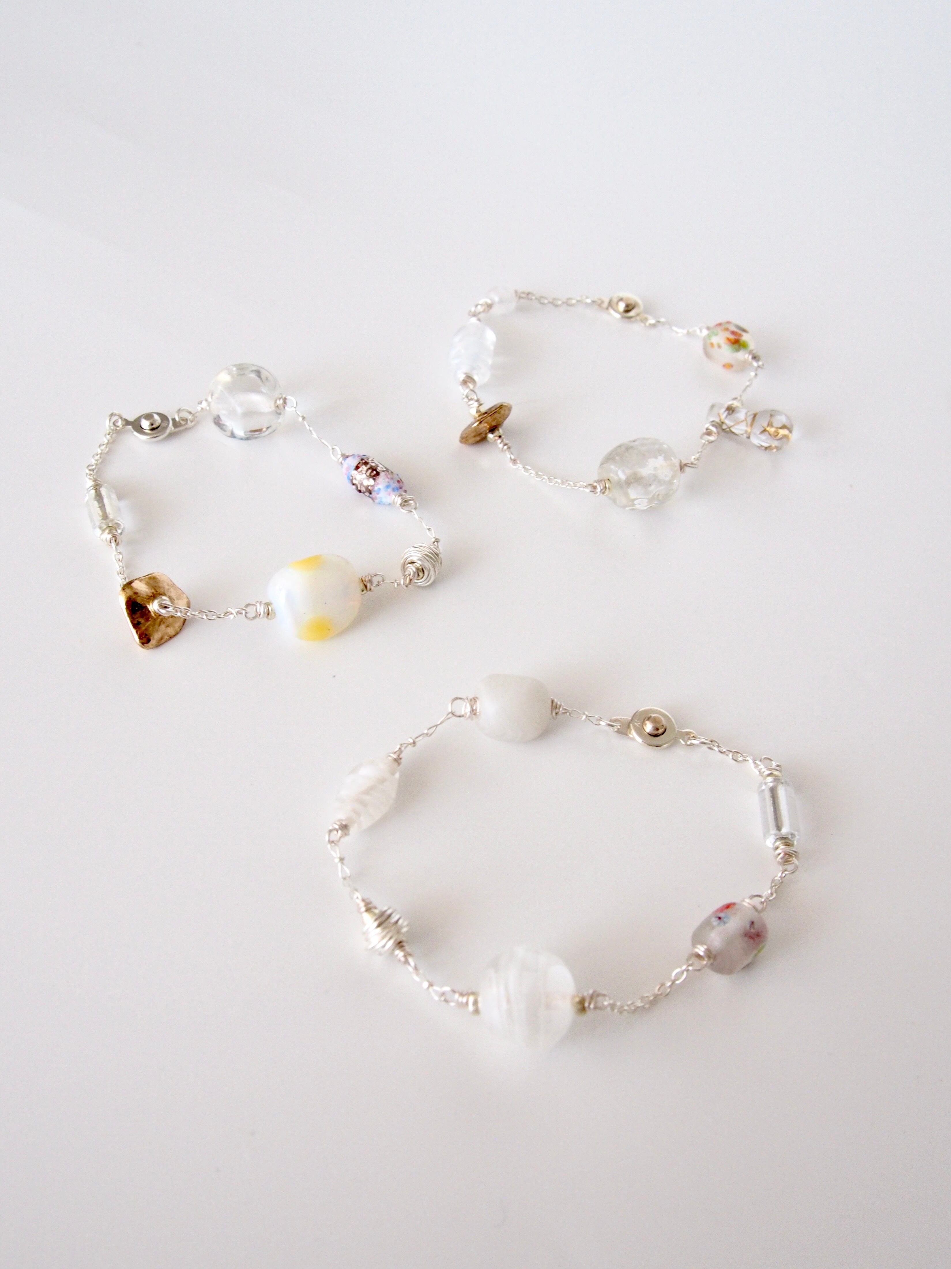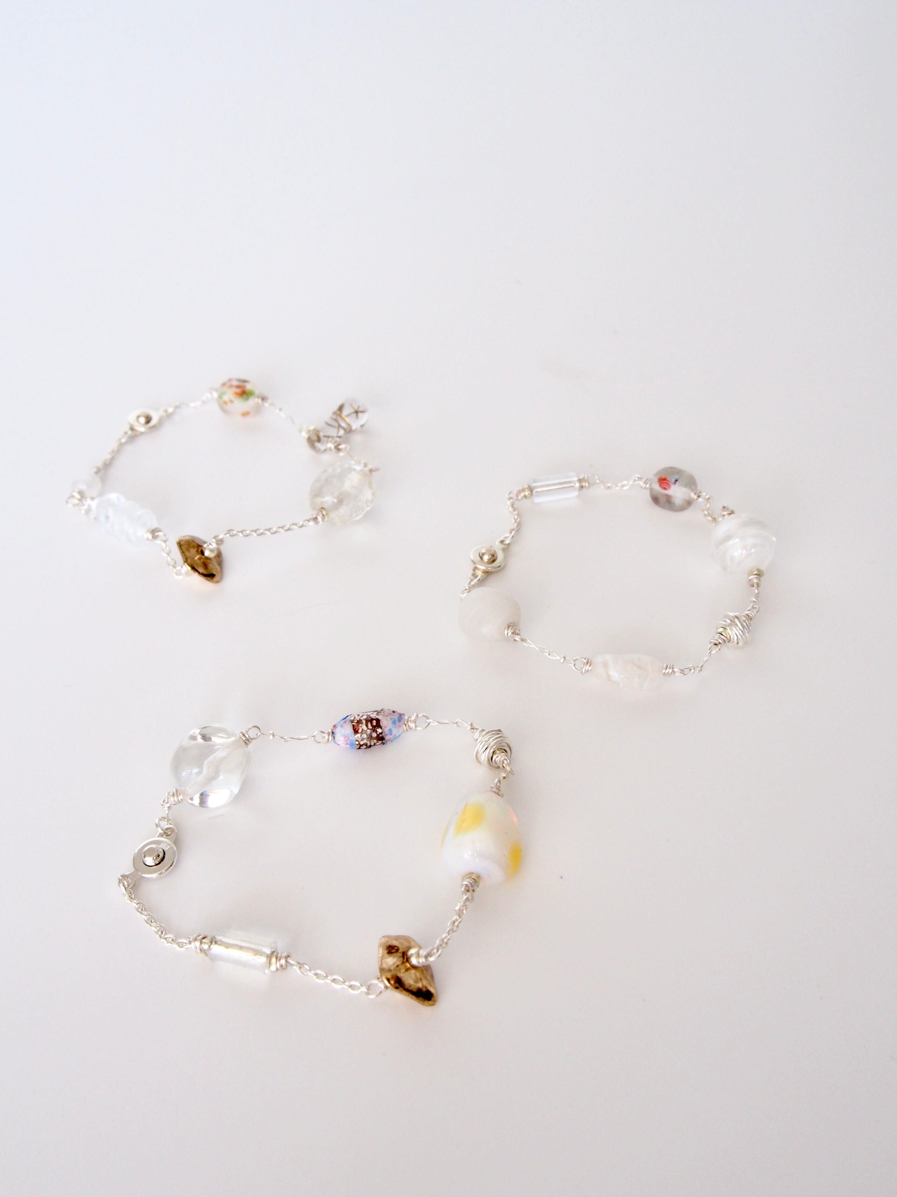 《ONLY ONE ITEM》" White glass collage bracelet "