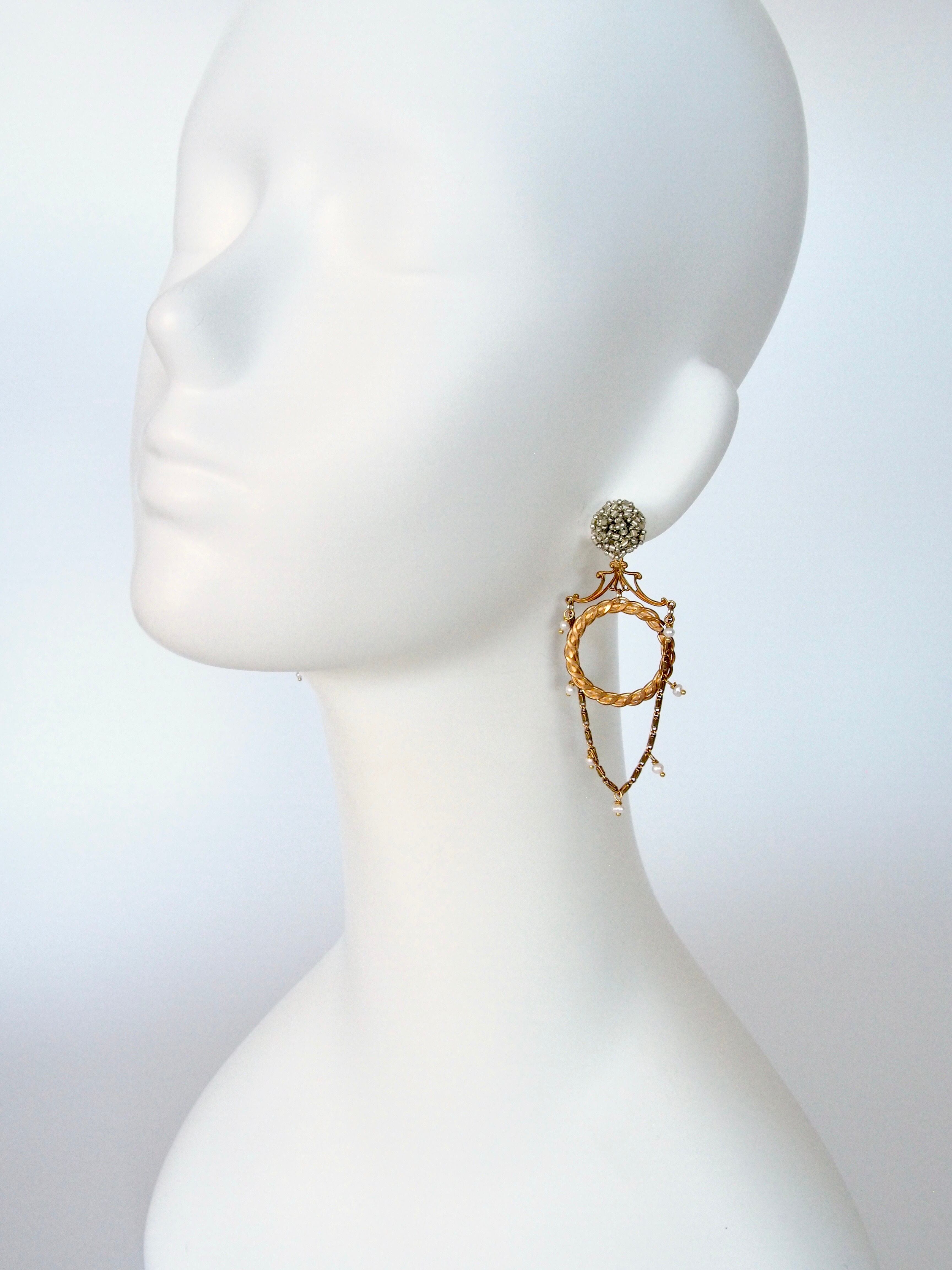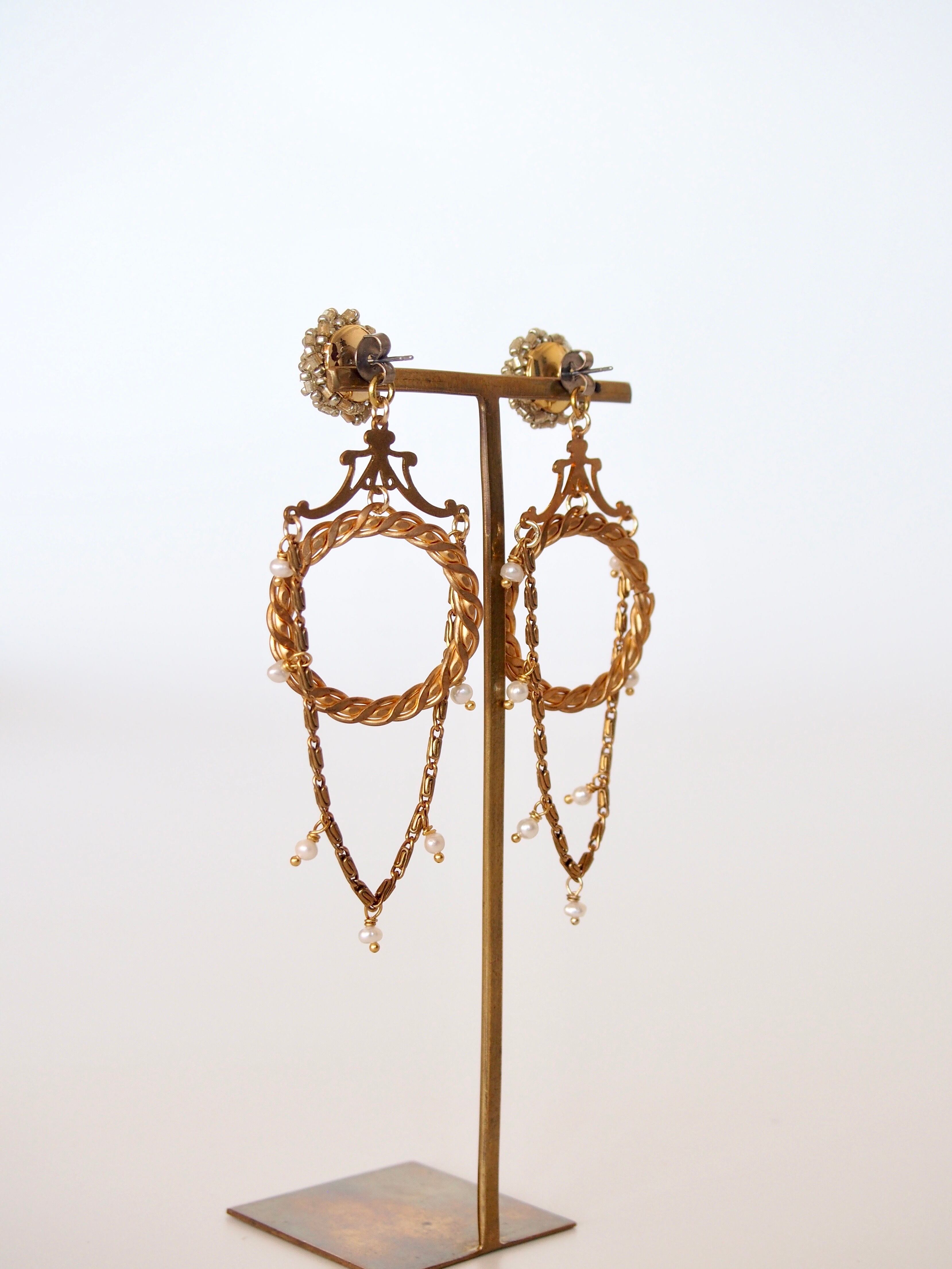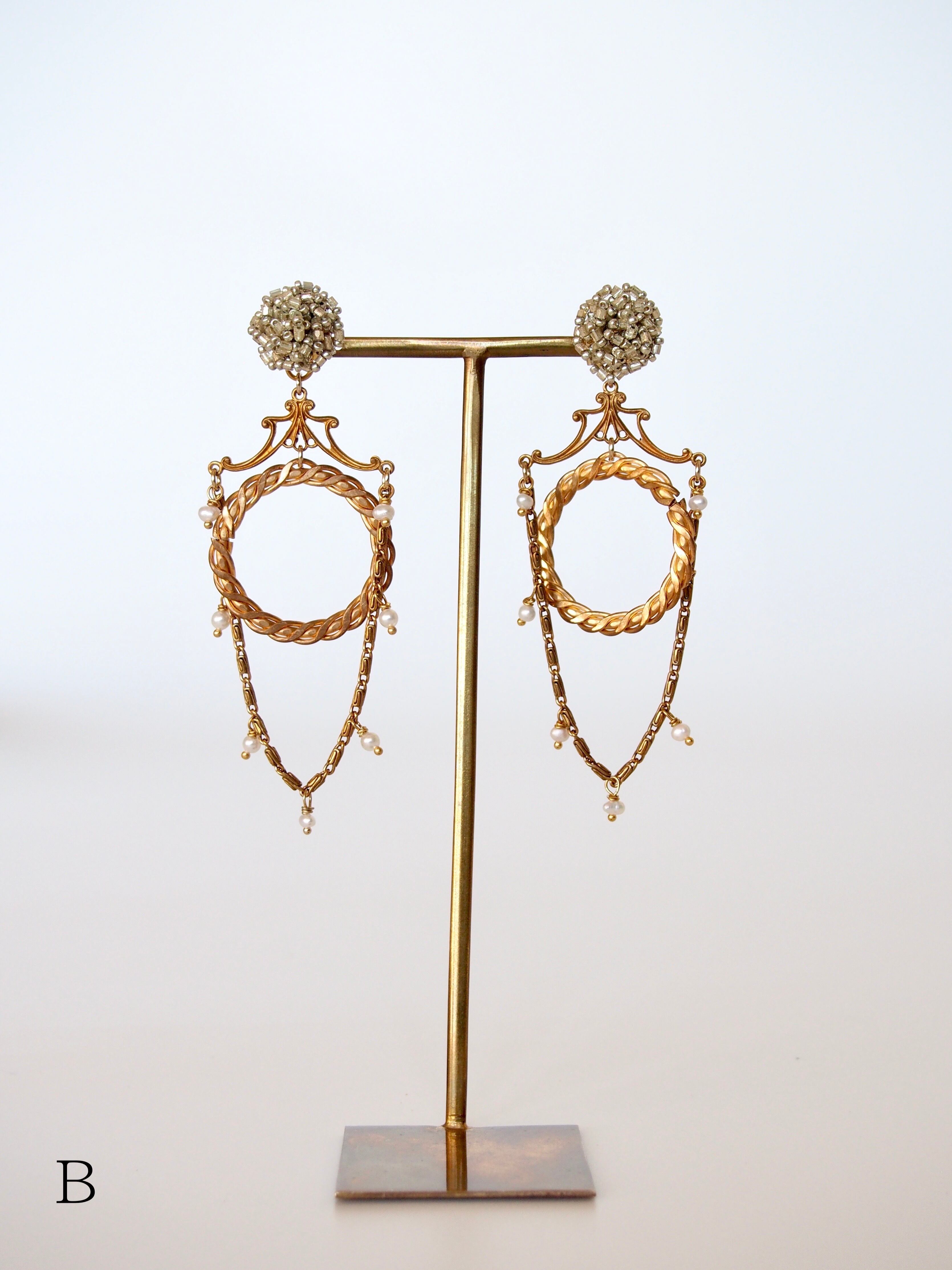 ギュッと素材をコラージュした宝箱の様なピアス。