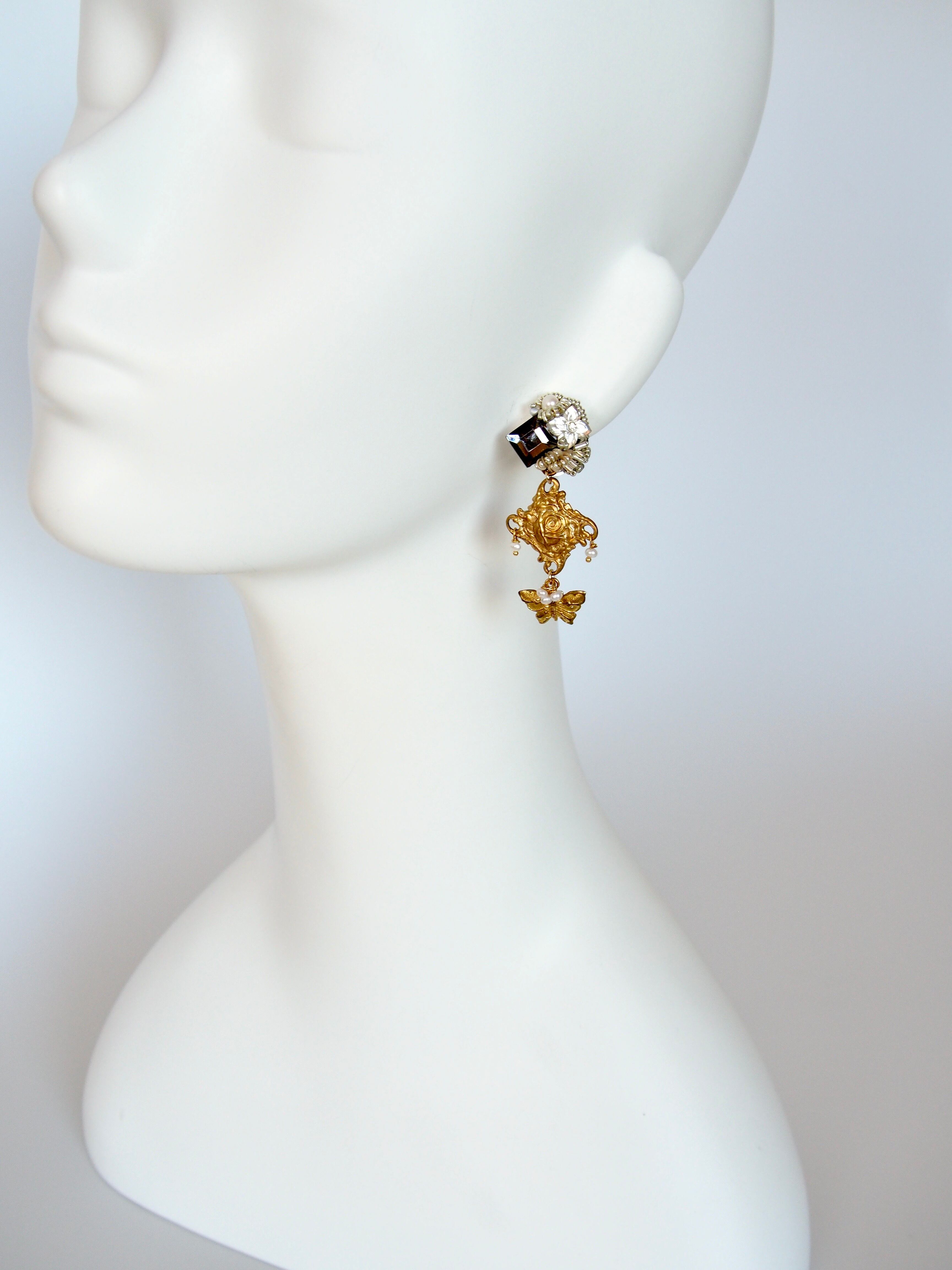 " Lily collage earrings "【 Le jardin secret 】