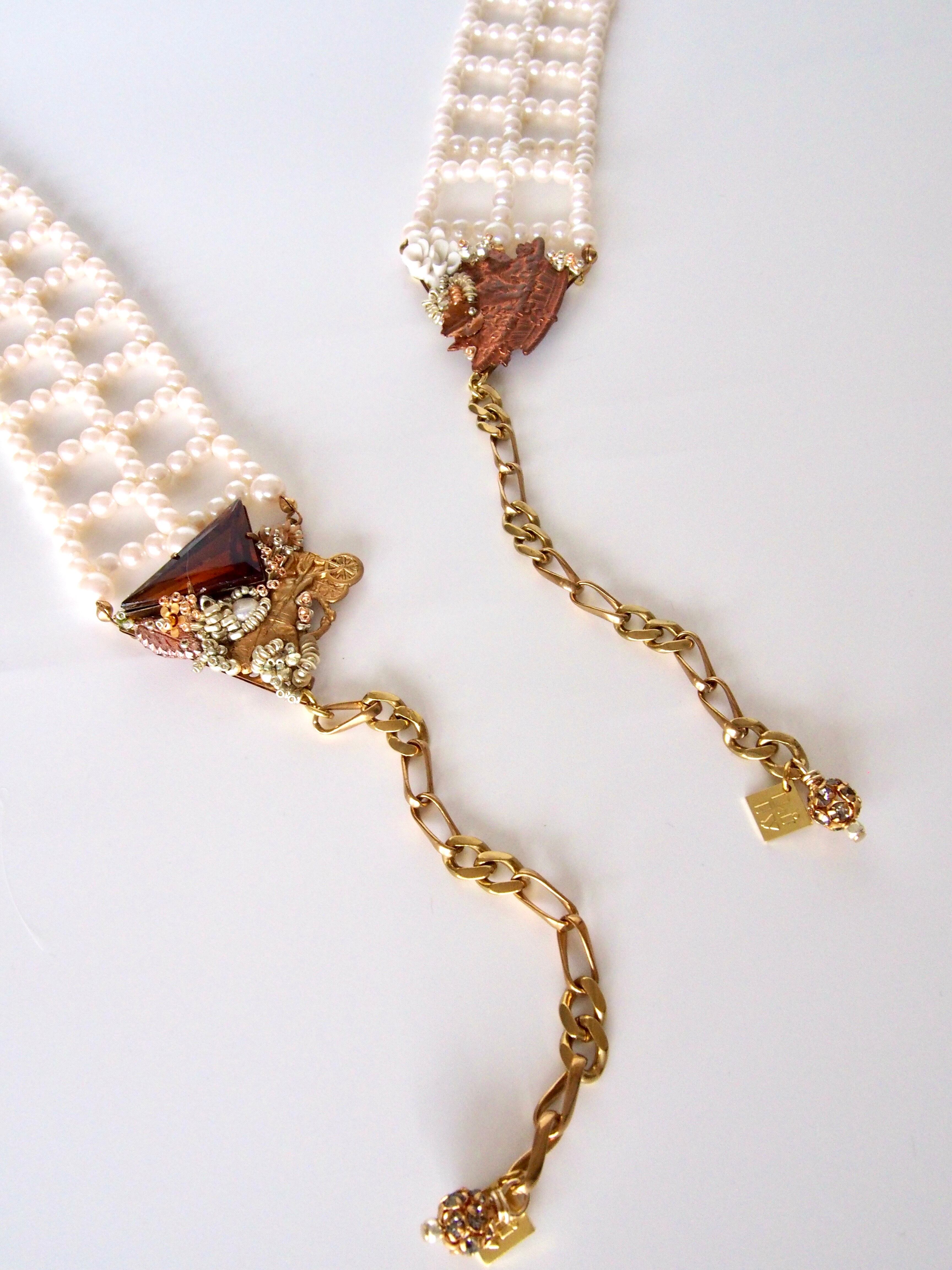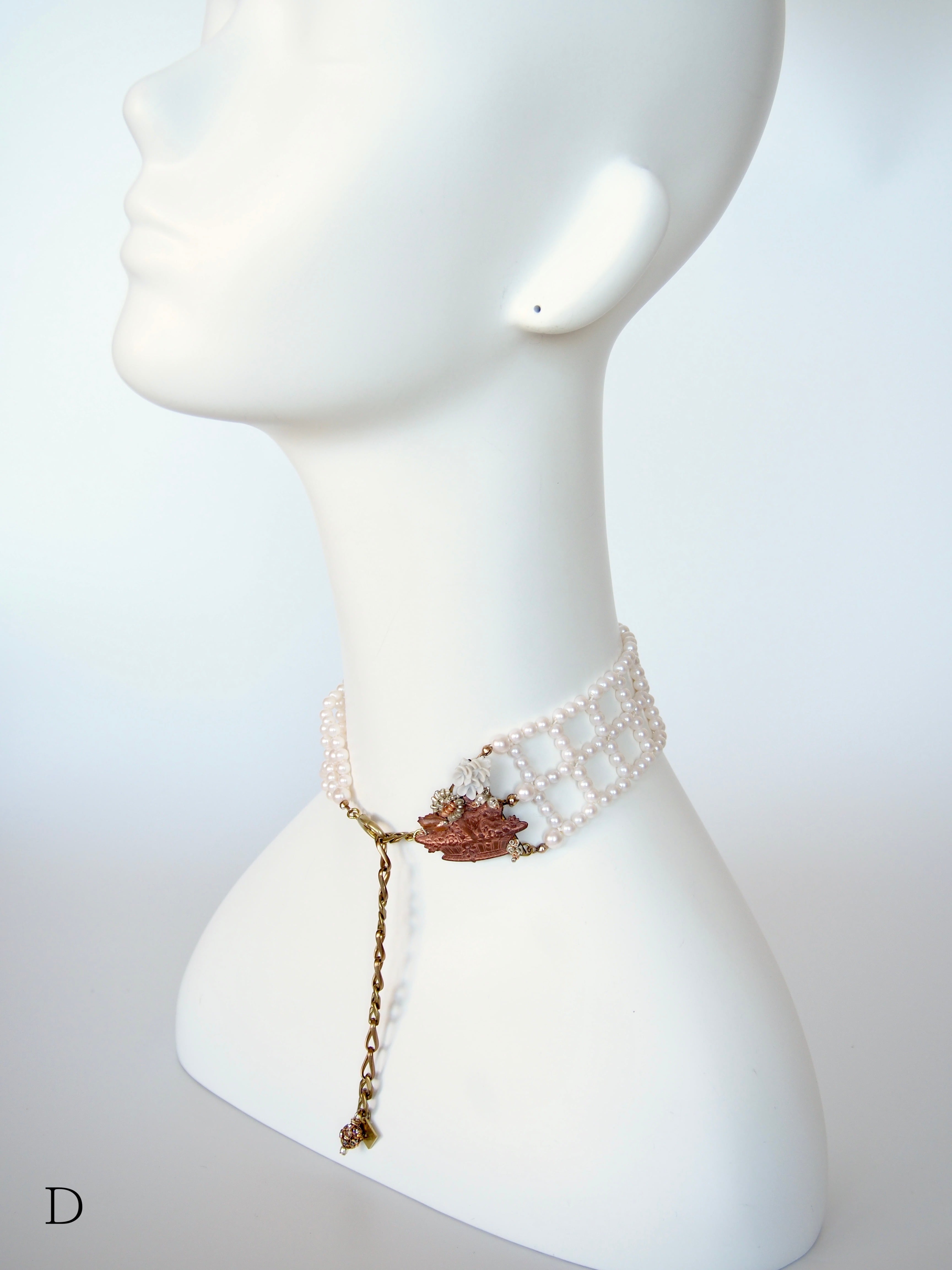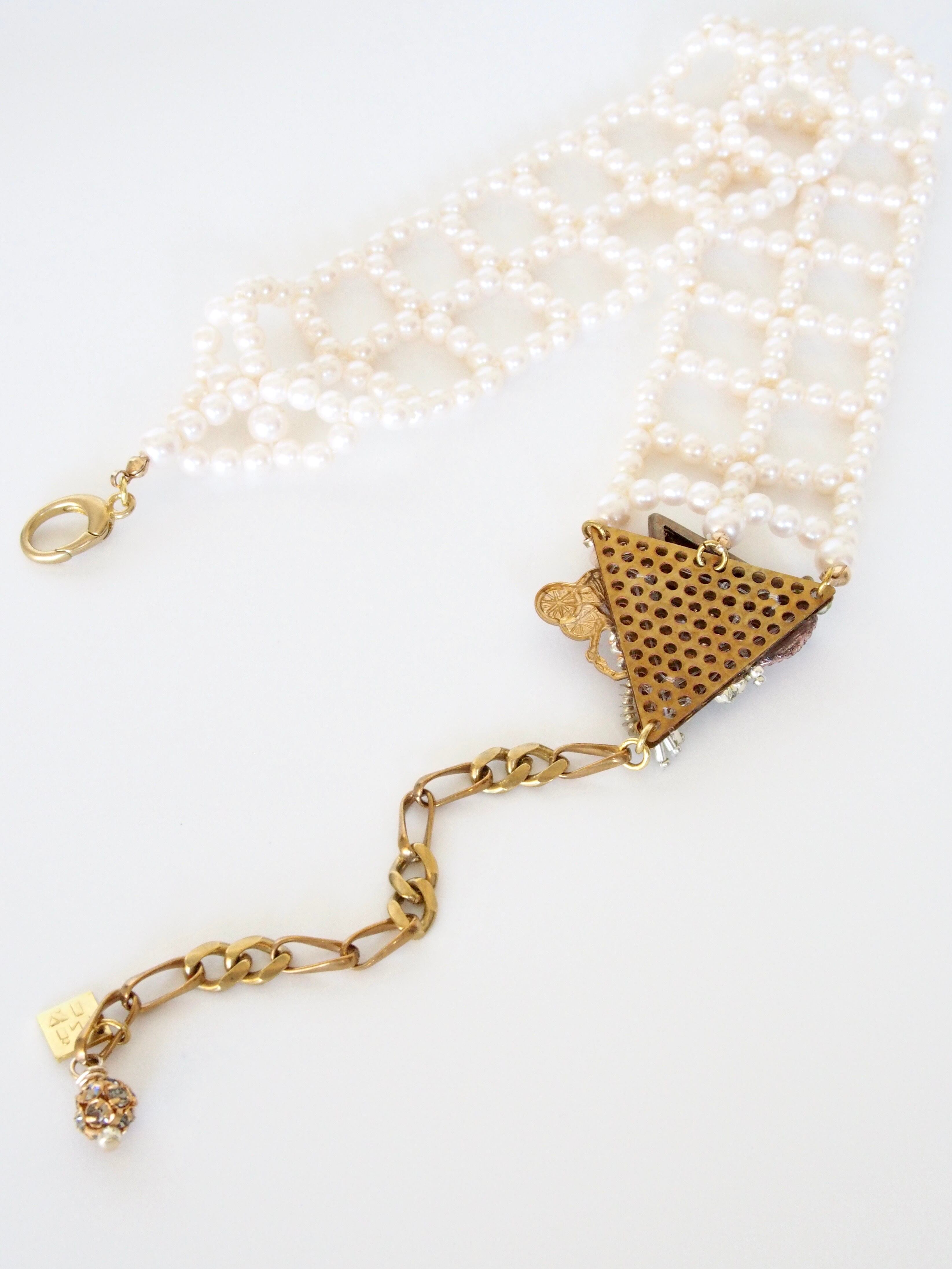 ヴィンテージ素材のパールチョーカーをリメイクしして、