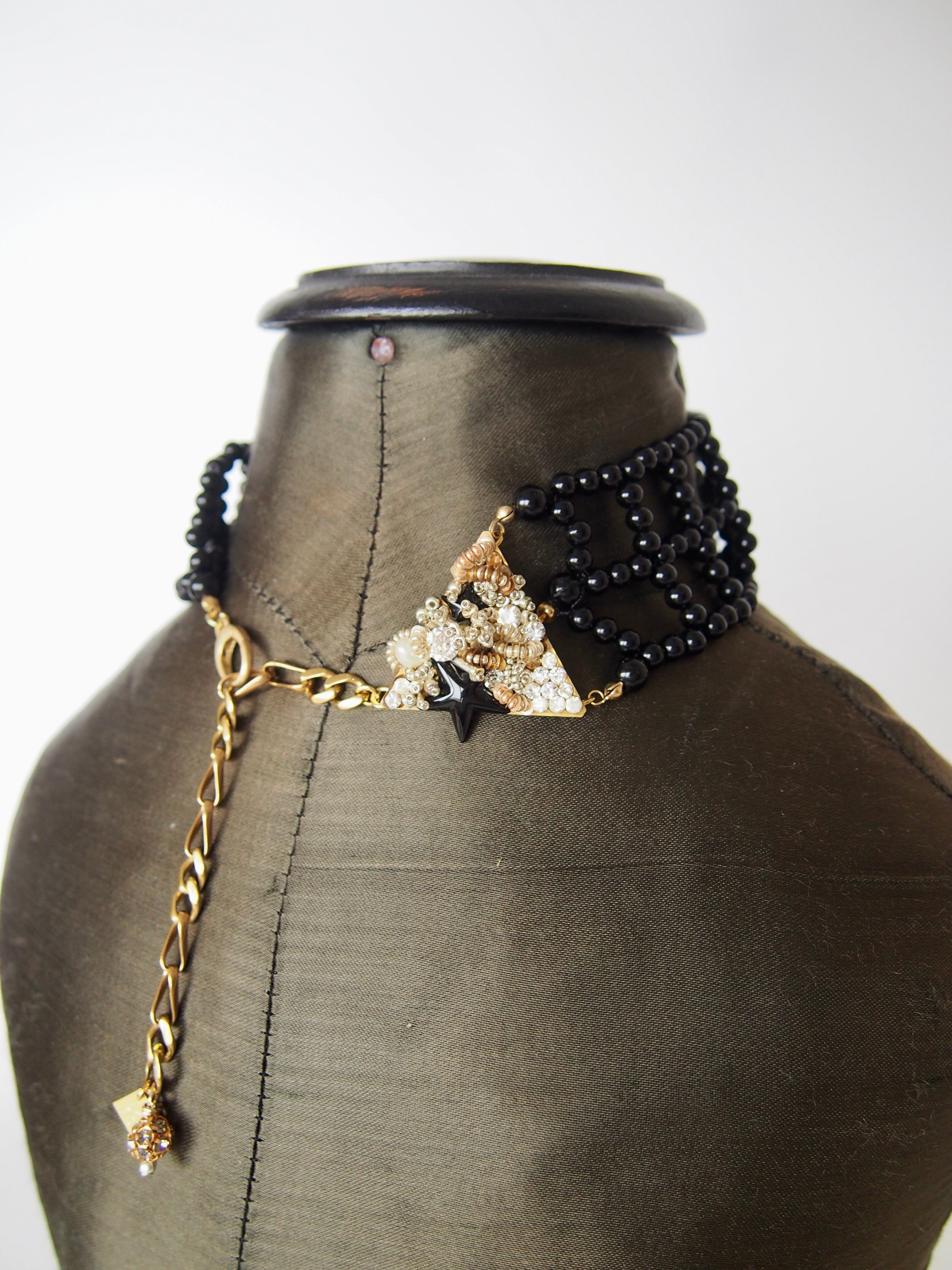 付け襟の様な立体的なデザインで、コスチュームジュエリーとしてゴージャスな襟元に演出してくれます。