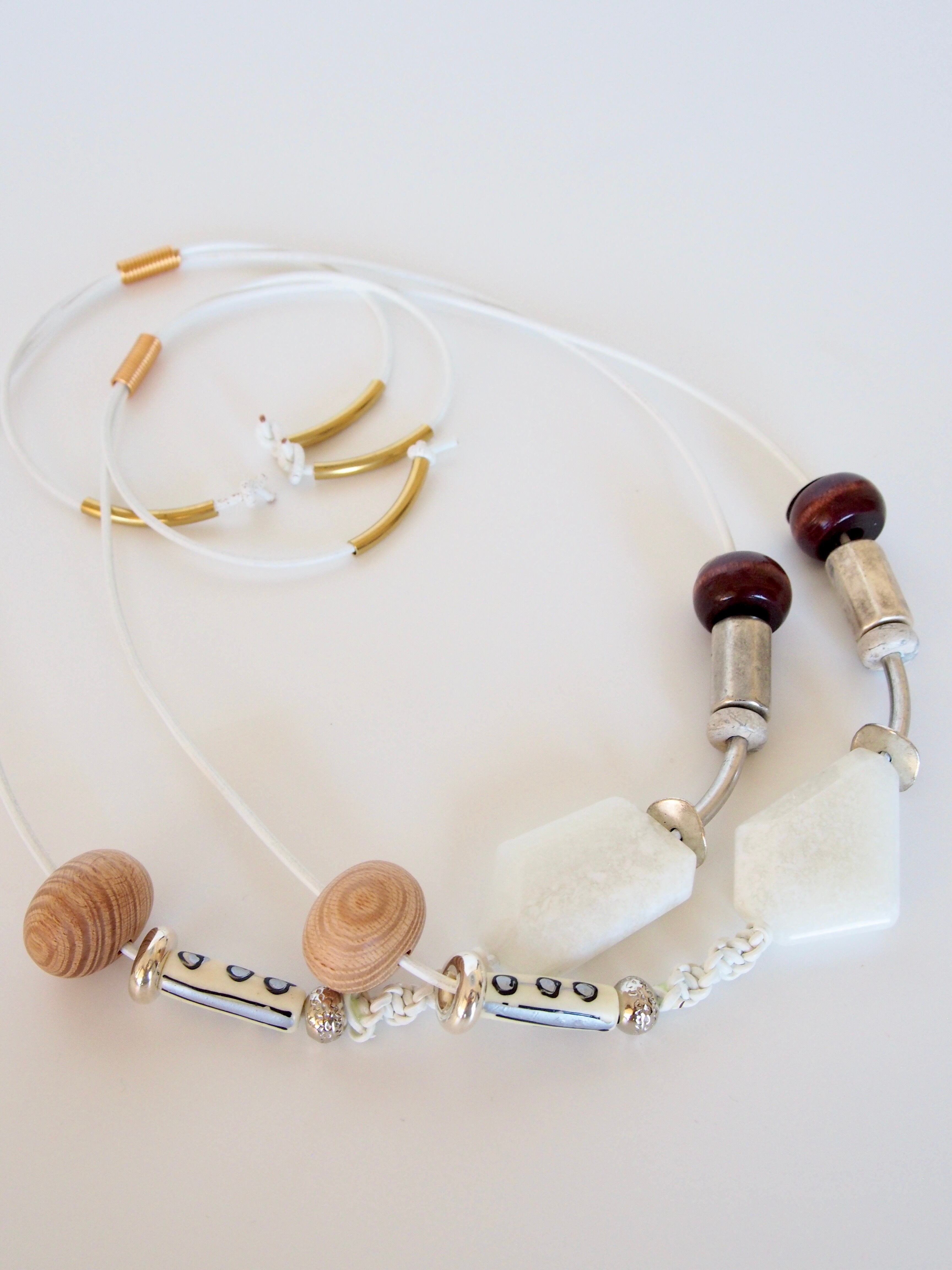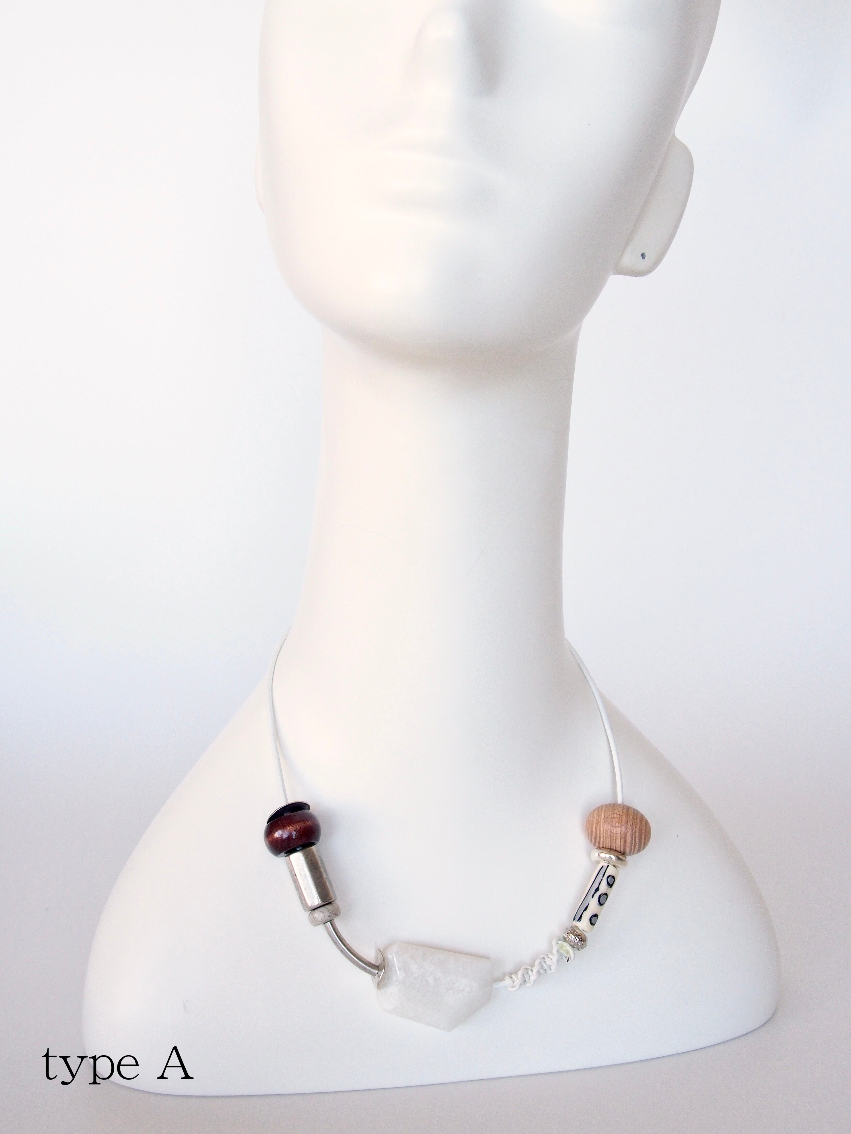 牛革・真鍮 (無垢)・ボーンビーズ (U.S.A) ・ウッドビーズ( Japan)・アクリルビーズ(vintage / België / Germany / Italy)・メタルパーツ(U.S.A / Italy))