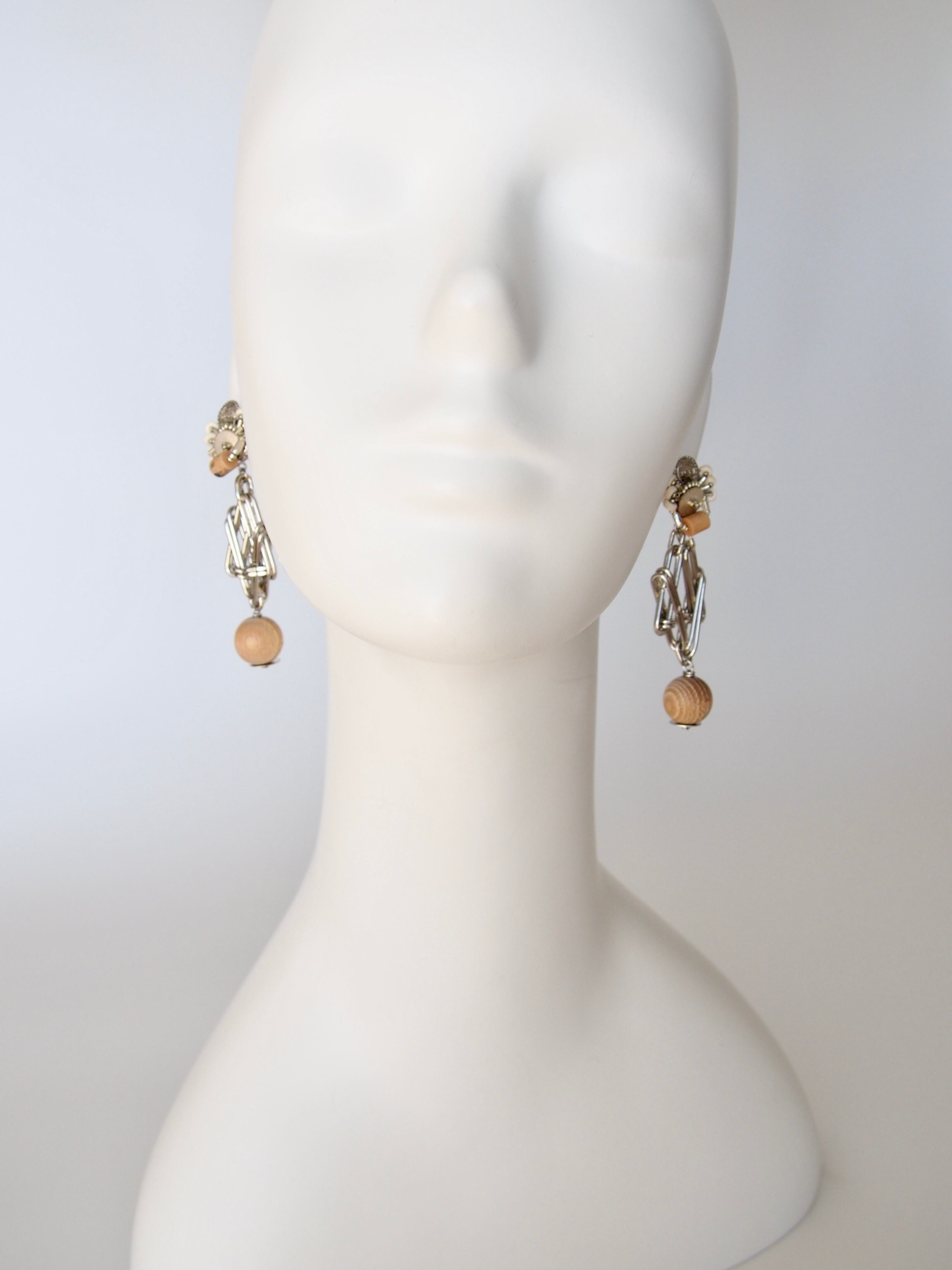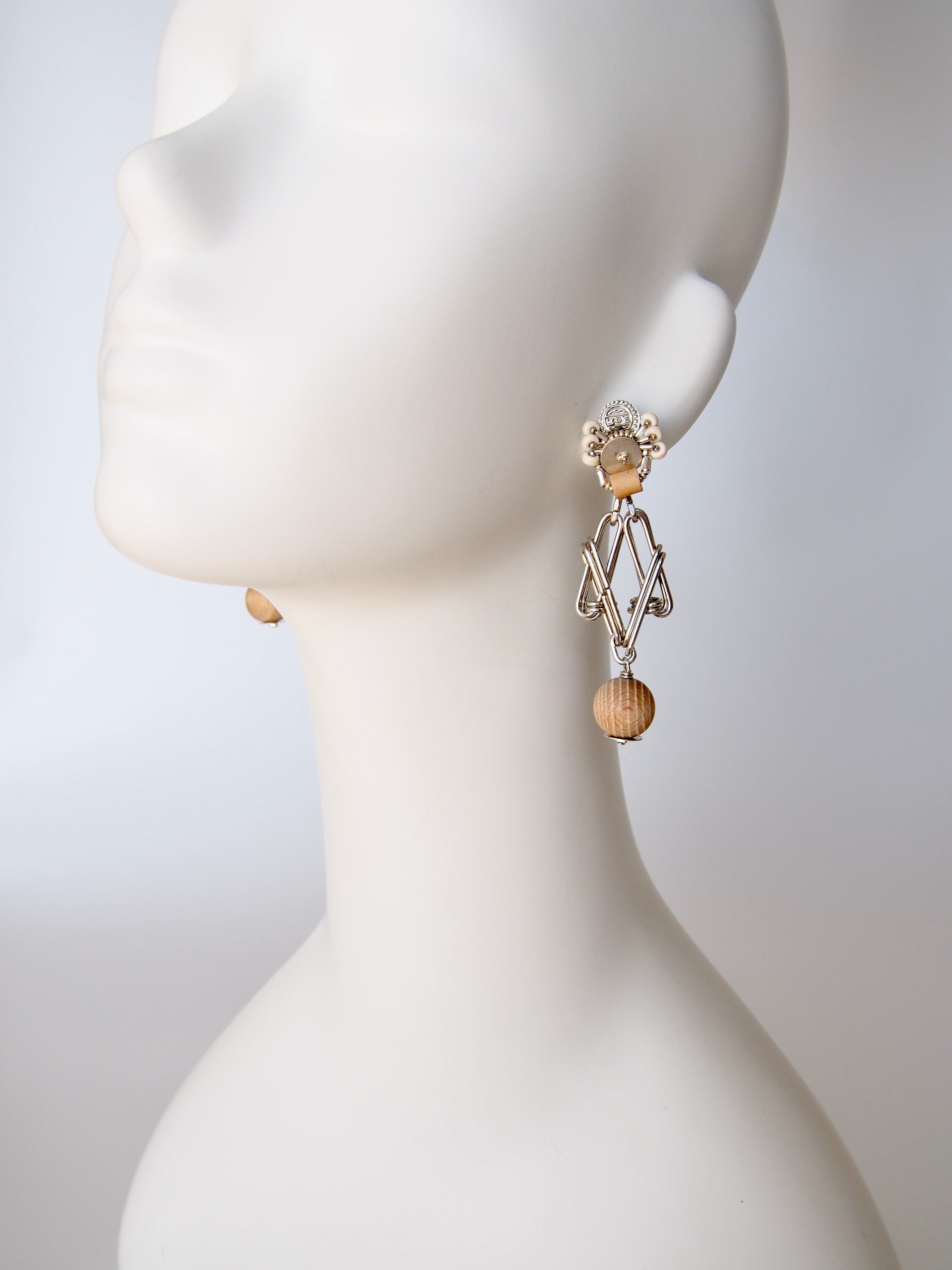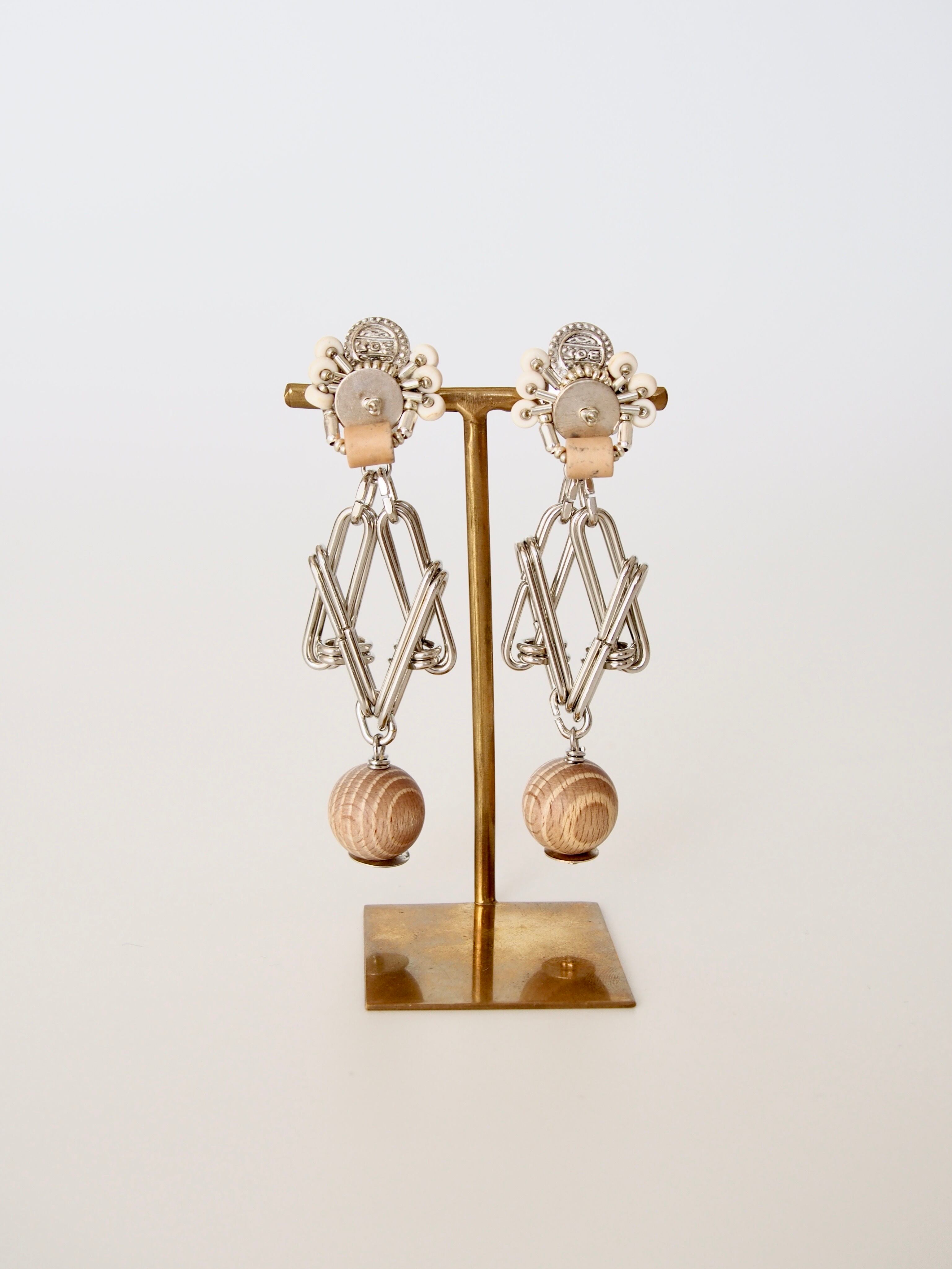 メタルパーツを幾何学的に組み合わせた、抽象的なデザインが特徴のアクセサリー。