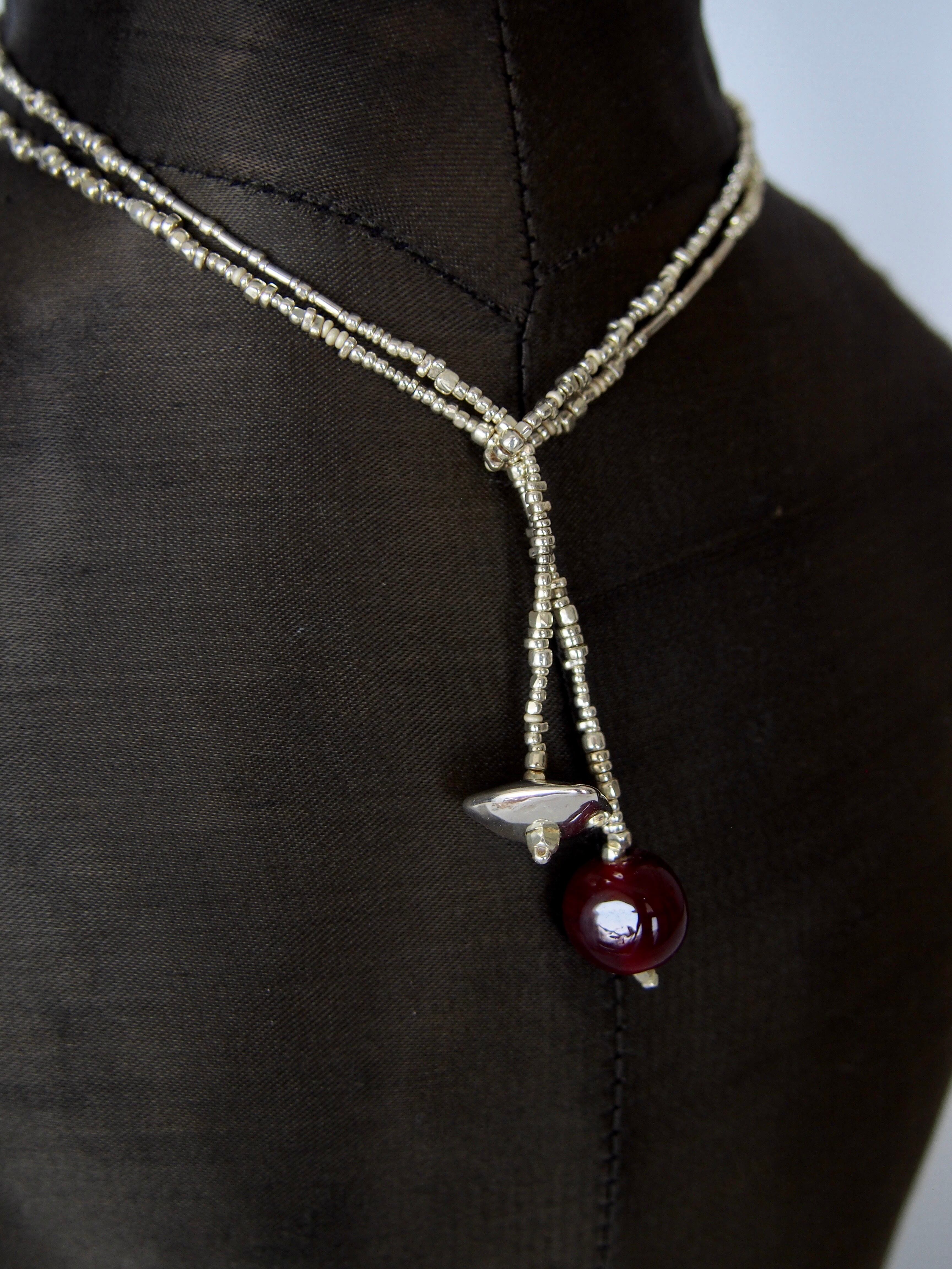 ハンドメイドのインドのガラスビーズと、セラミックパーツのぬくもりを纏うラリアットネックレス。