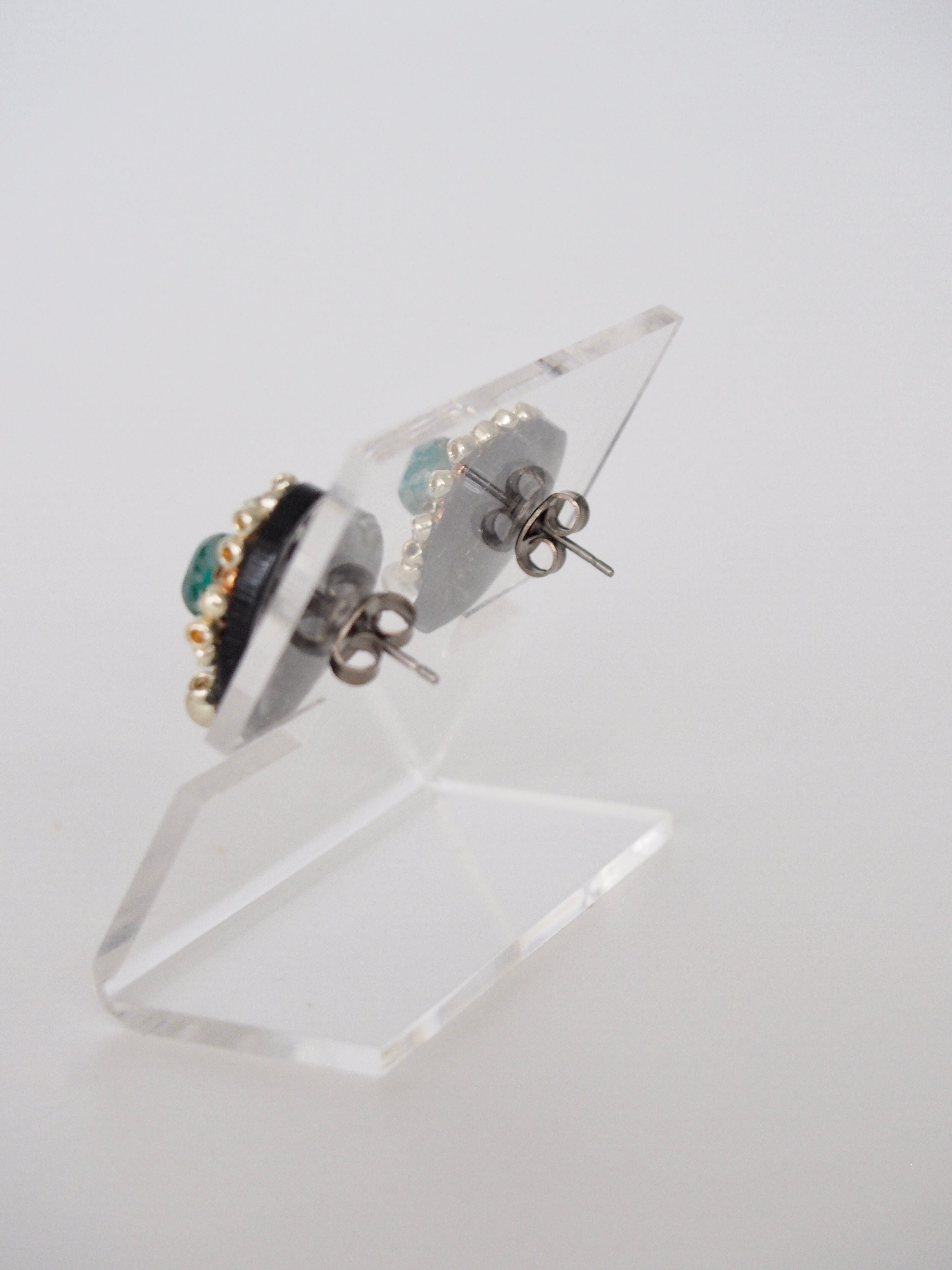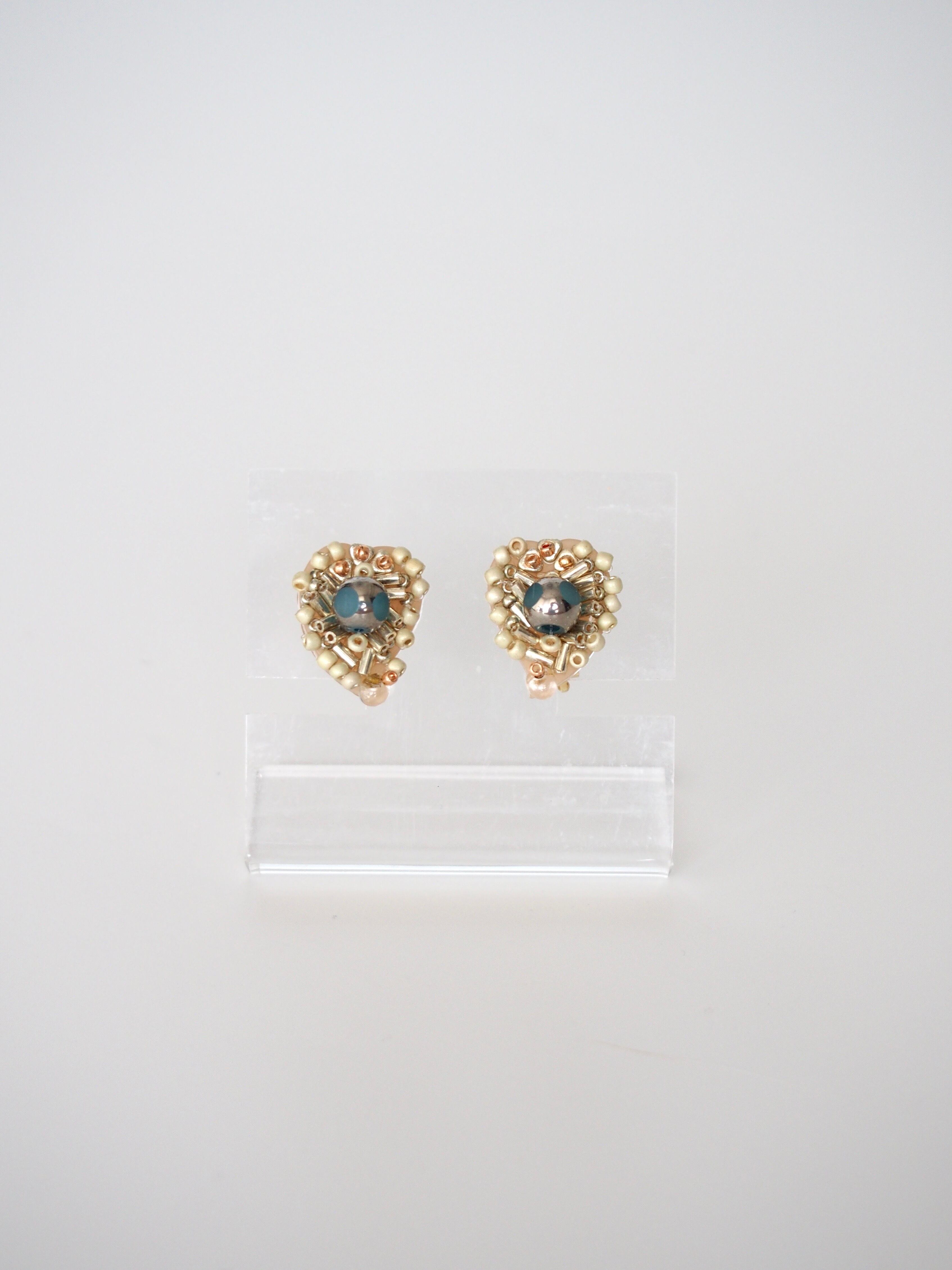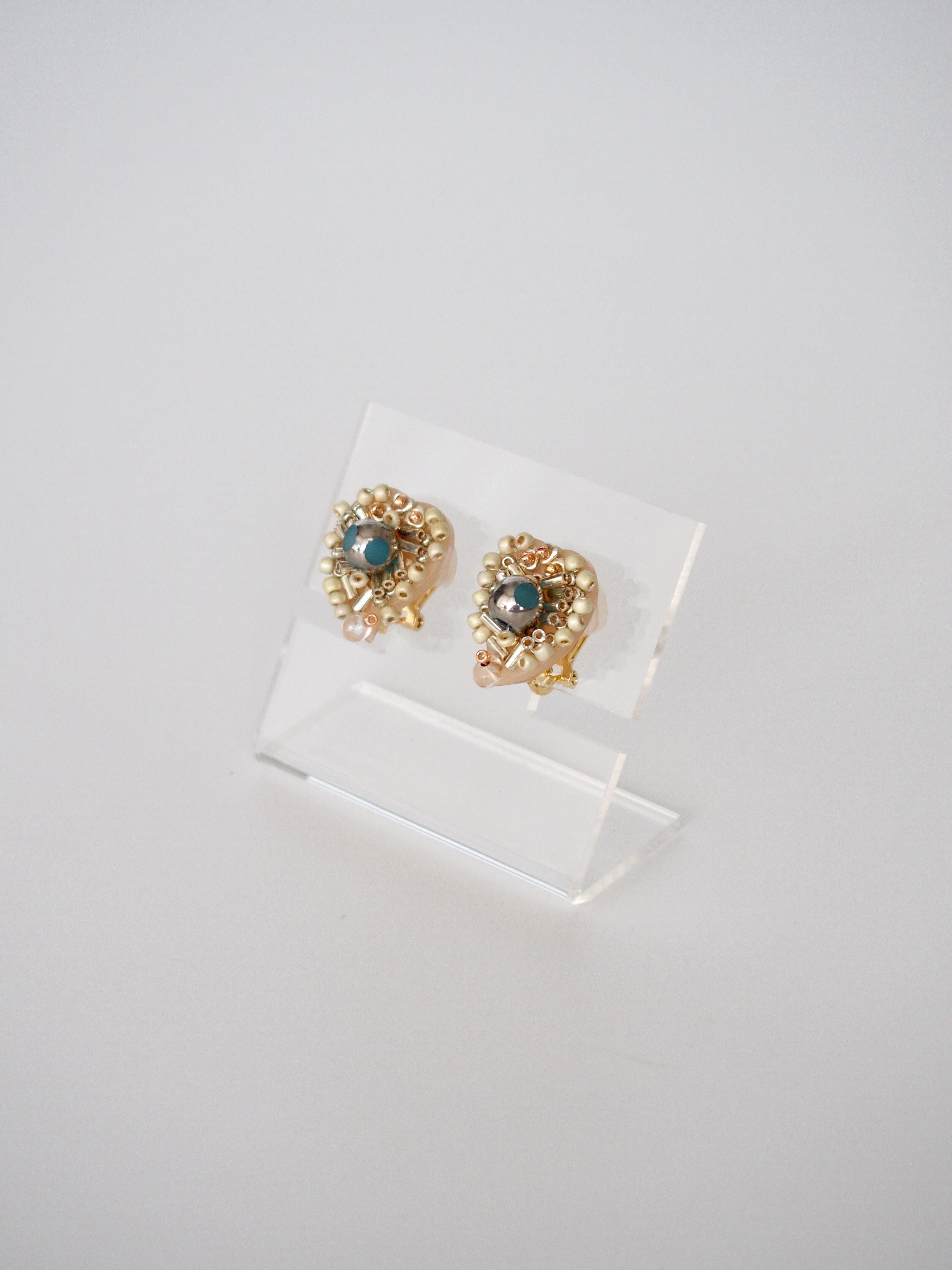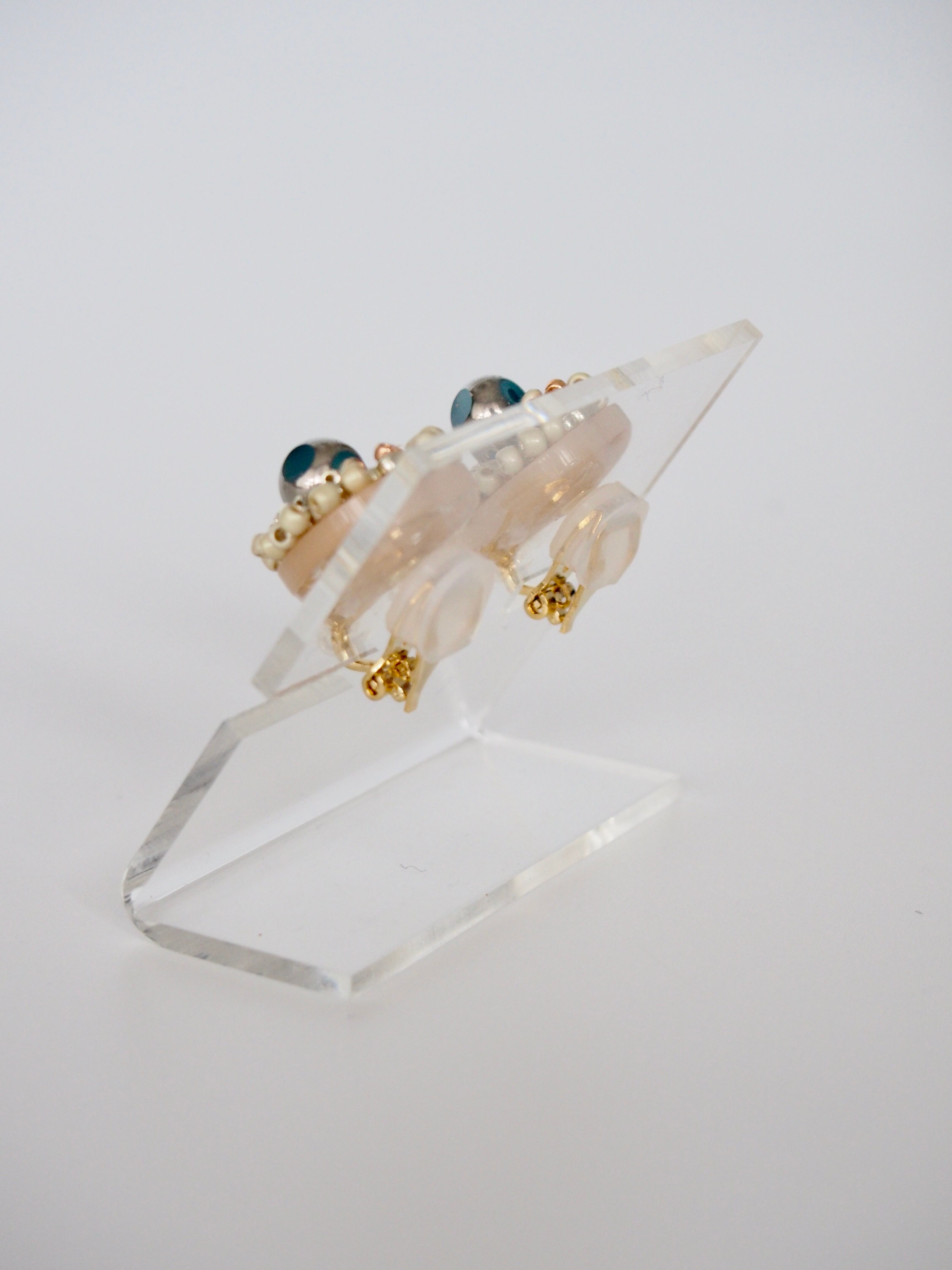 ガラスビーズの可愛らしい立体感と、アクリルパーツの軽い付け心地で