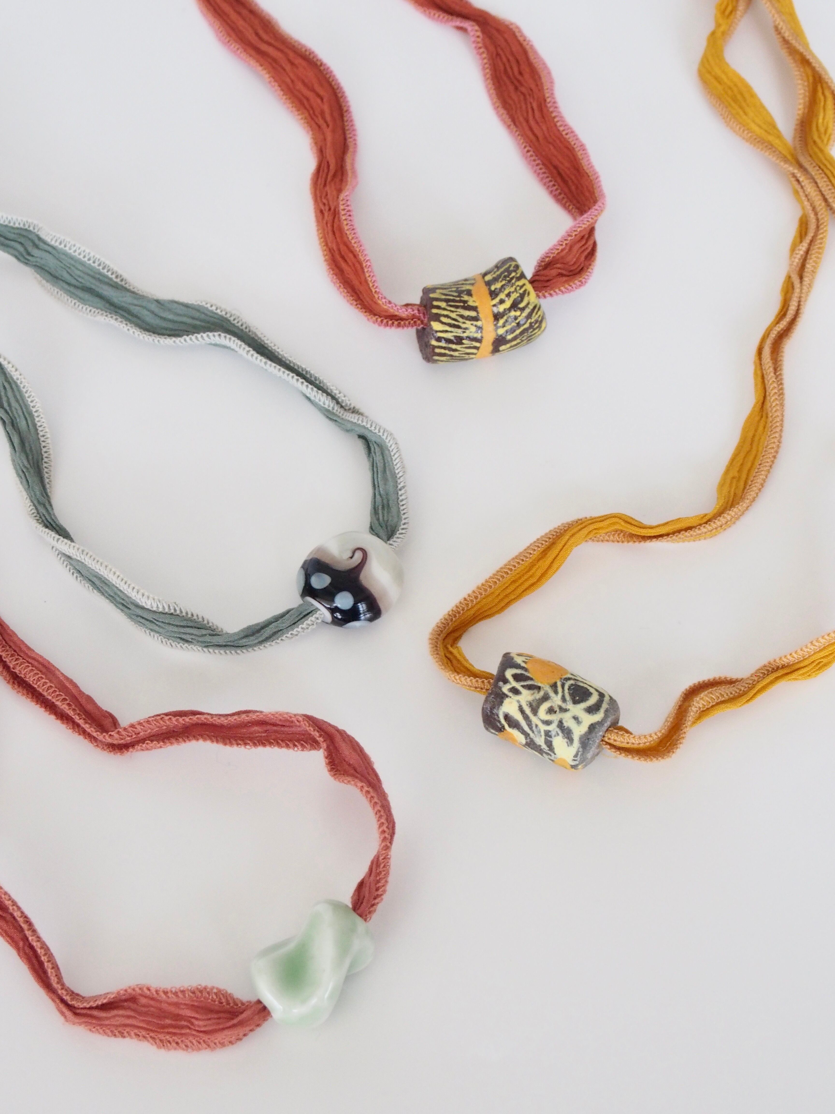 Atelierのオープンを記念して、世界各地から集めてきた個性的なビーズをポイントに配した