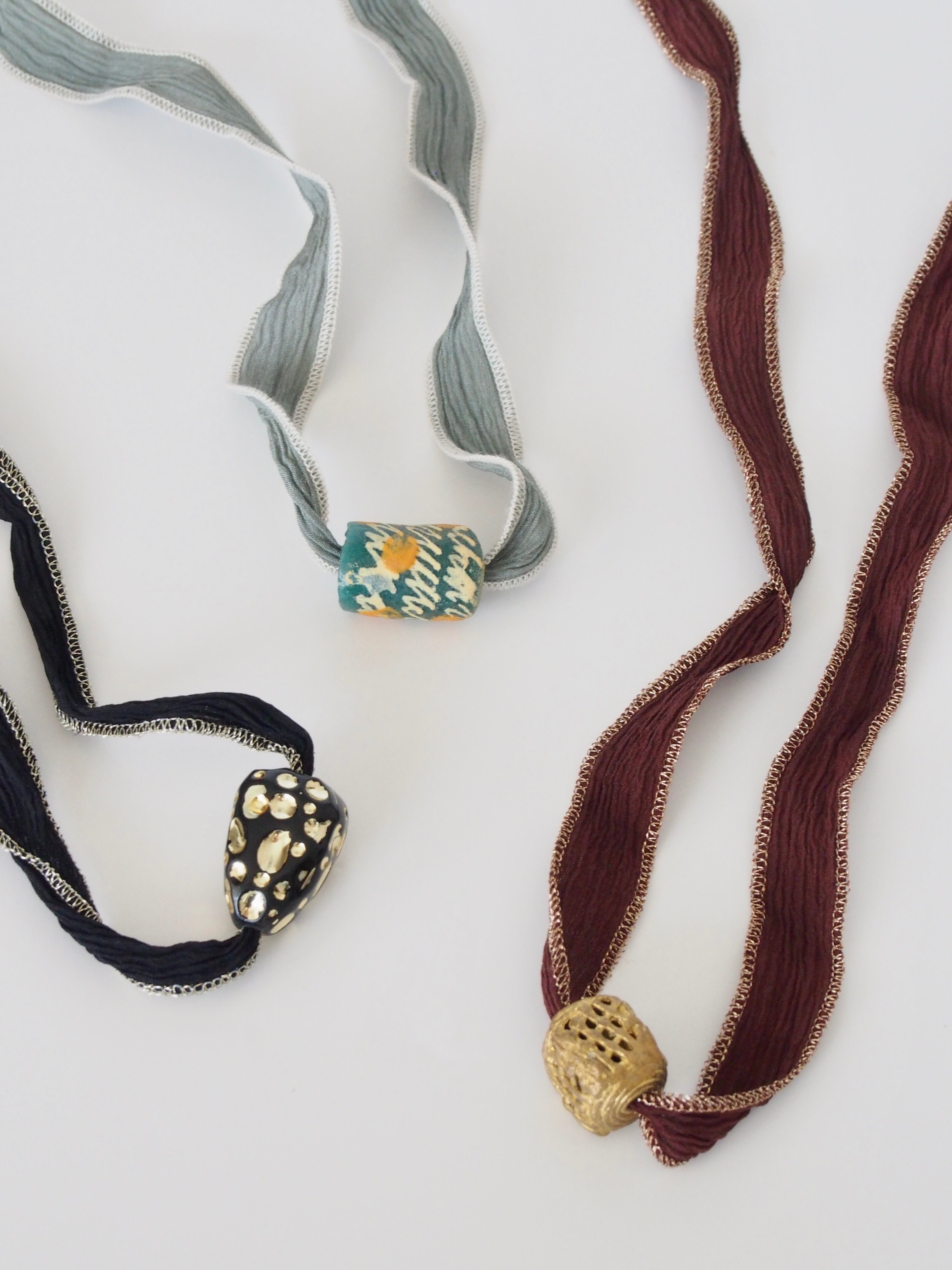 肌に優しいシルクシフォン生地のチョーカーを作りました。