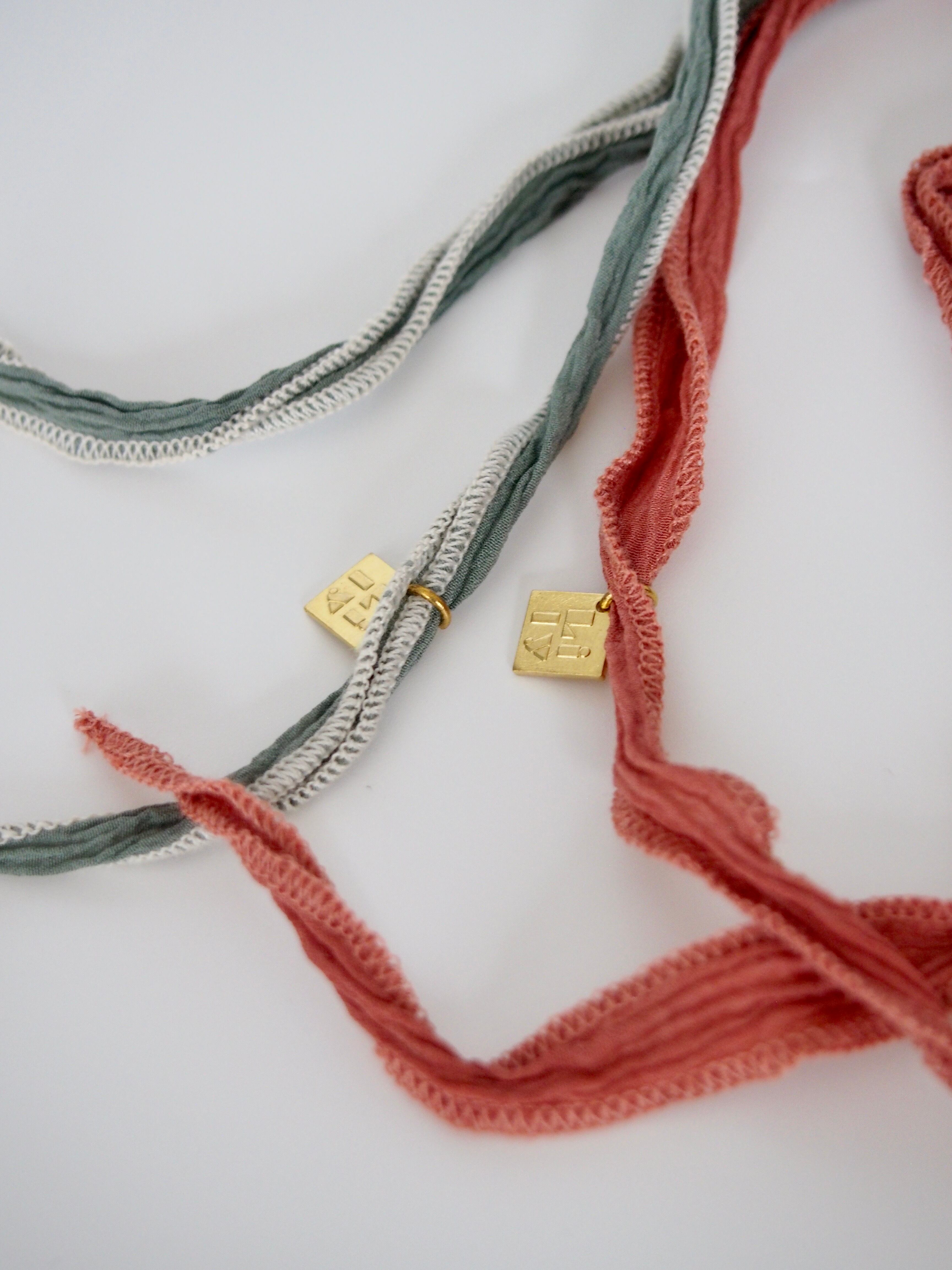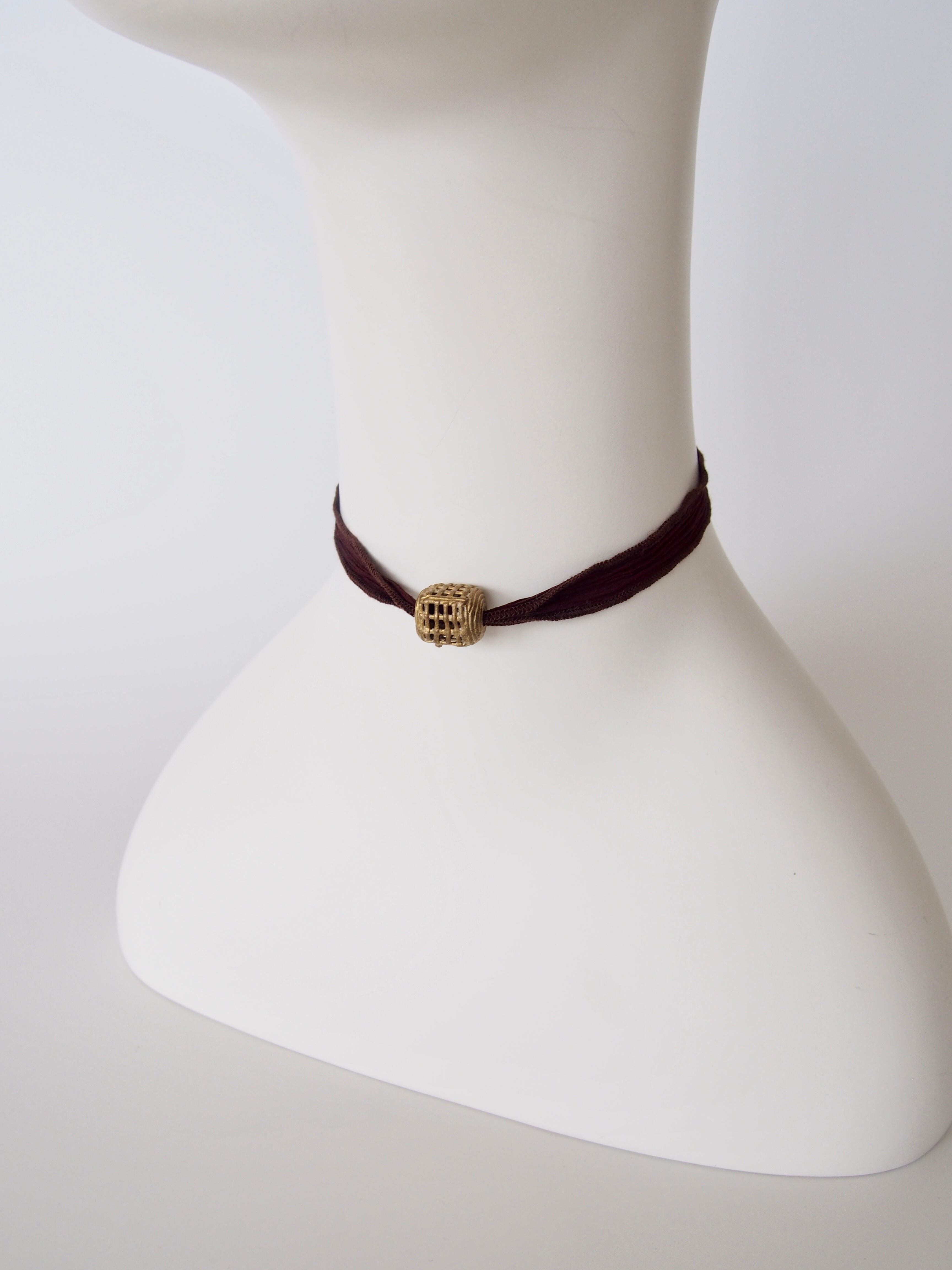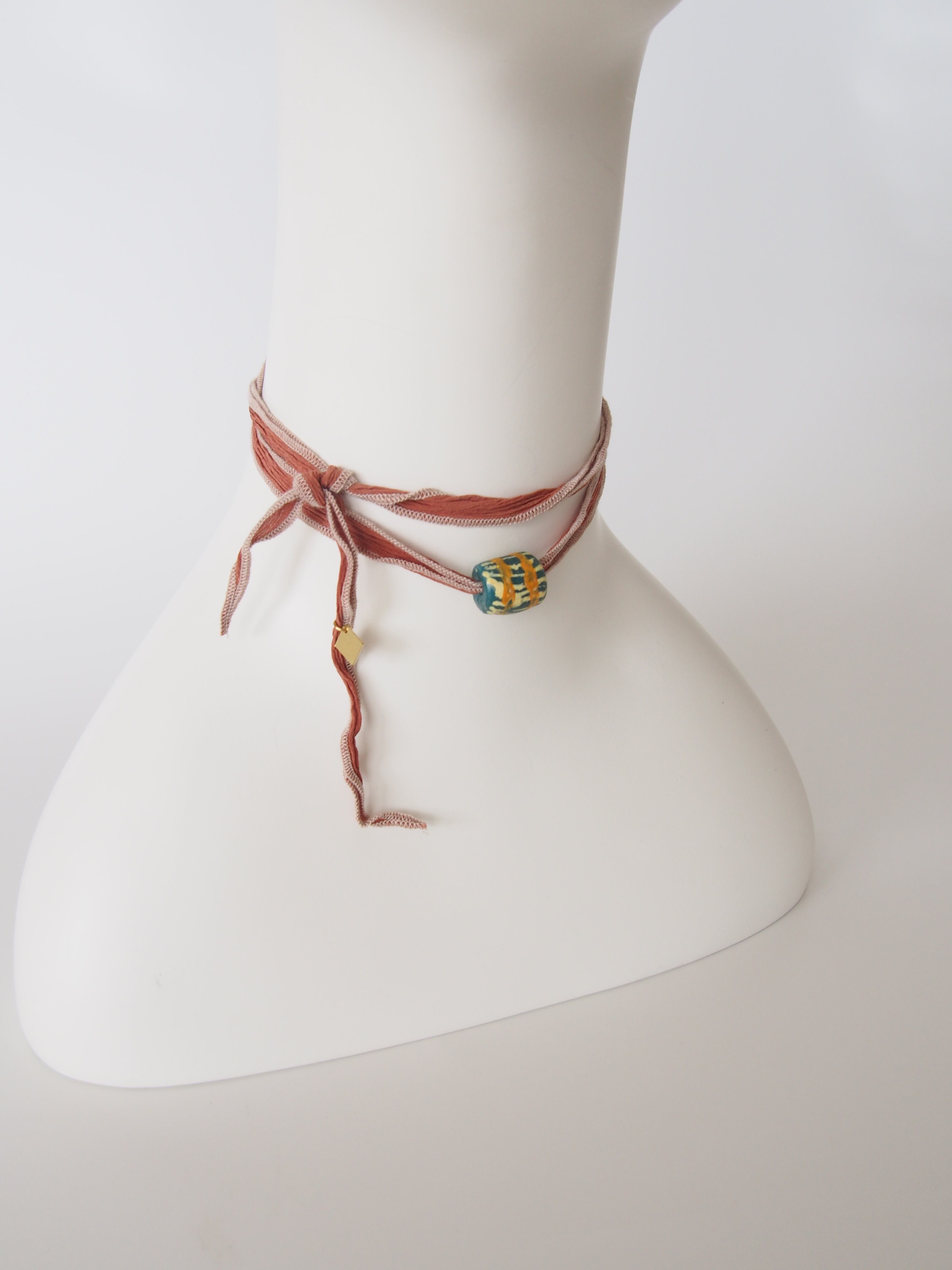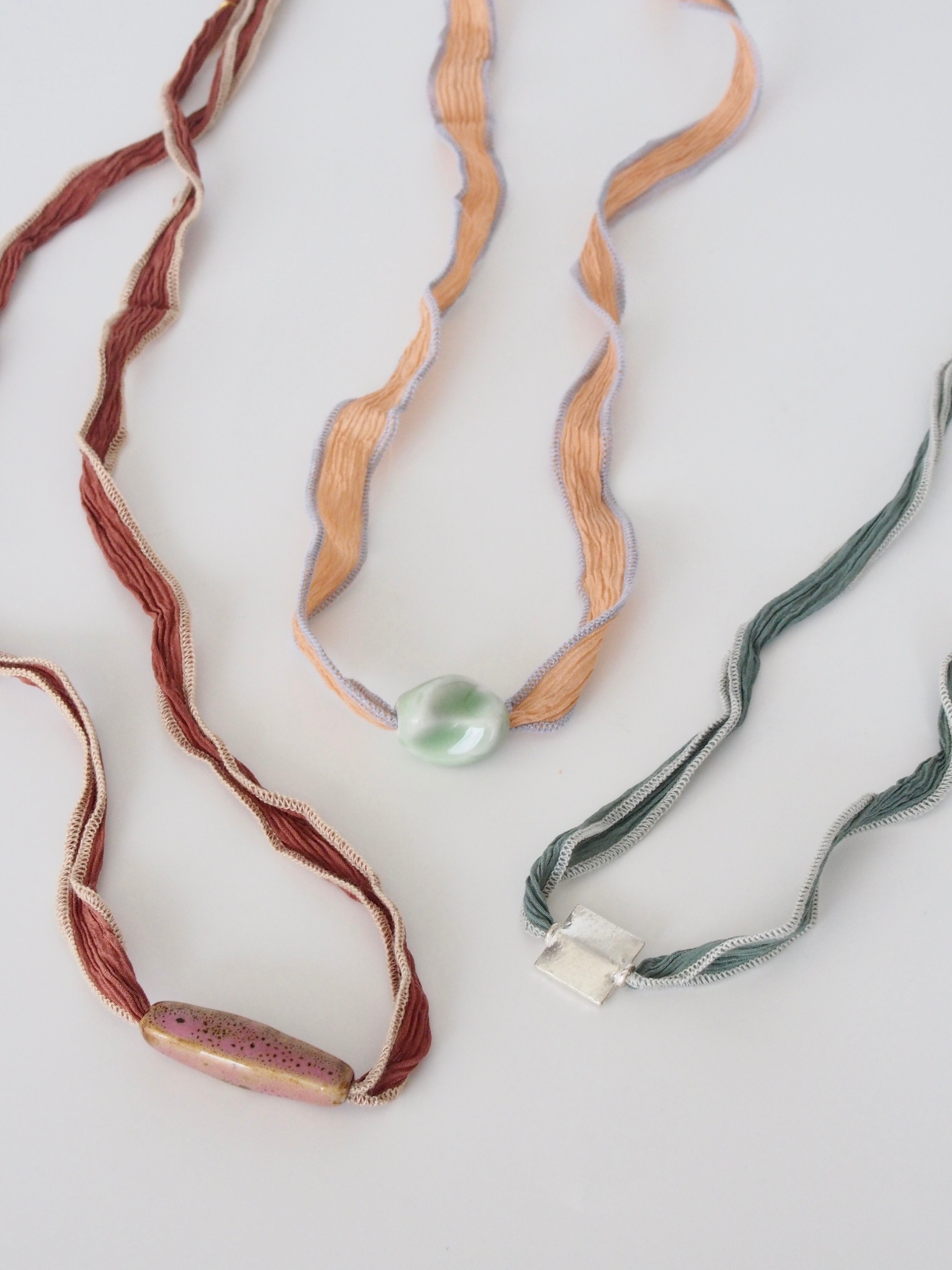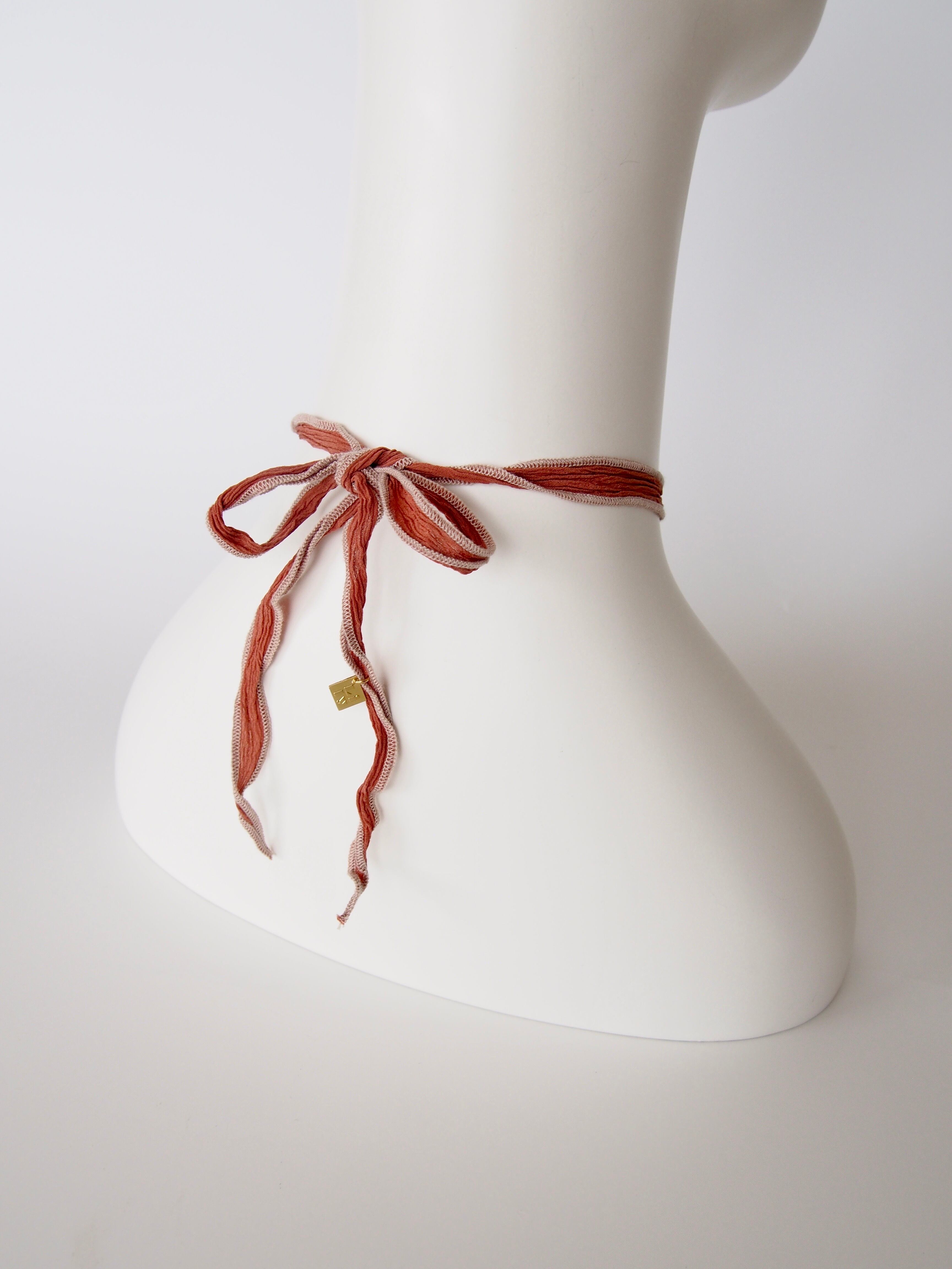 肌に優しいシルクシフォン生地のチョーカーを作りました。