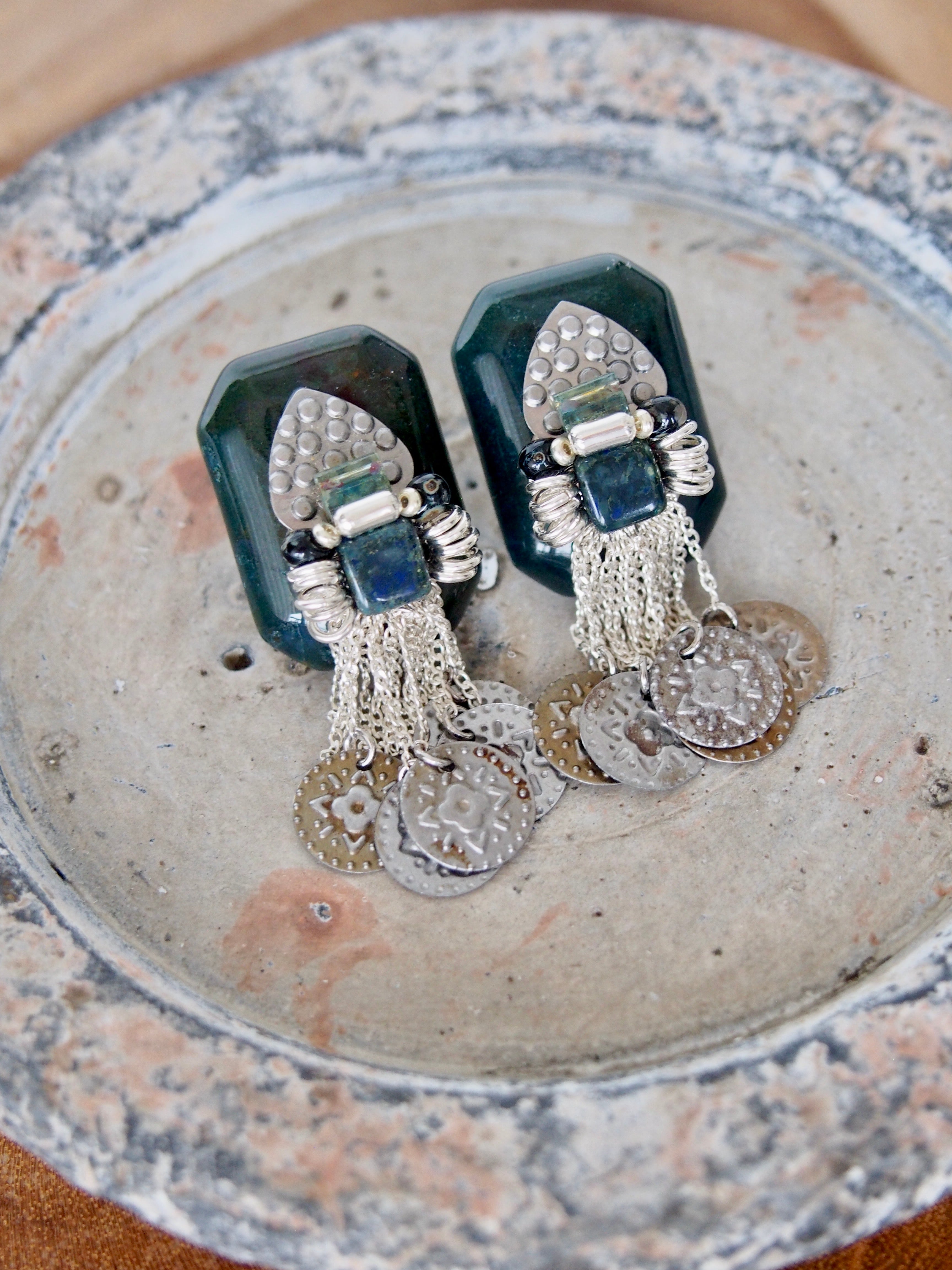 チェコガラスビーズ(Czech)・silver925 chain (Japan)・Indian agate 天然石(Oversea)・ガラスビーズ(Japan)・インド製コインパーツ(mix metal)