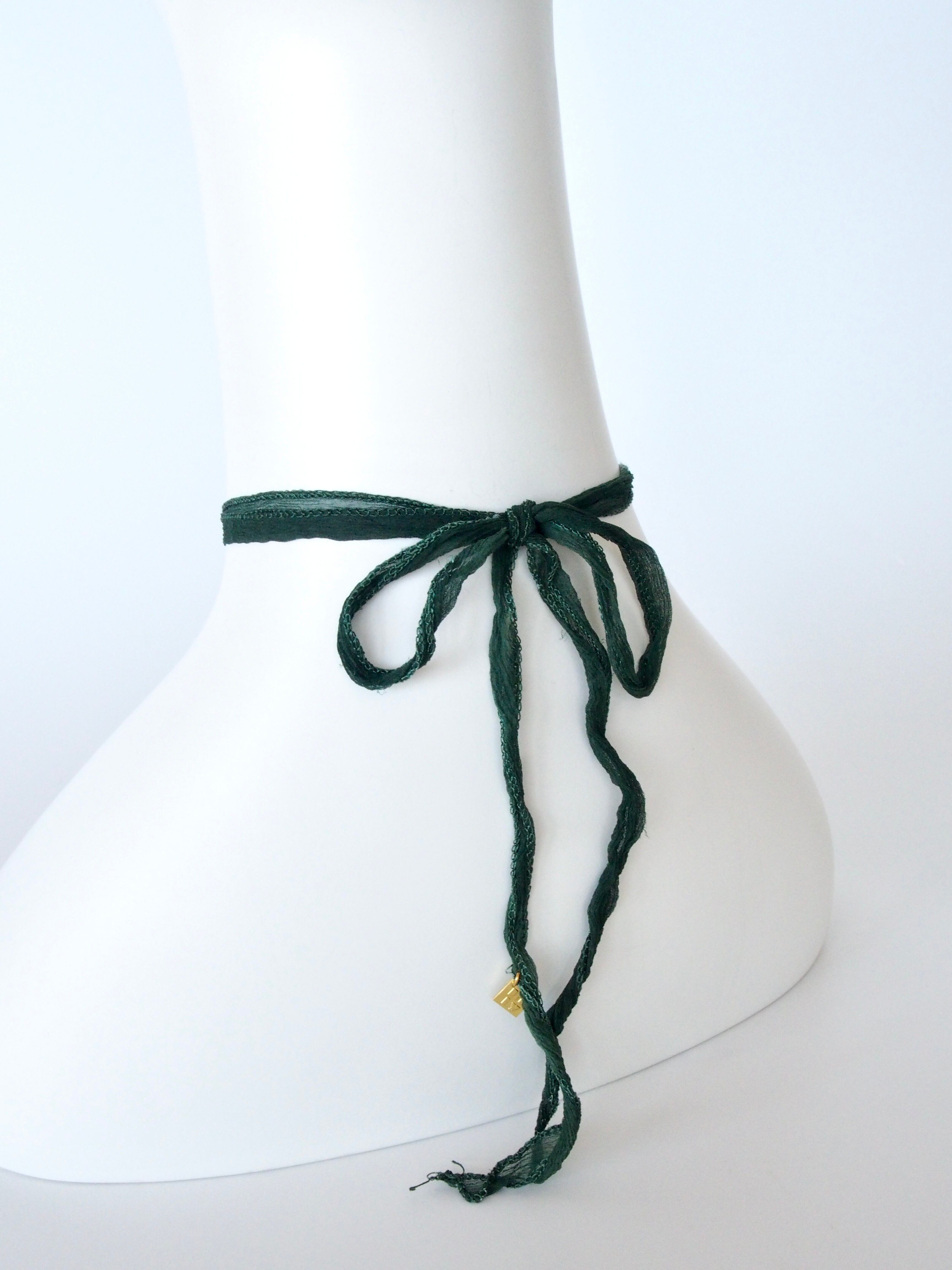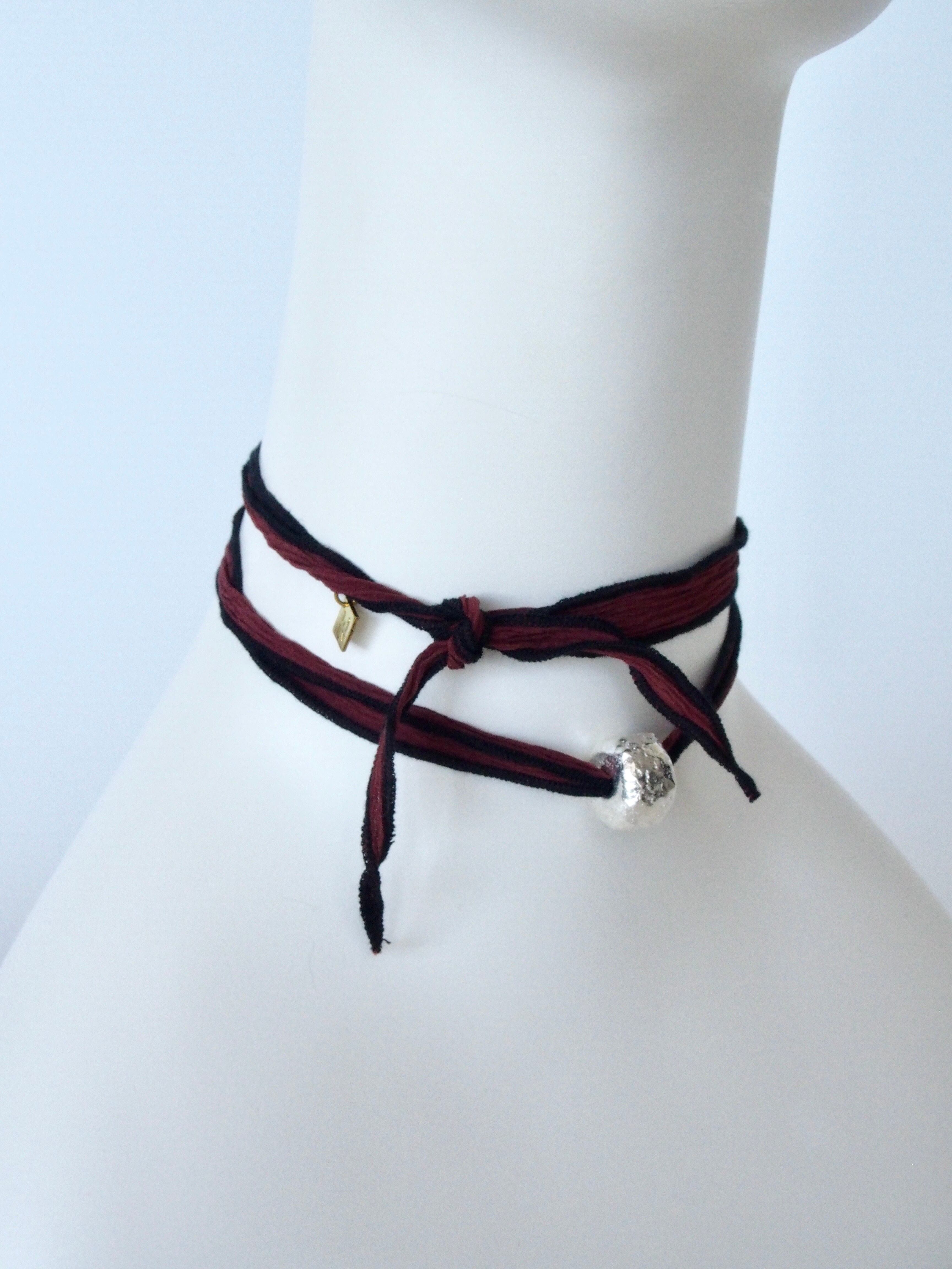 肌に優しいシルクシフォン生地のチョーカーを作りました。